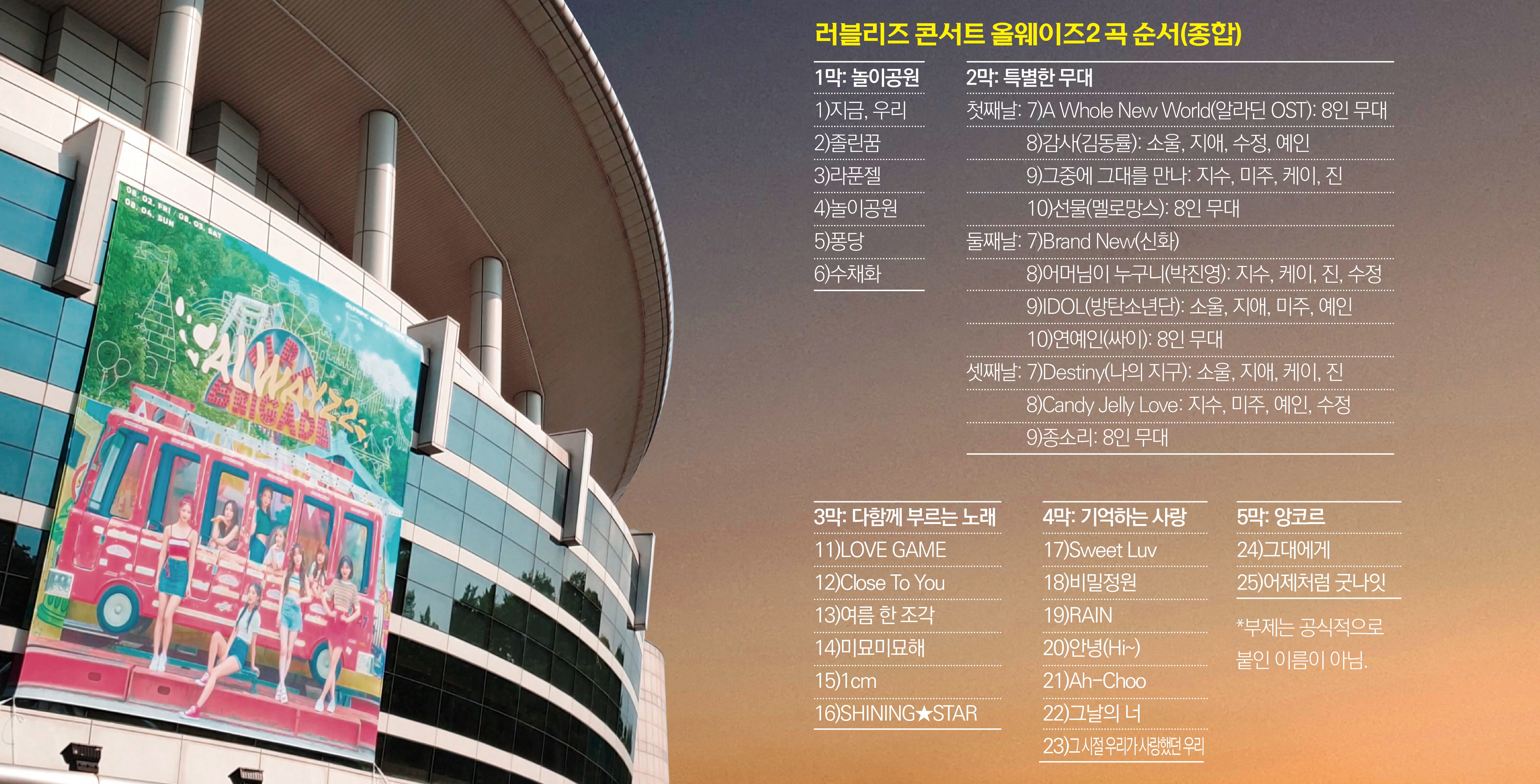 | 러블리즈 콘서트: 올웨이즈(Alway2) 둘째날 곡 순서 |