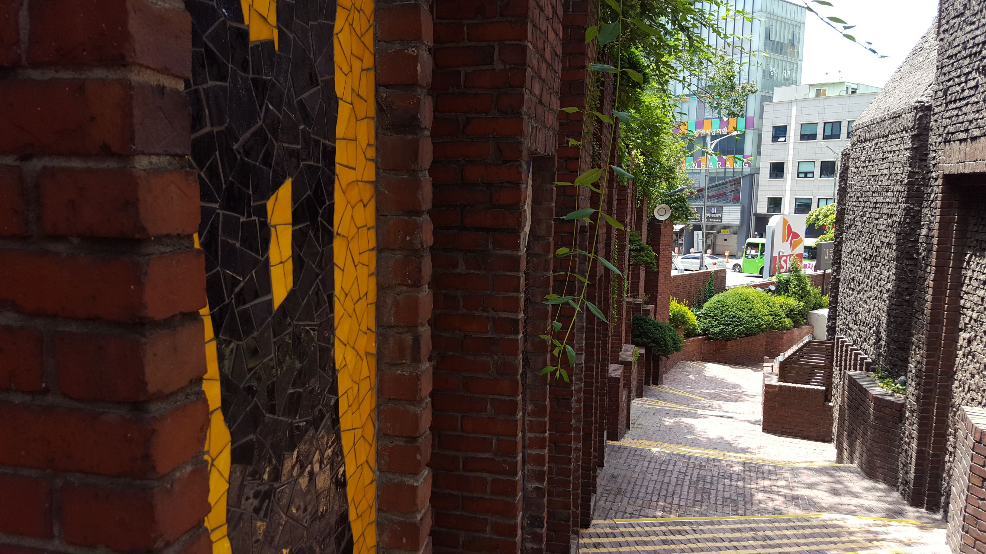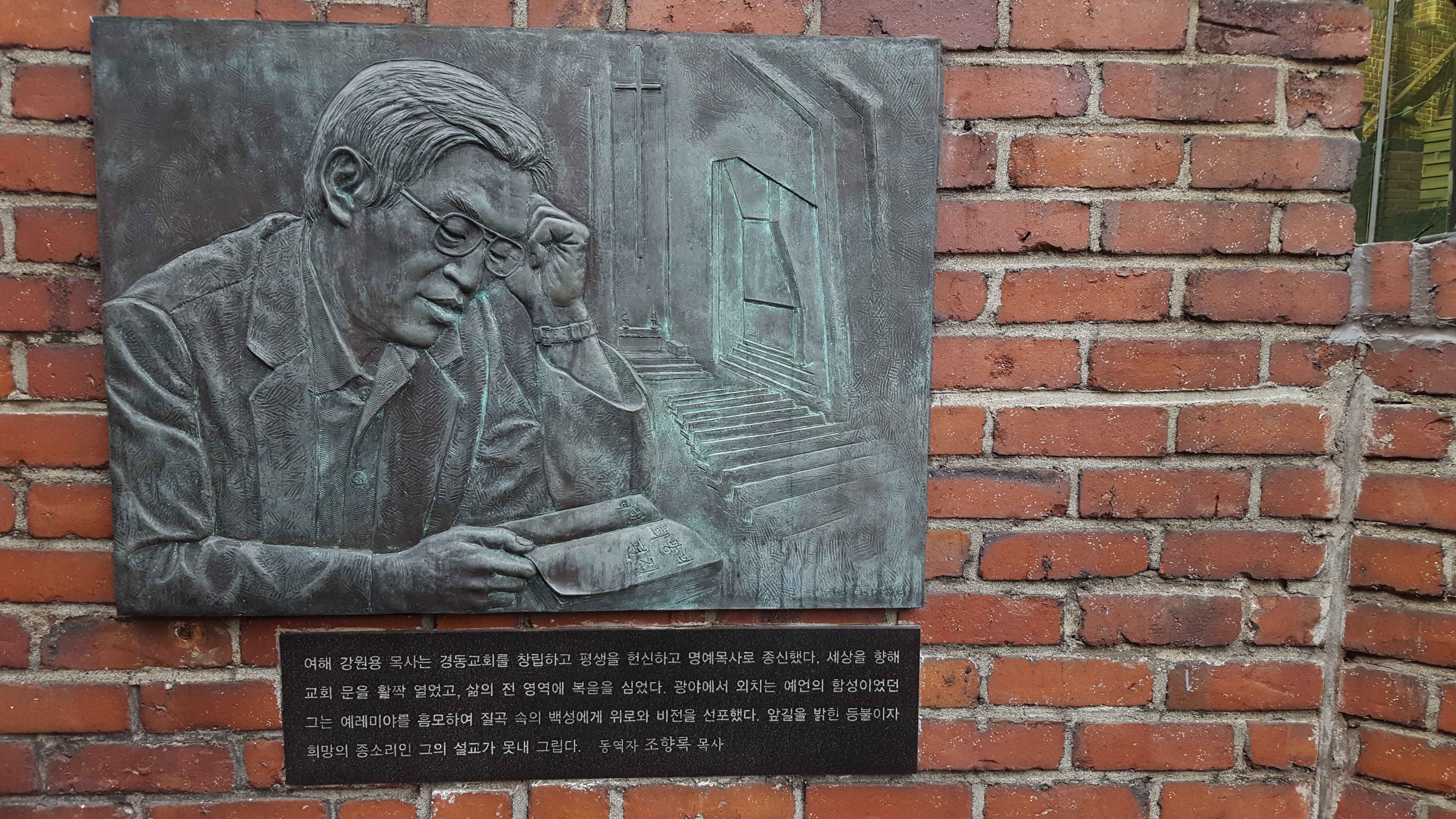 한 번은 와보겠다 마음먹은 지금의 건물도 대화와 포용을 생각하게 만든다. 거대하게 솟은 빨간 벽돌들은 이곳이 교회구나 생각이 들도록 한데 모였고 금빛 ‘경동교회’ 간판은 빨간 벽돌과 조화를 이룬다. 마치 카타콤처럼 어둡기도 하다.