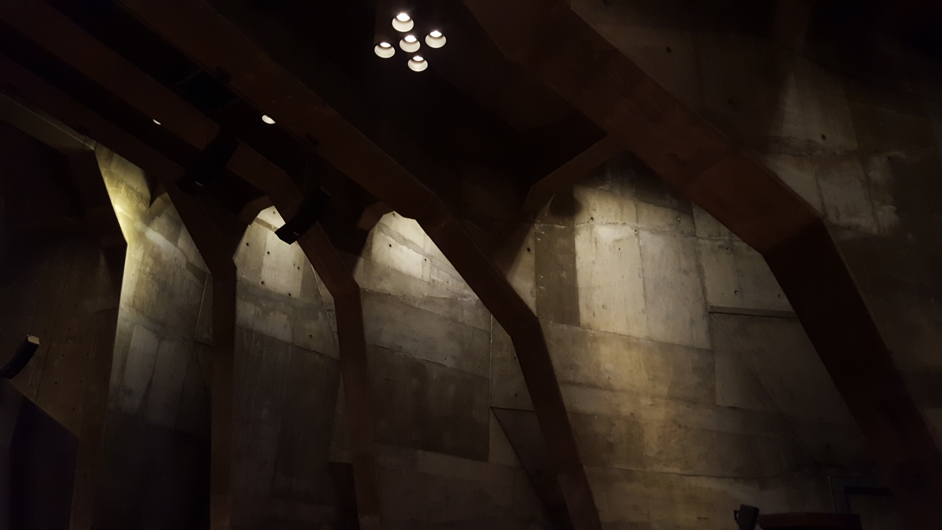 주일 2부 예배를 마치고 나서 은은하게 비추인 노출 콘크리트 벽면을 바라봤다. 더운 여름을 시원하게 해주는 동굴 같은 분위기였다.