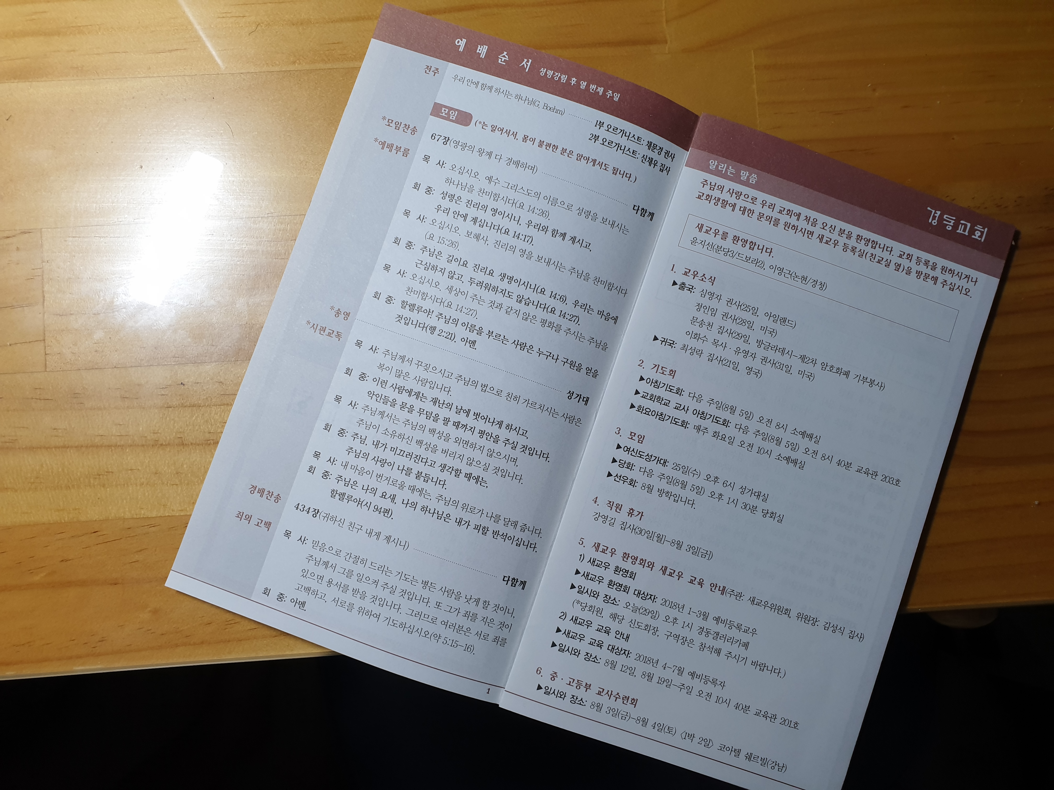 경동교회 예배 순서