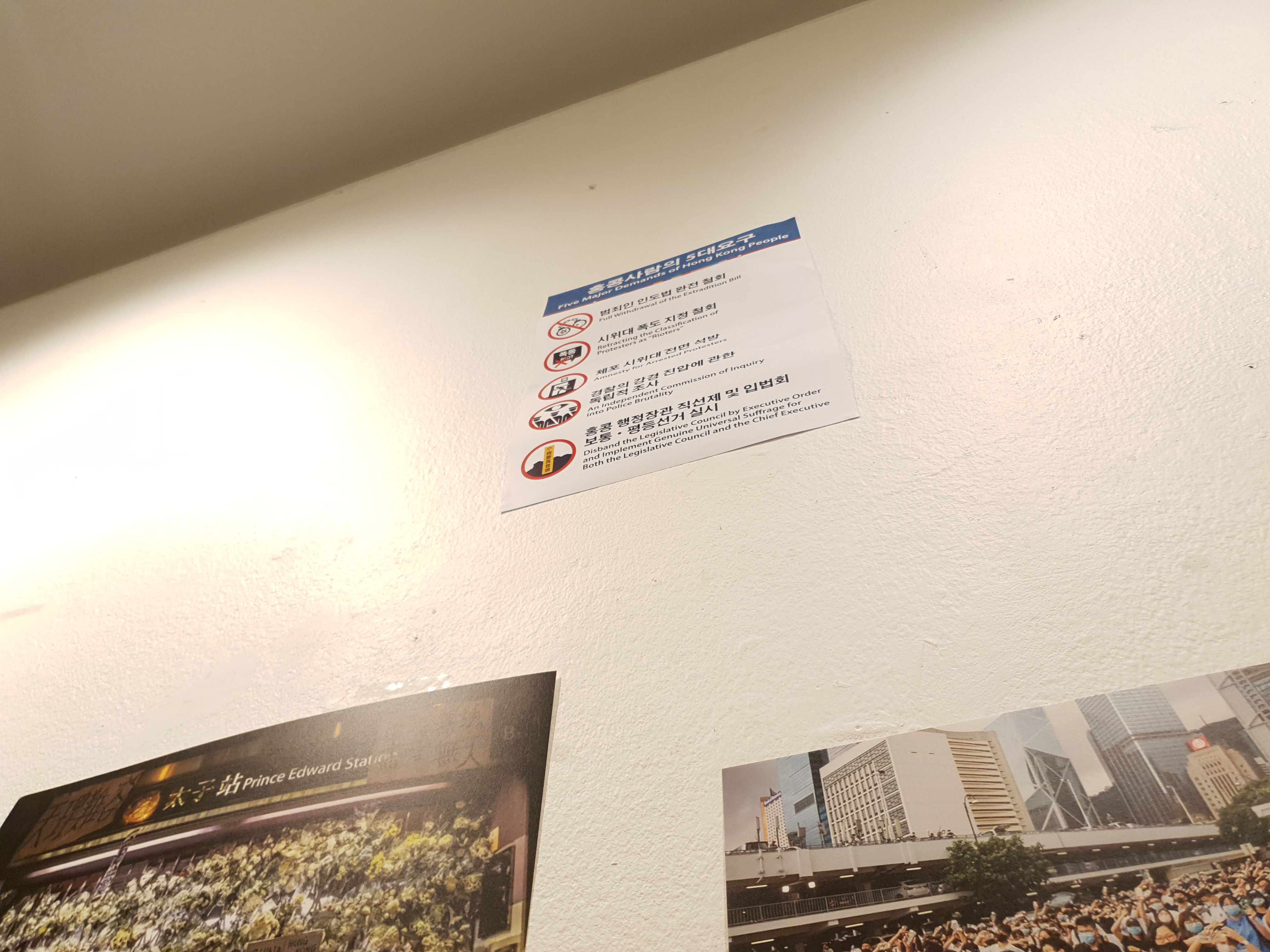 전시회 관계자들에게 구체적으로 묻기 어려웠다. 신원 정보와 관련 돼 있을 뿐 아니라 많은 정보가 난립했기 때문이다. 홍콩은 질서를 잃은 지 오래다. 소셜미디어에 번진 시위대의 목소리는 분명했다. “이렇게 말하기 싫지만 말해야 한다. 당분간 홍콩에 오지 말라. 홍콩은 안전하지 않다.‘ 전시회에 걸린 문구 하나가 중국 본토에 보내는 메시지처럼 보였다. ’폭도는 없을 뿐 폭정만 있다(沒有暴徒 只有暴政).‘ 무질서를 만든 주체는 누구인가? 중국 본토는 응답하라.