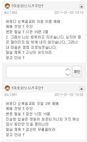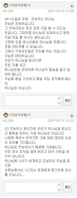 설교 요약 때로 설교 요약을 공지하기도 했다(2007. 5. 1). 이분법적 본문이 인상적이다.