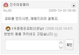 사진은 교회 건축 후 찾아가겠다는 진주여황폐하의 글(2005. 10. 20).