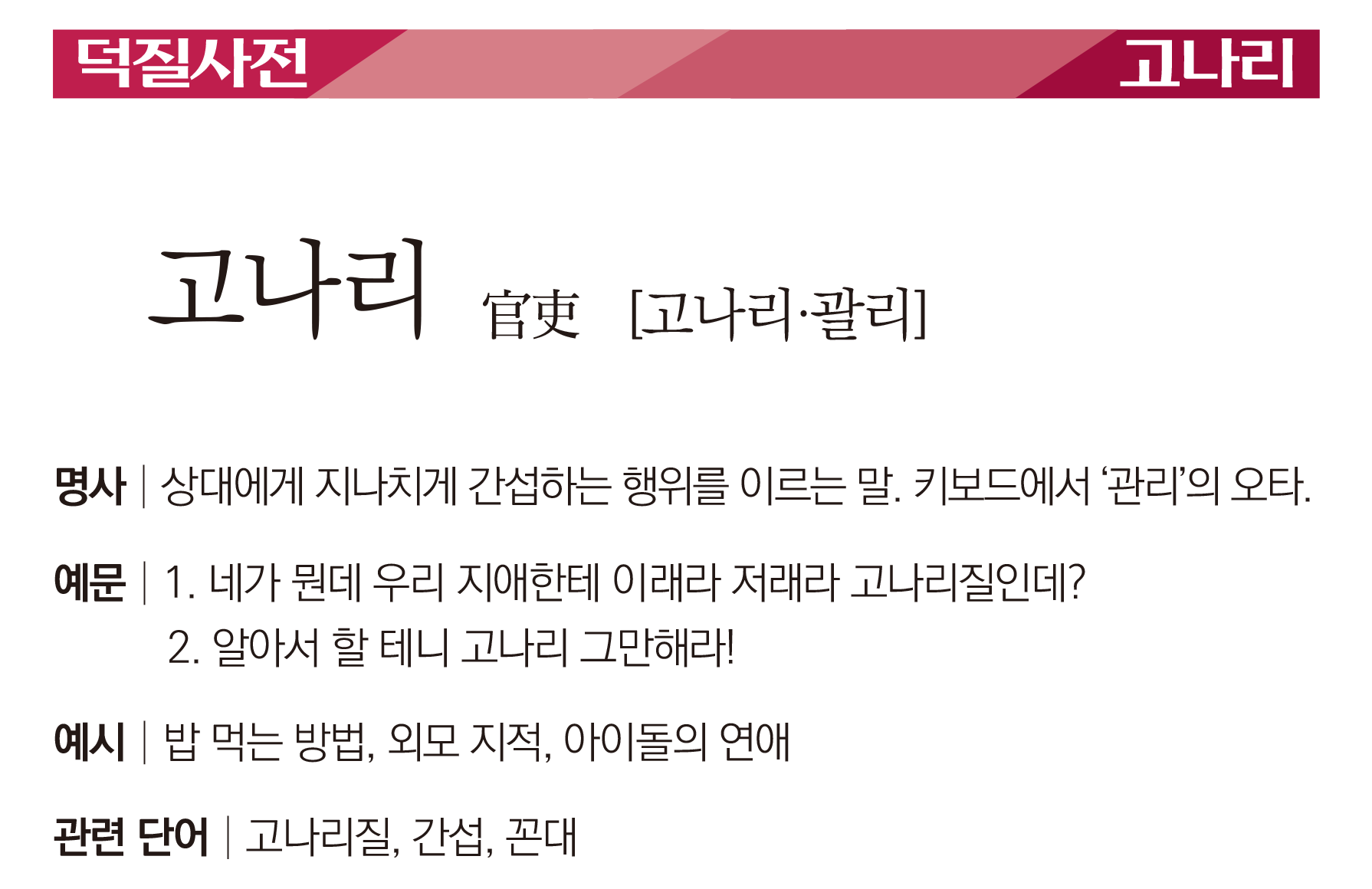 생각보다 고나리를 주변에서 발견할 수 있다. 자신이 먼저 살아본 우월의식을 가지면 누구든 가능하다. 위험하다! 큰일이다! 고나리에서 자유로울 수 없는 걸까.