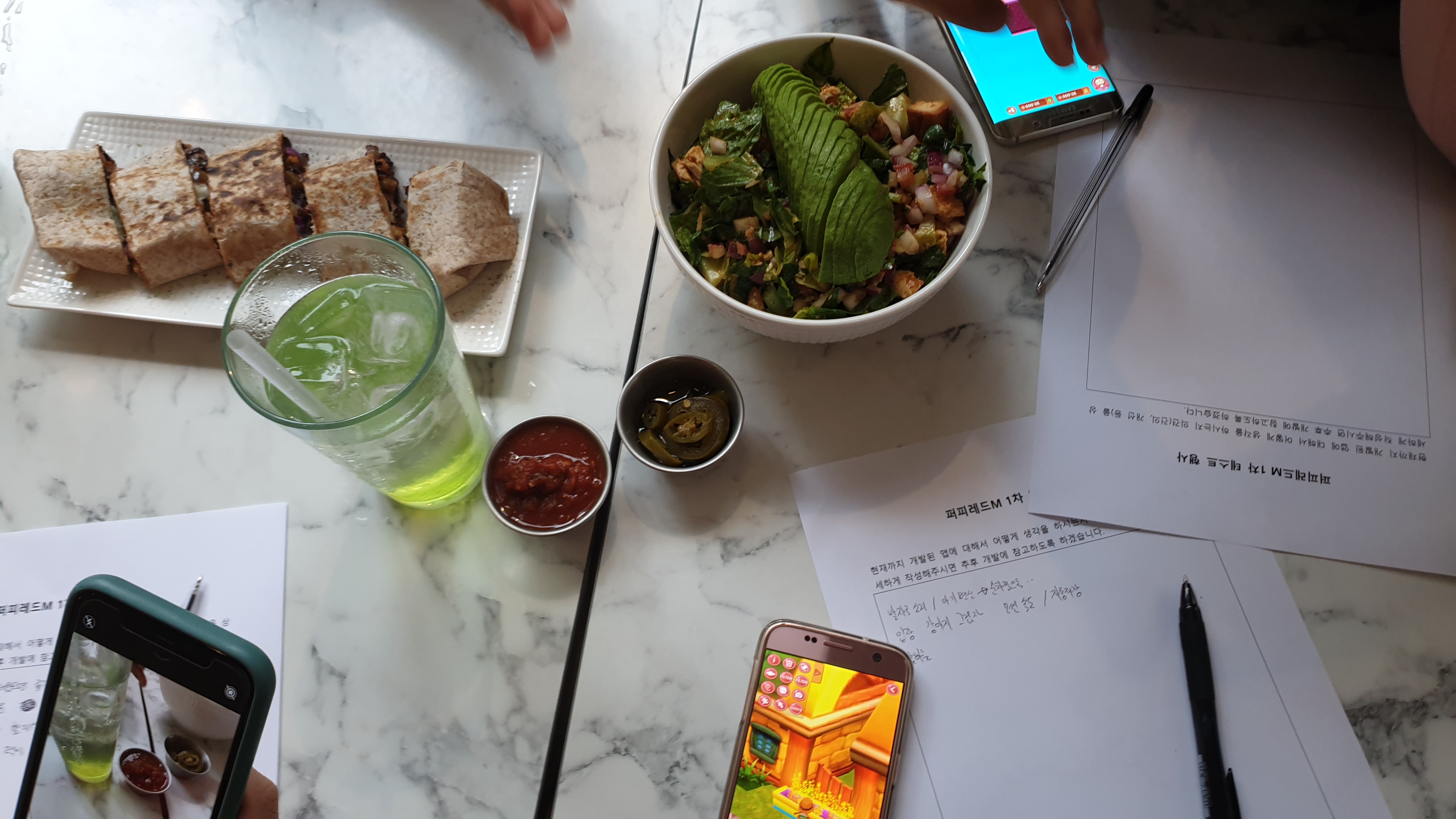 신사동에 위치한 한 카페에서 퍼피레드 1차 테스트가 진행됐다. 퍼피레드 에트기억연구소 주안 신분으로 참석한 본지 주필도 테스트에 참여해 퍼피레드 개발에 대한 입장을 전달했다. 툴 설명을 마친 지니가 미니파크에 접속해 메뉴를 설명했고 스마트폰을 건네자 본격적인 시연을 진행했다. 회원들은 그래픽, 아이템 배치, 캐릭터 이동, UI를 종합적으로 경험하며 피드백을 이어갔다.