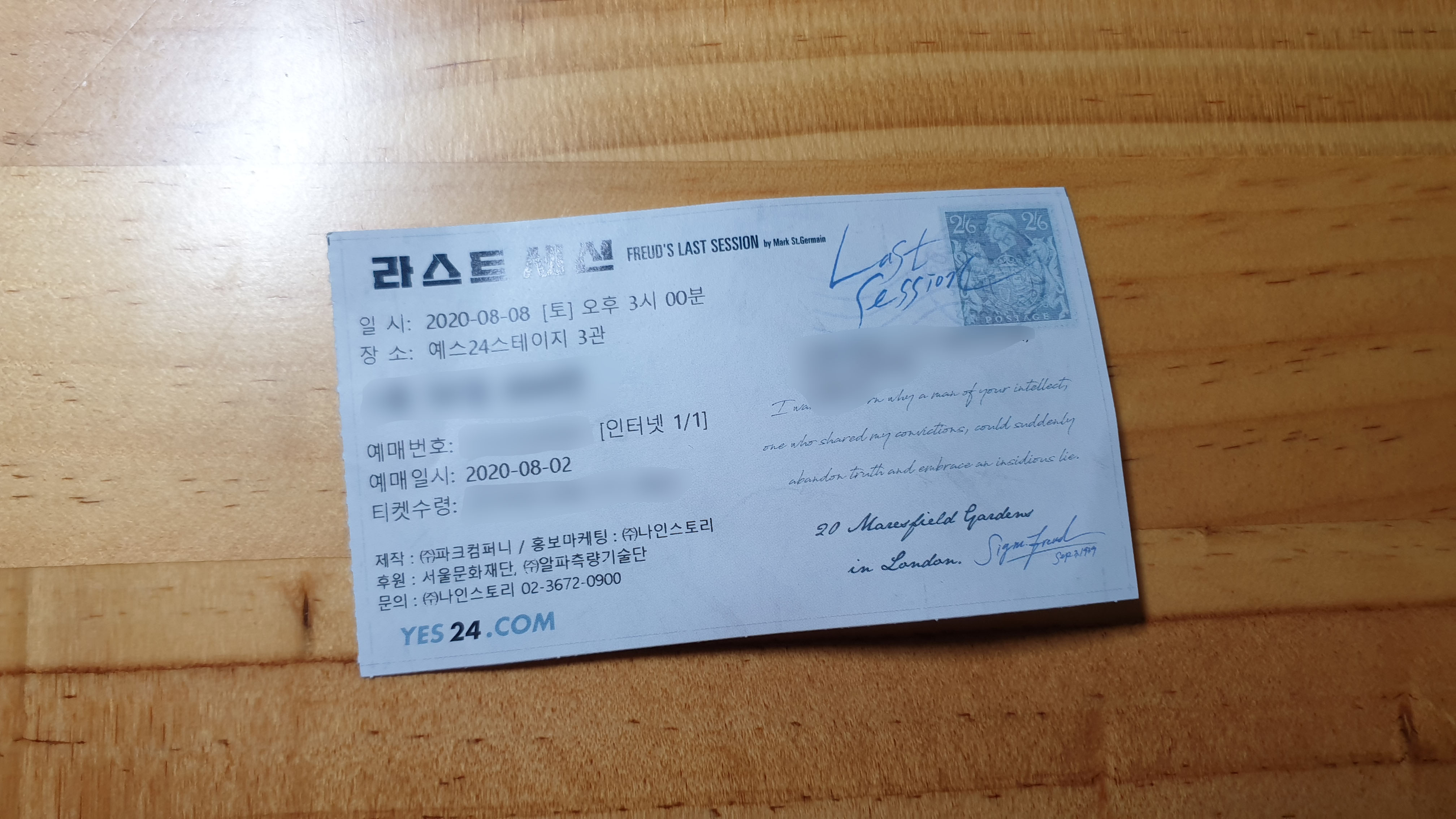 예스24스테이지 3관, 9월 13일까지 공연.