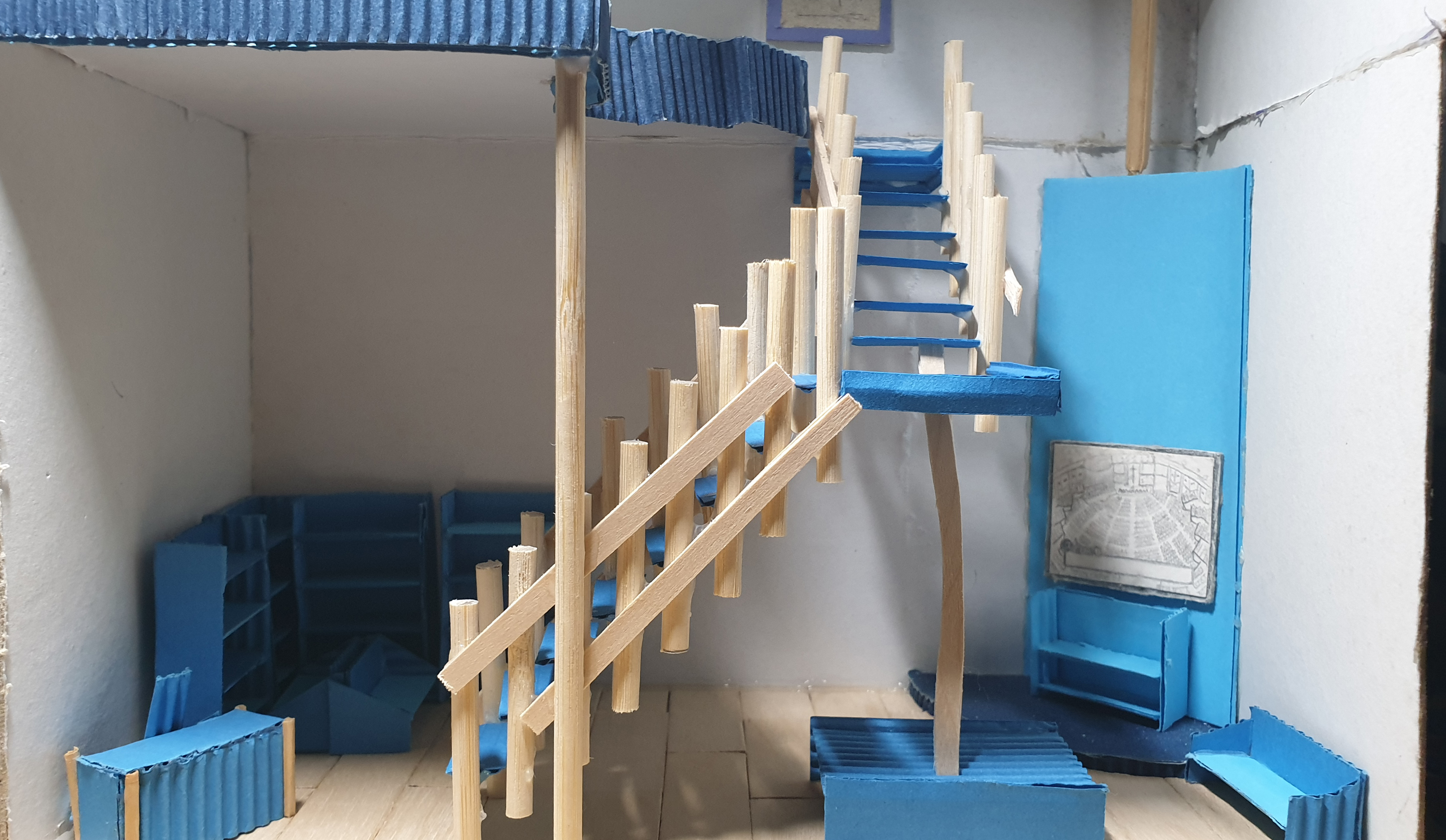 노래를 들으며 1층과 2층 계단을 이어줄 발판을 완성해보자.