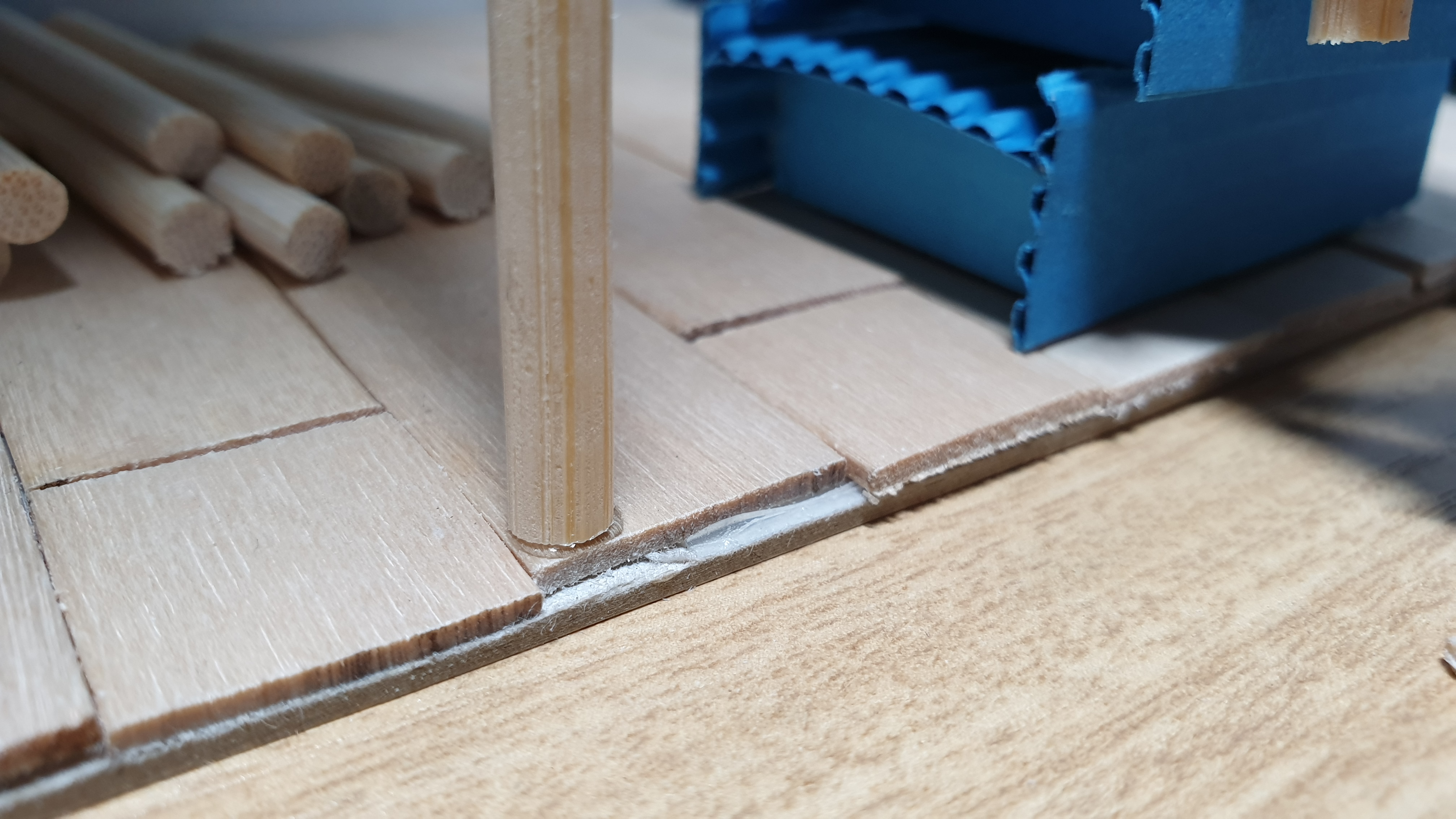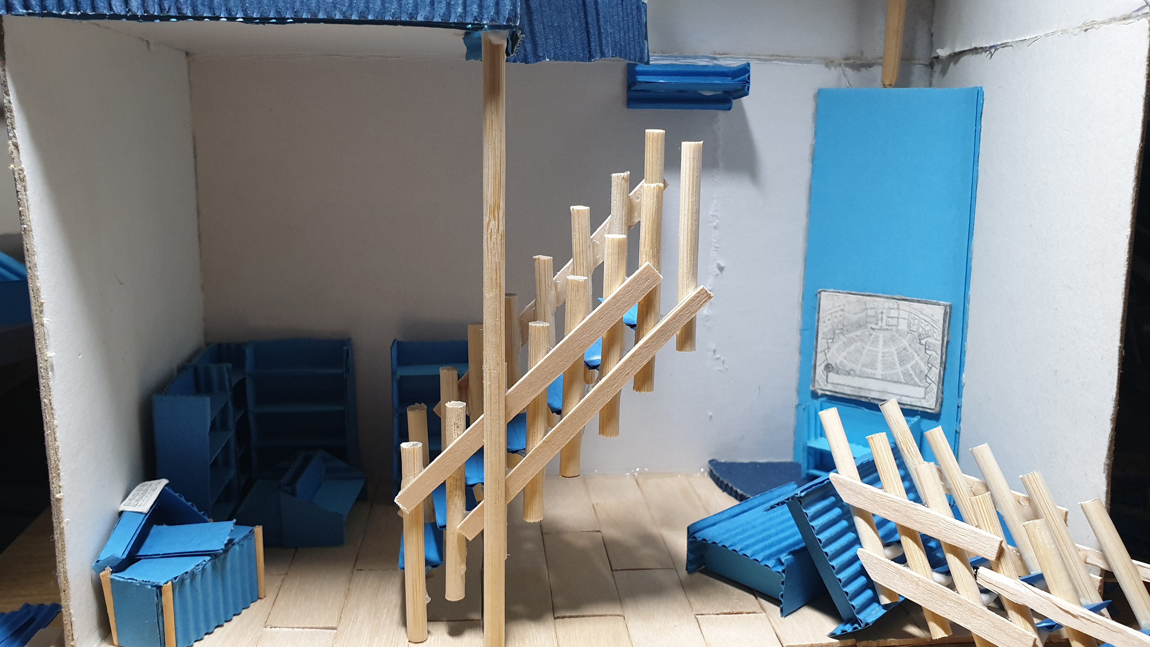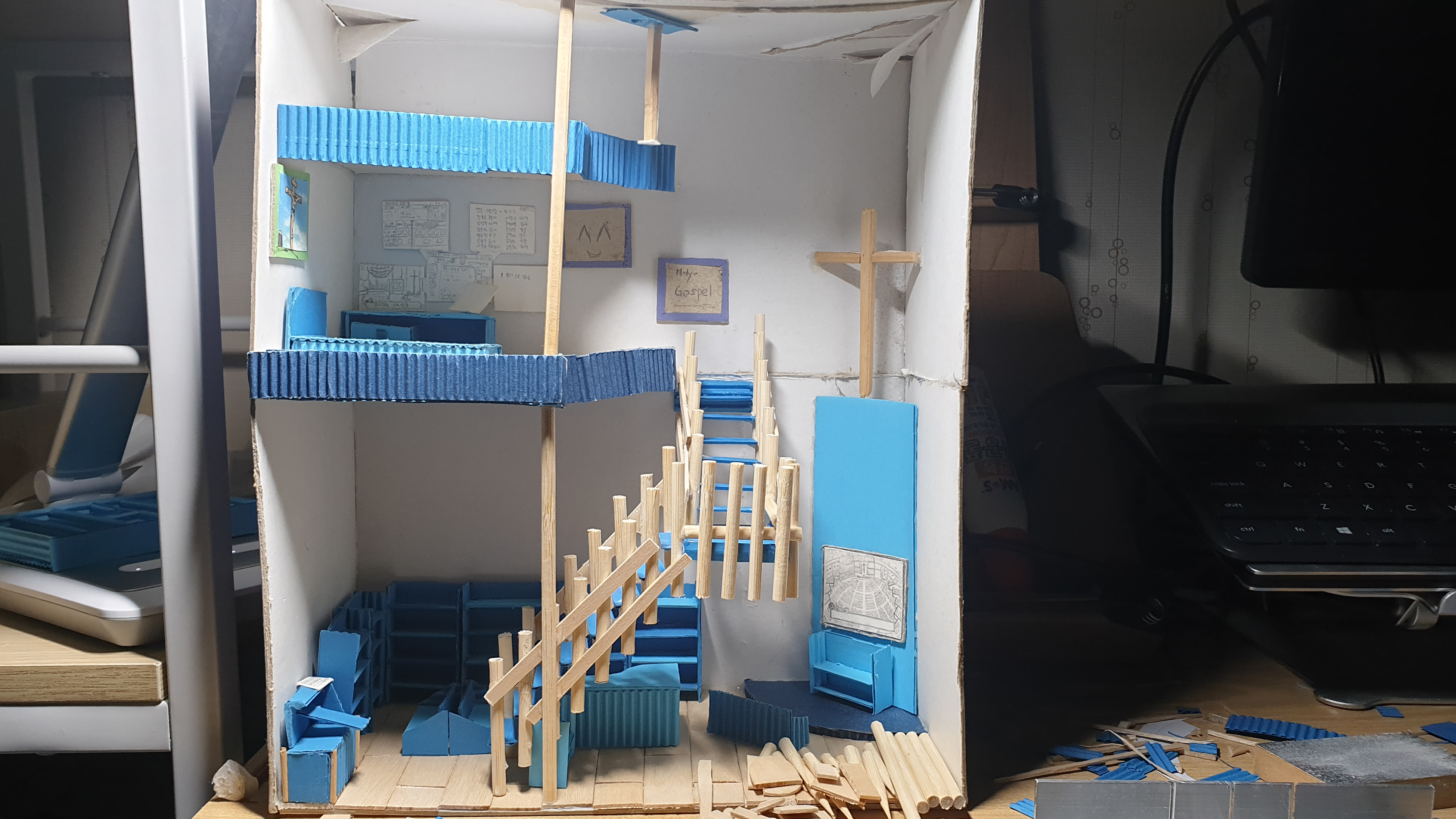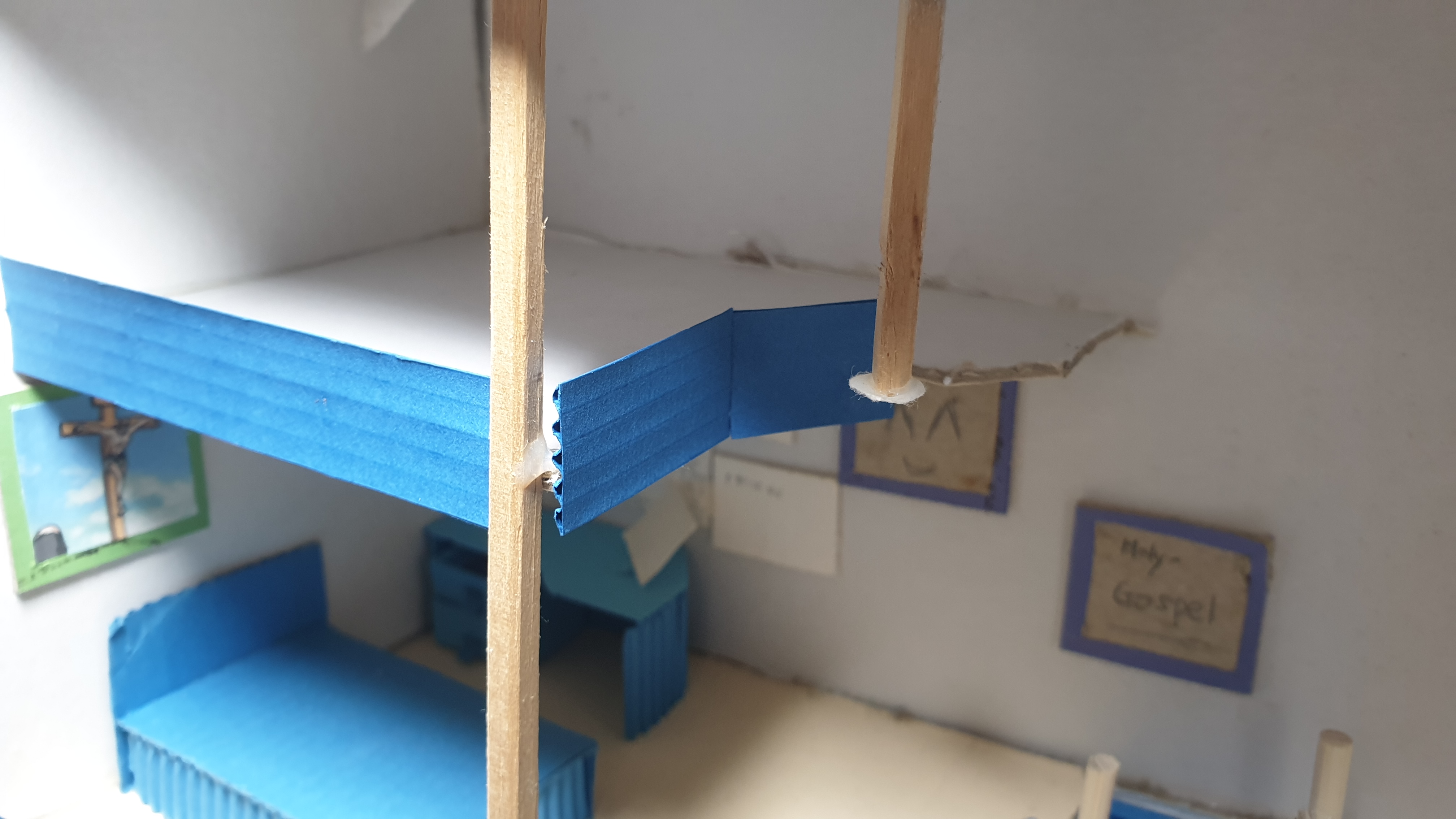 2층에서 1층으로 내려가는 계단도 순간접착제를 이용해 붙여주고 나서 기둥으로 고정해준다. 마를 때까지 주니엘 노래를 들으며 기다리자.