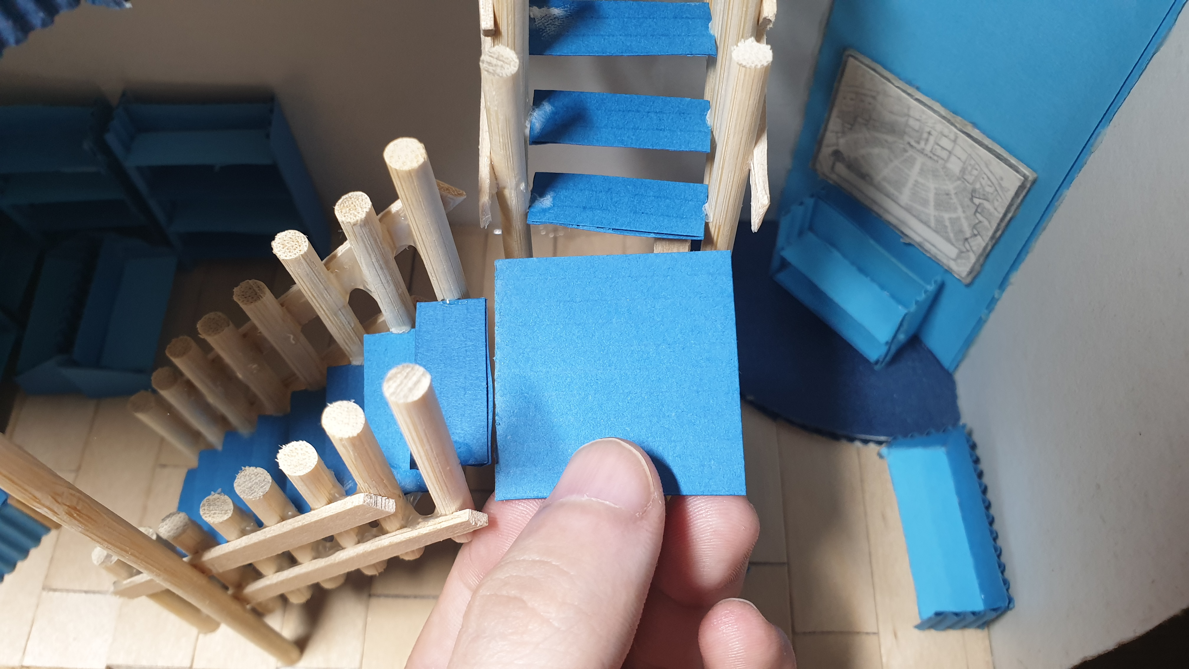 본격적으로 1층에서 2층으로 올라가는 계단을 붙이기로 했다. 과감하게 3초 만에 하나하나 완성해야 한다.