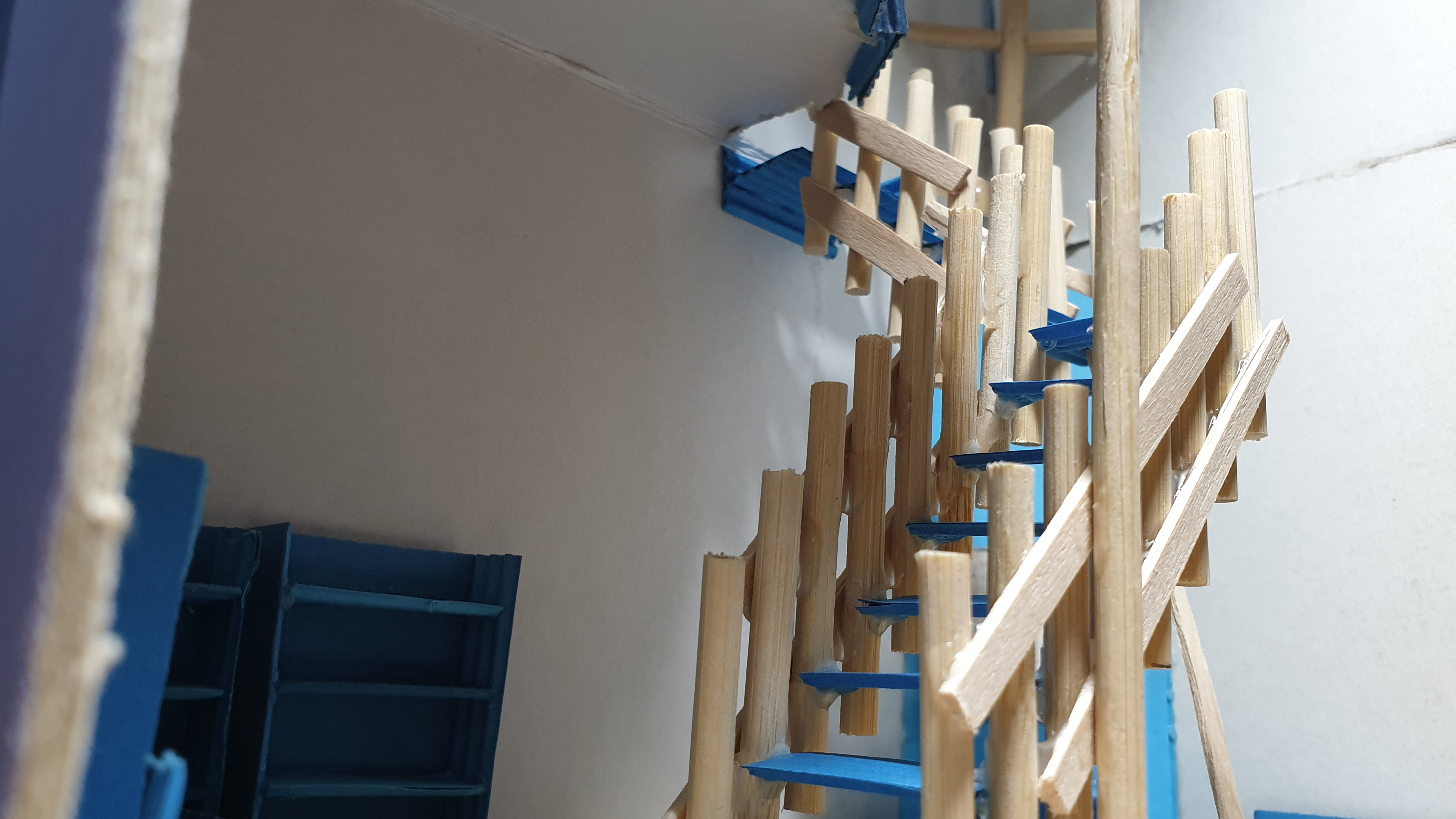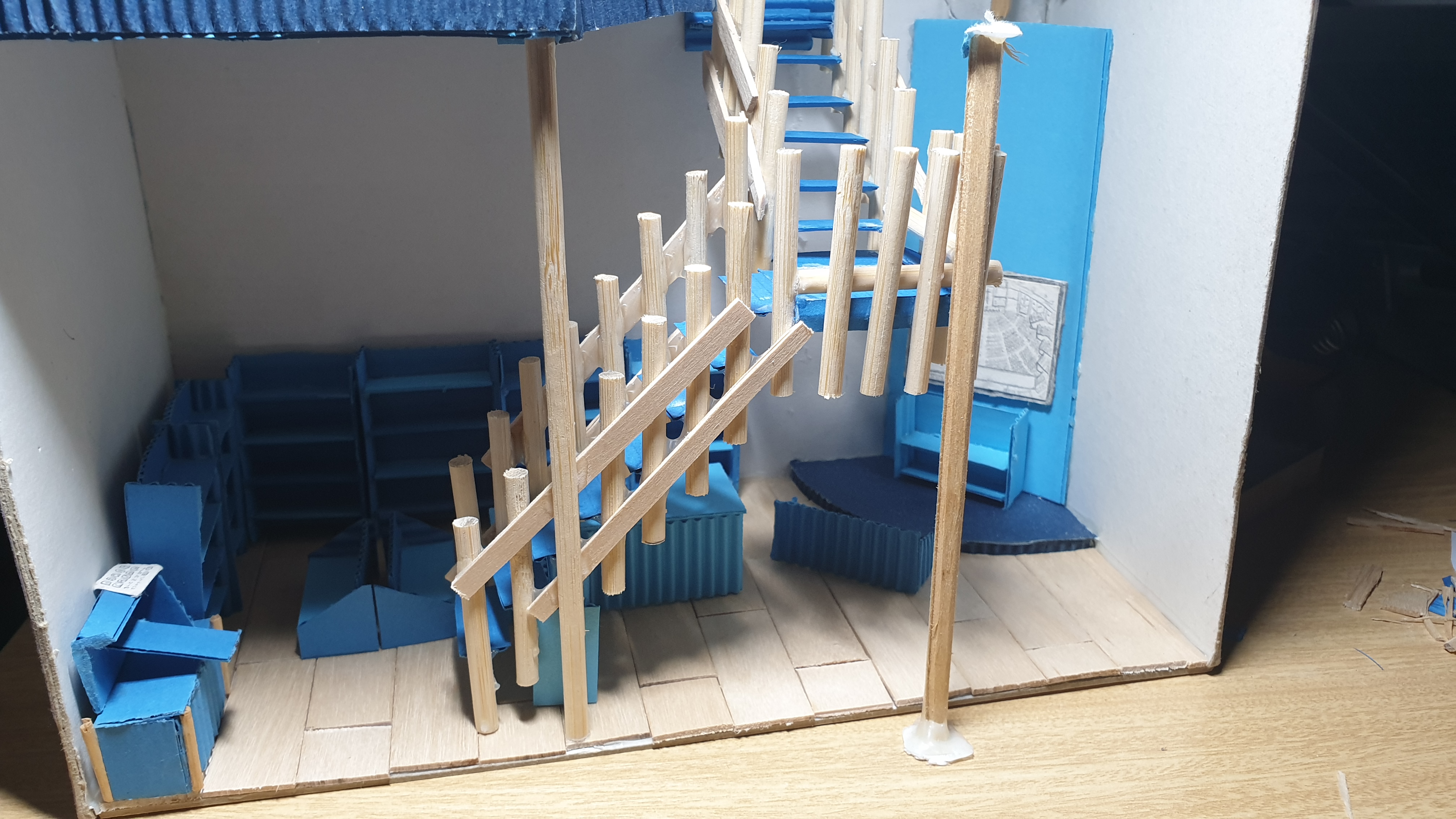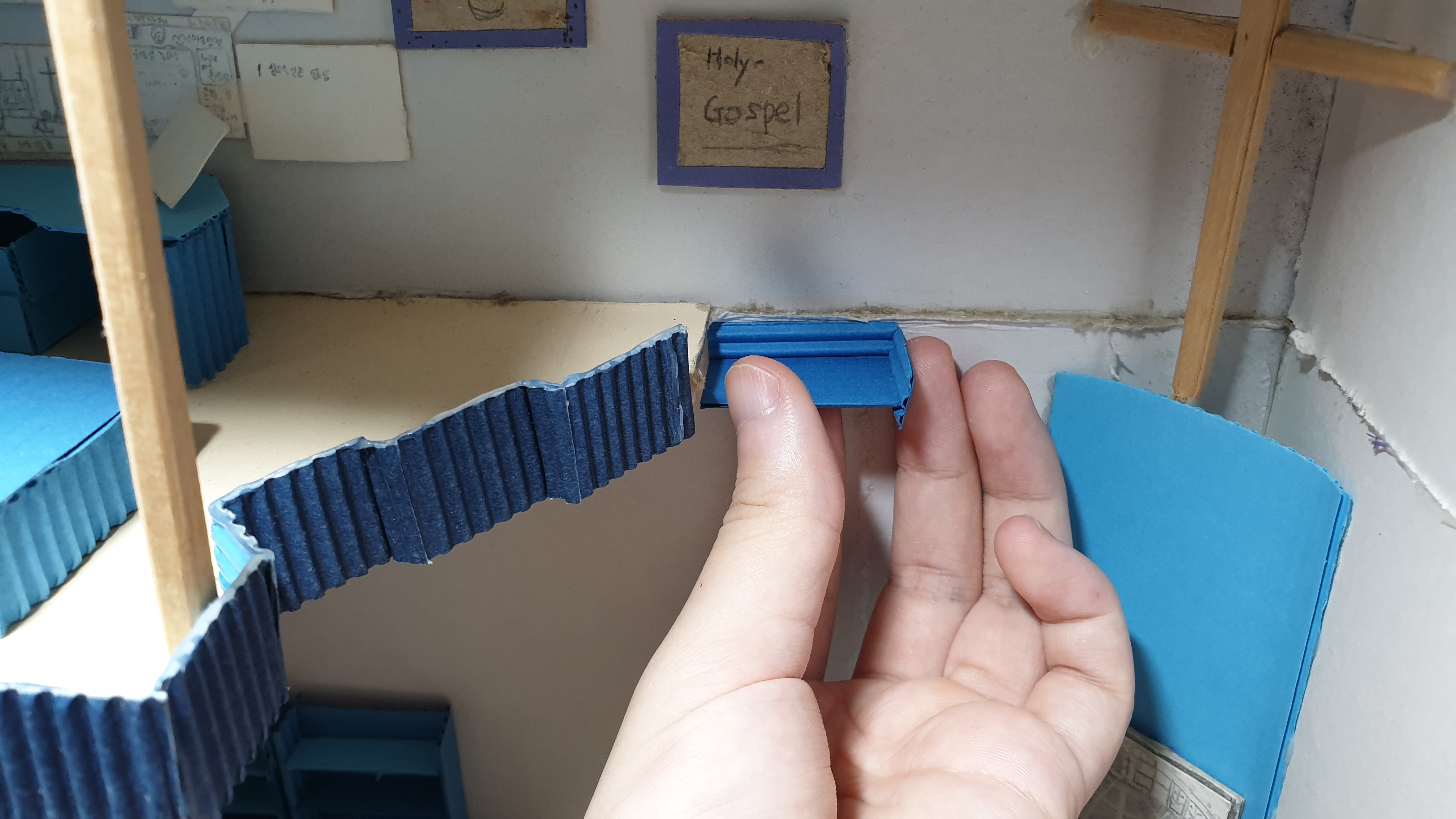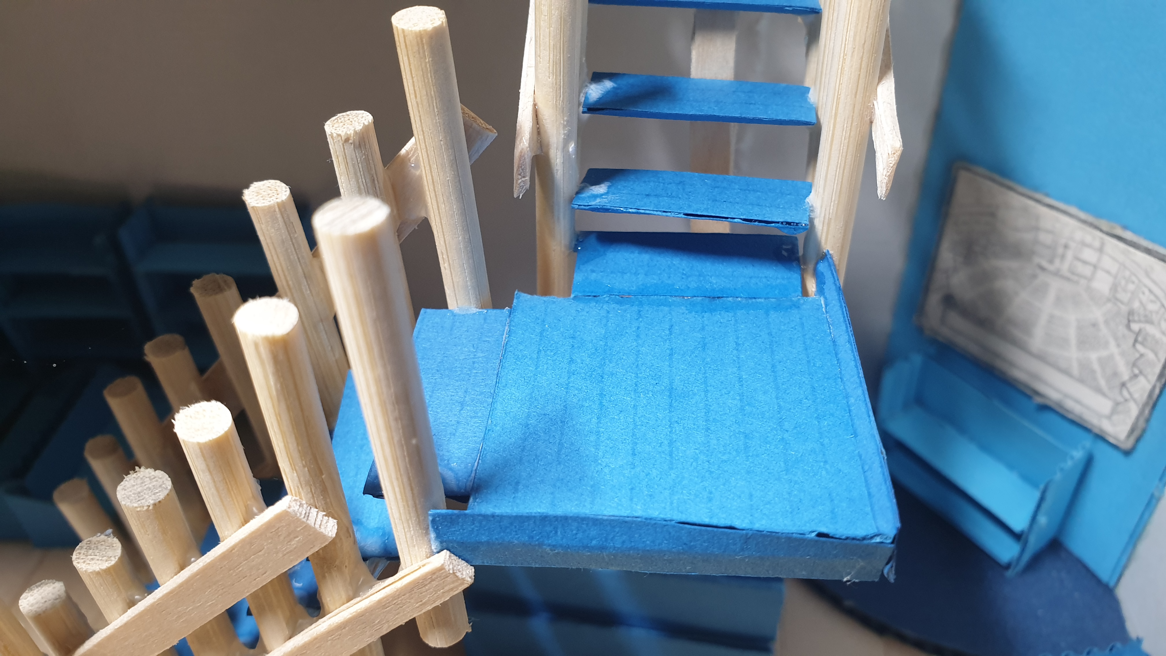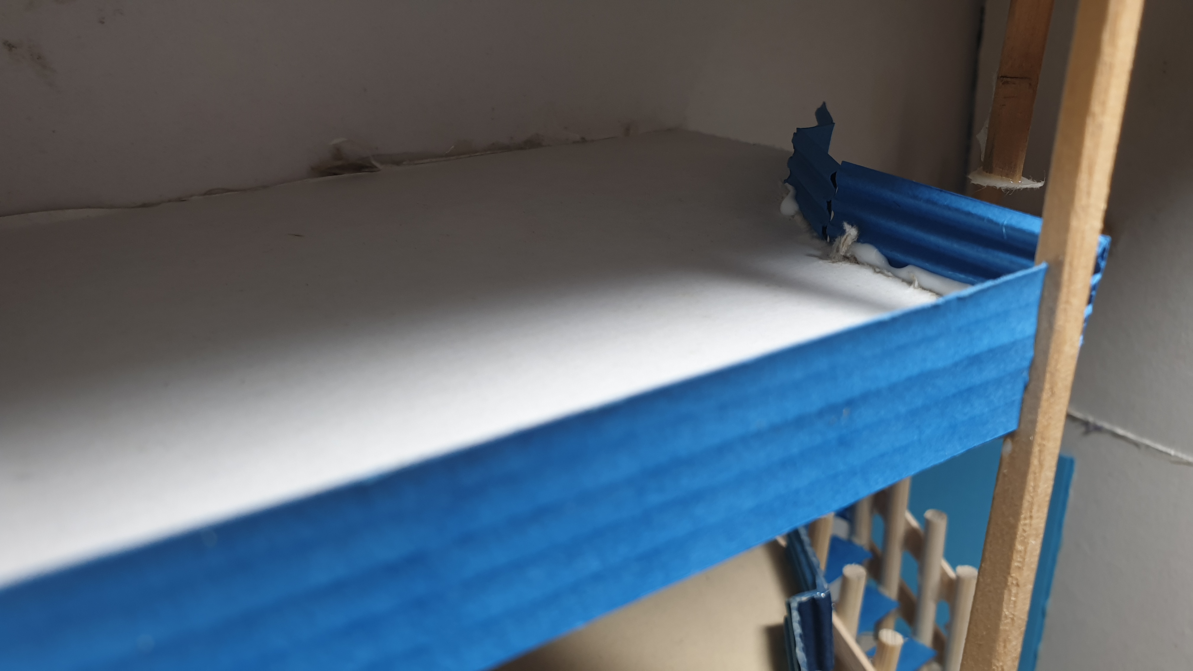 2층에서 1층으로 내려가는 계단도 순간접착제를 이용해 붙여주고 나서 기둥으로 고정해준다. 마를 때까지 주니엘 노래를 들으며 기다리자.