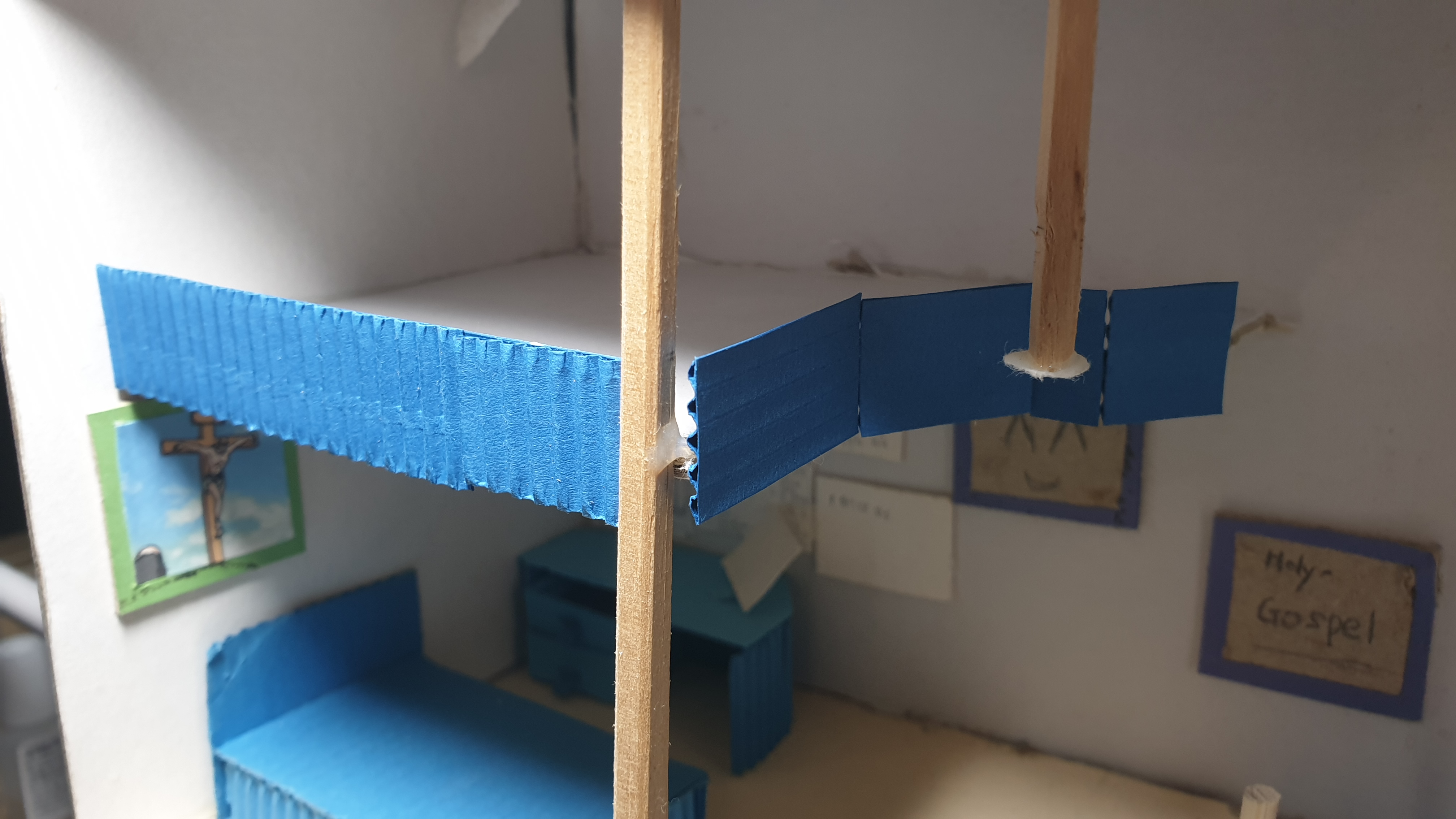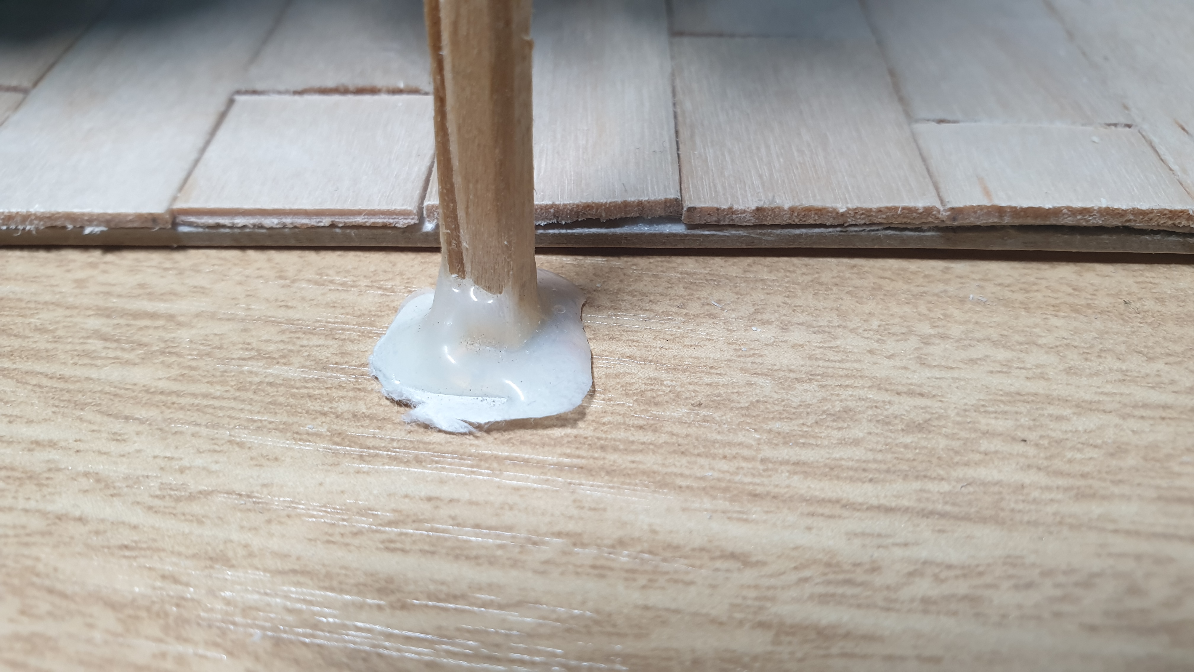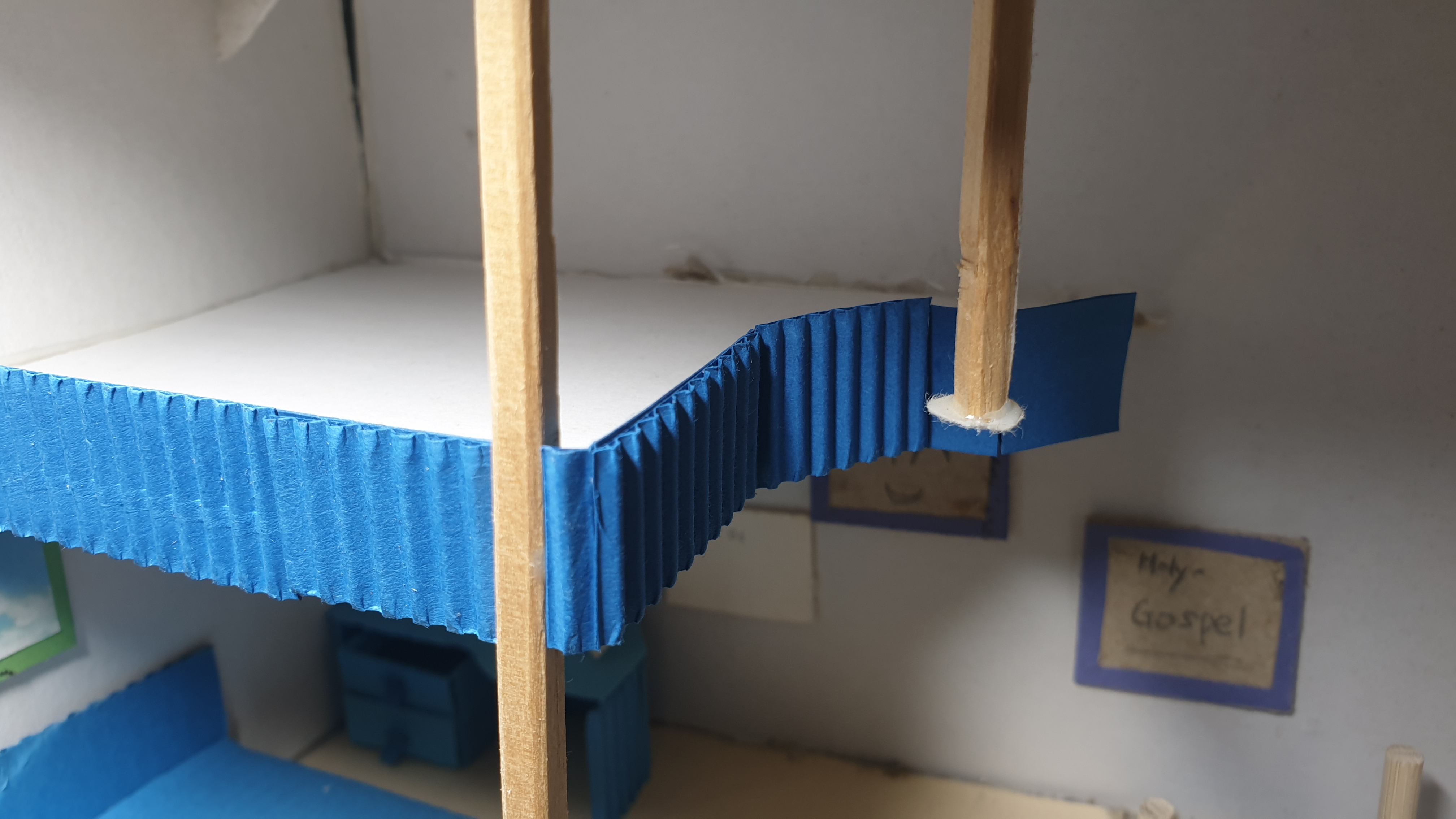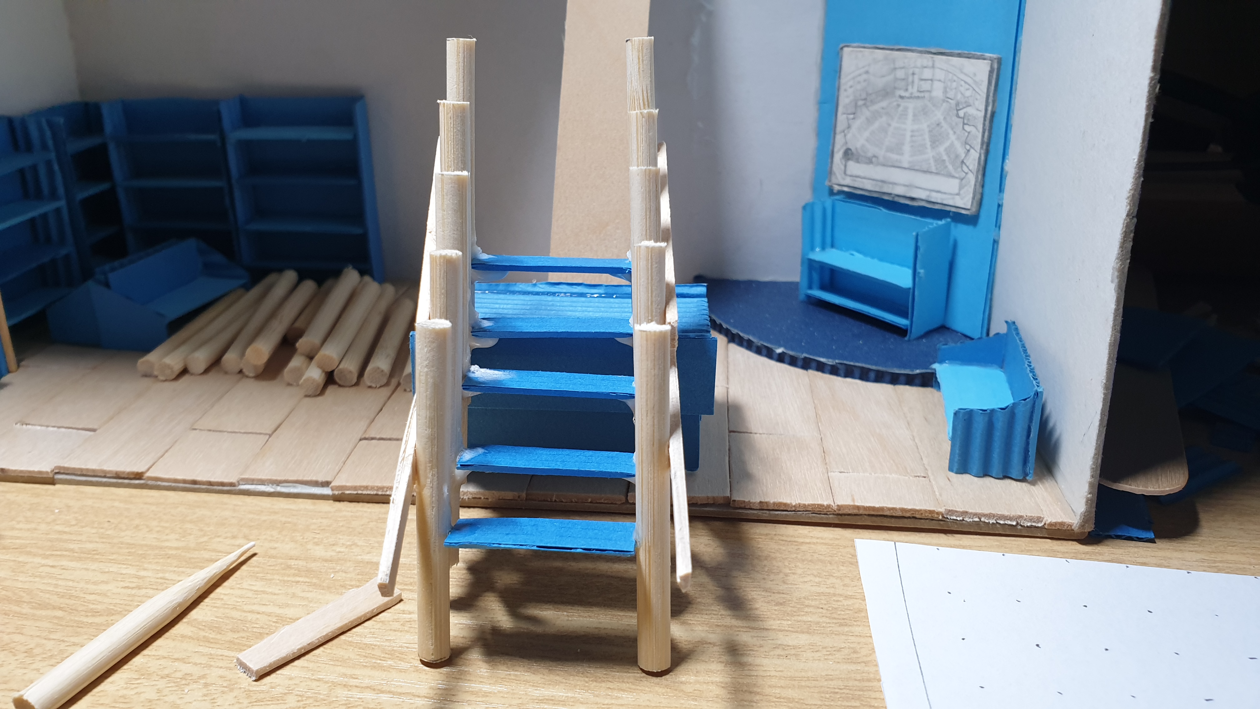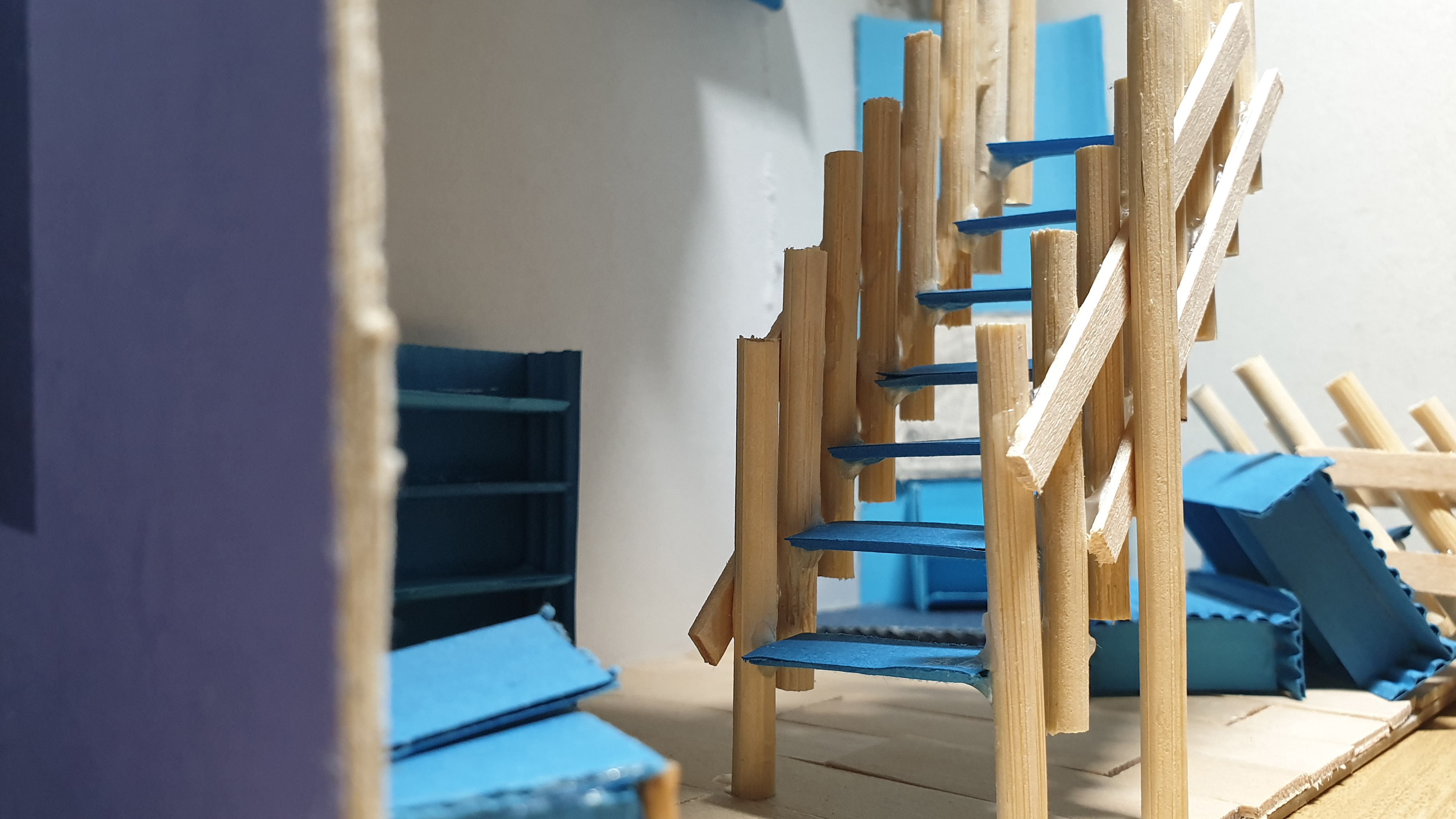 2층에서 1층으로 내려가는 계단도 순간접착제를 이용해 붙여주고 나서 기둥으로 고정해준다. 마를 때까지 주니엘 노래를 들으며 기다리자.