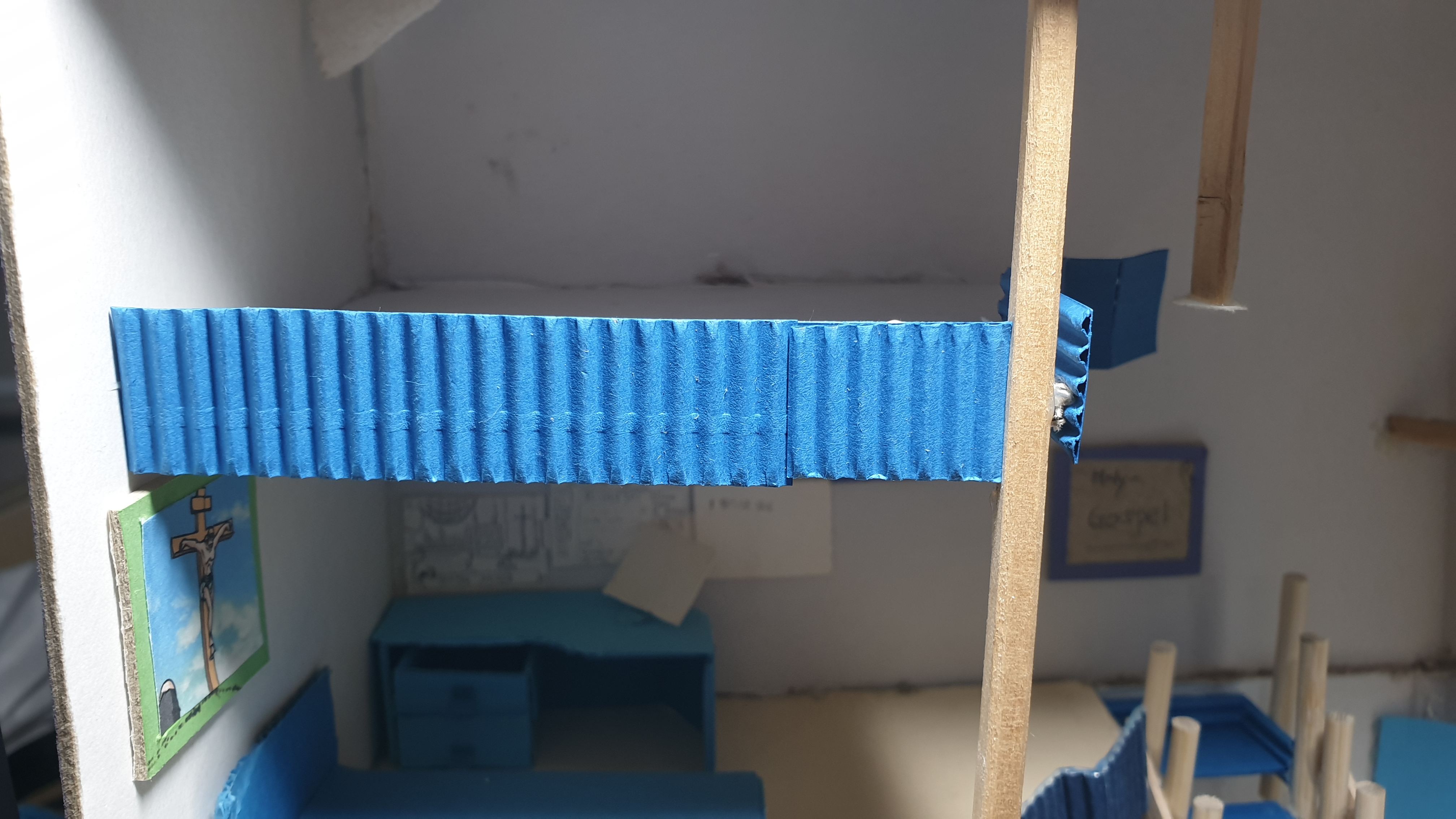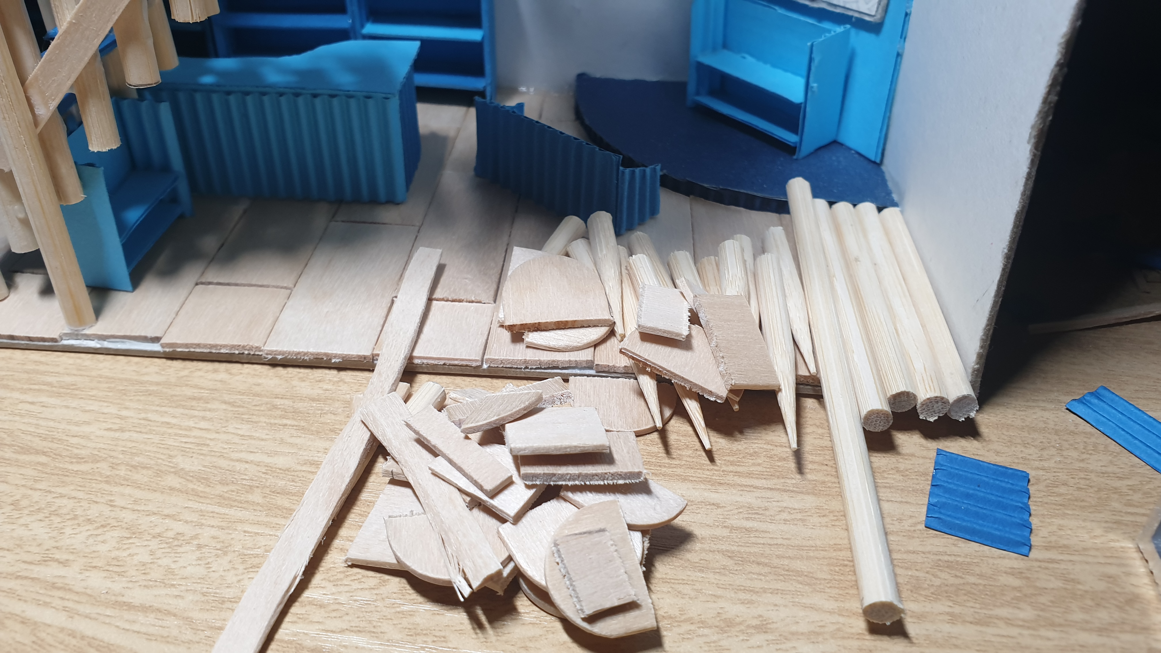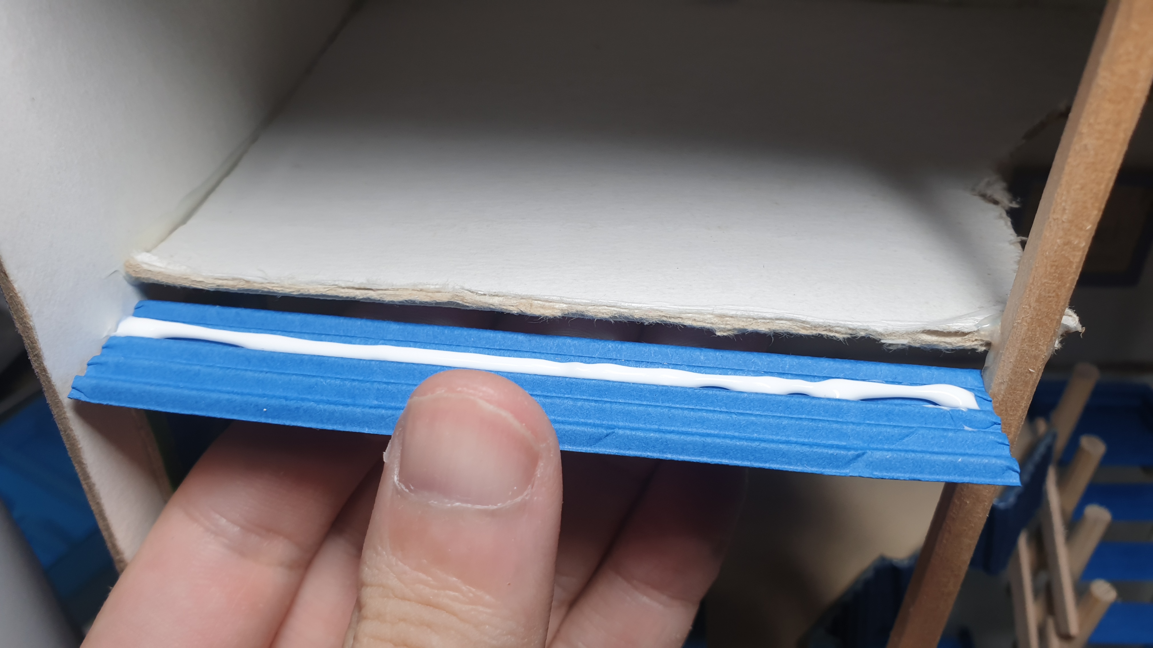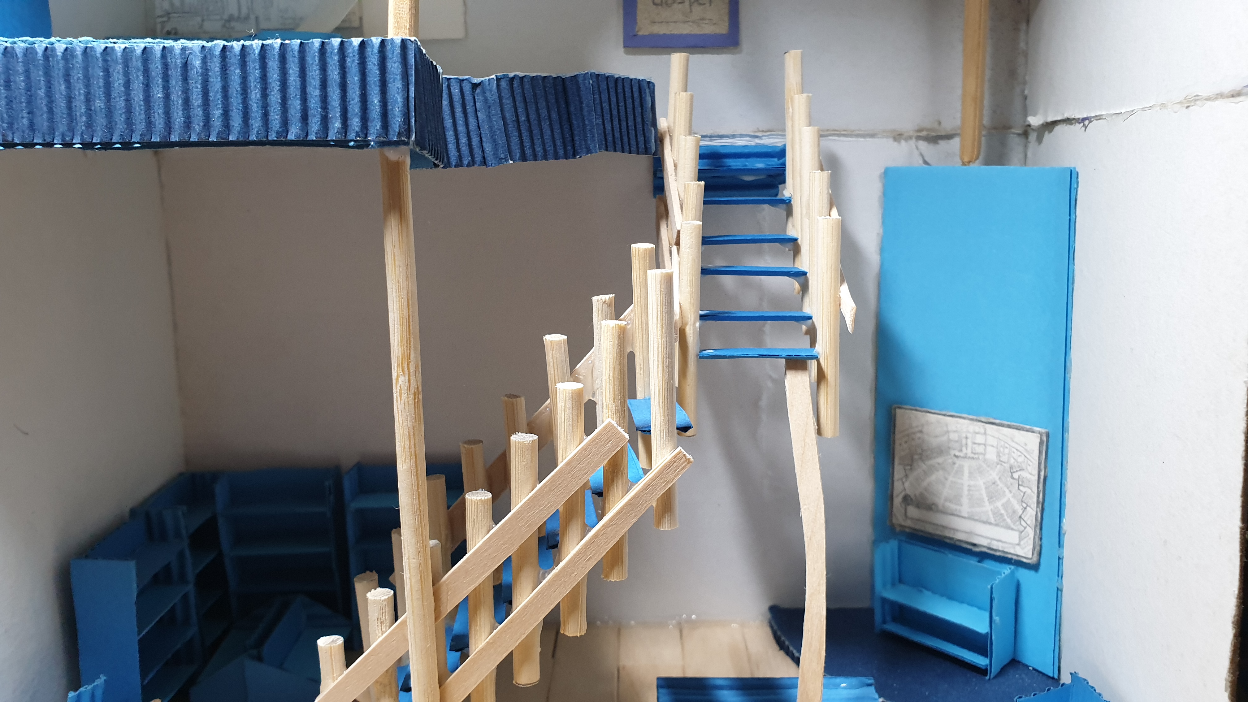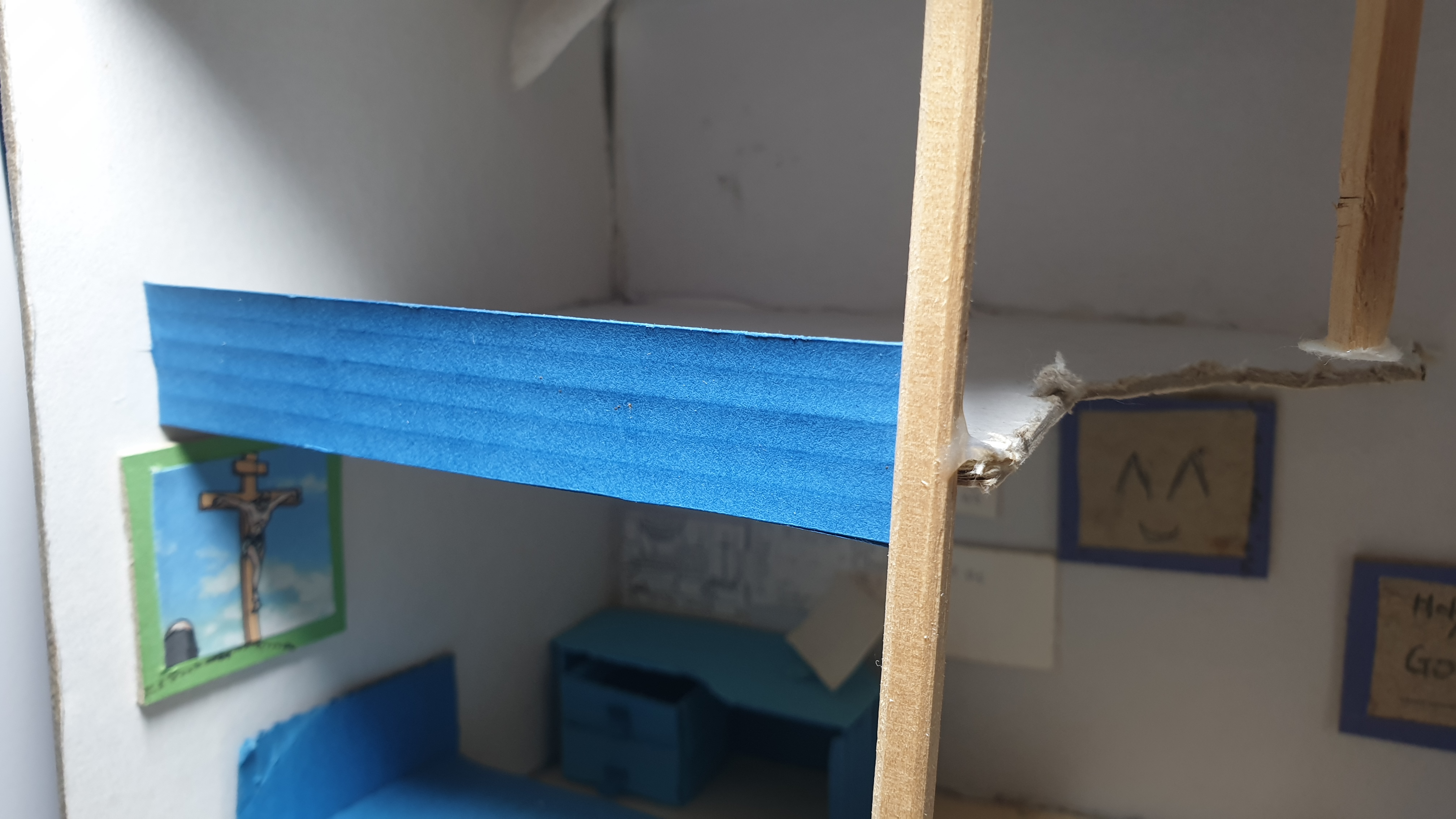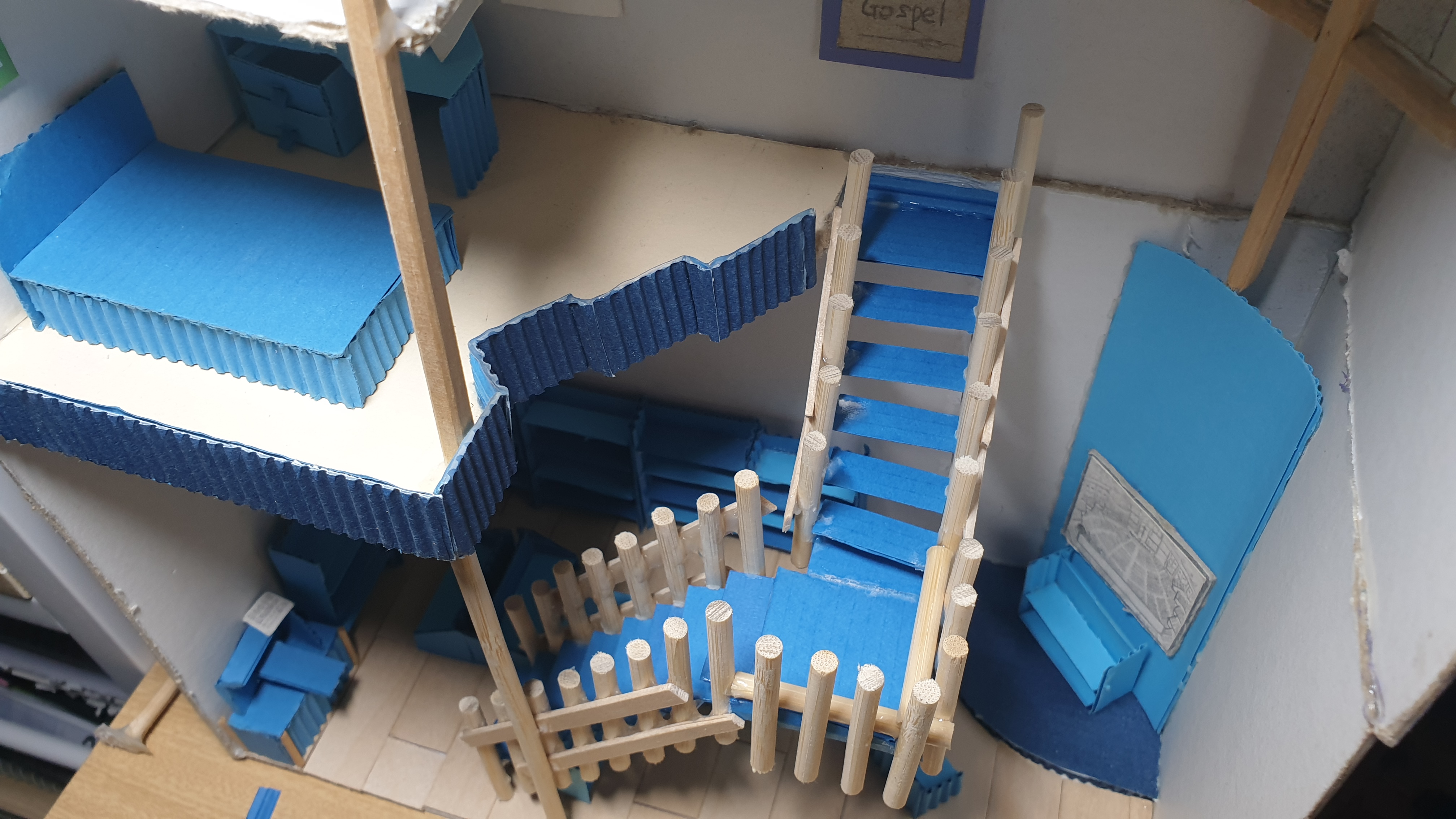 2층에서 1층으로 내려가는 계단도 순간접착제를 이용해 붙여주고 나서 기둥으로 고정해준다. 마를 때까지 주니엘 노래를 들으며 기다리자.