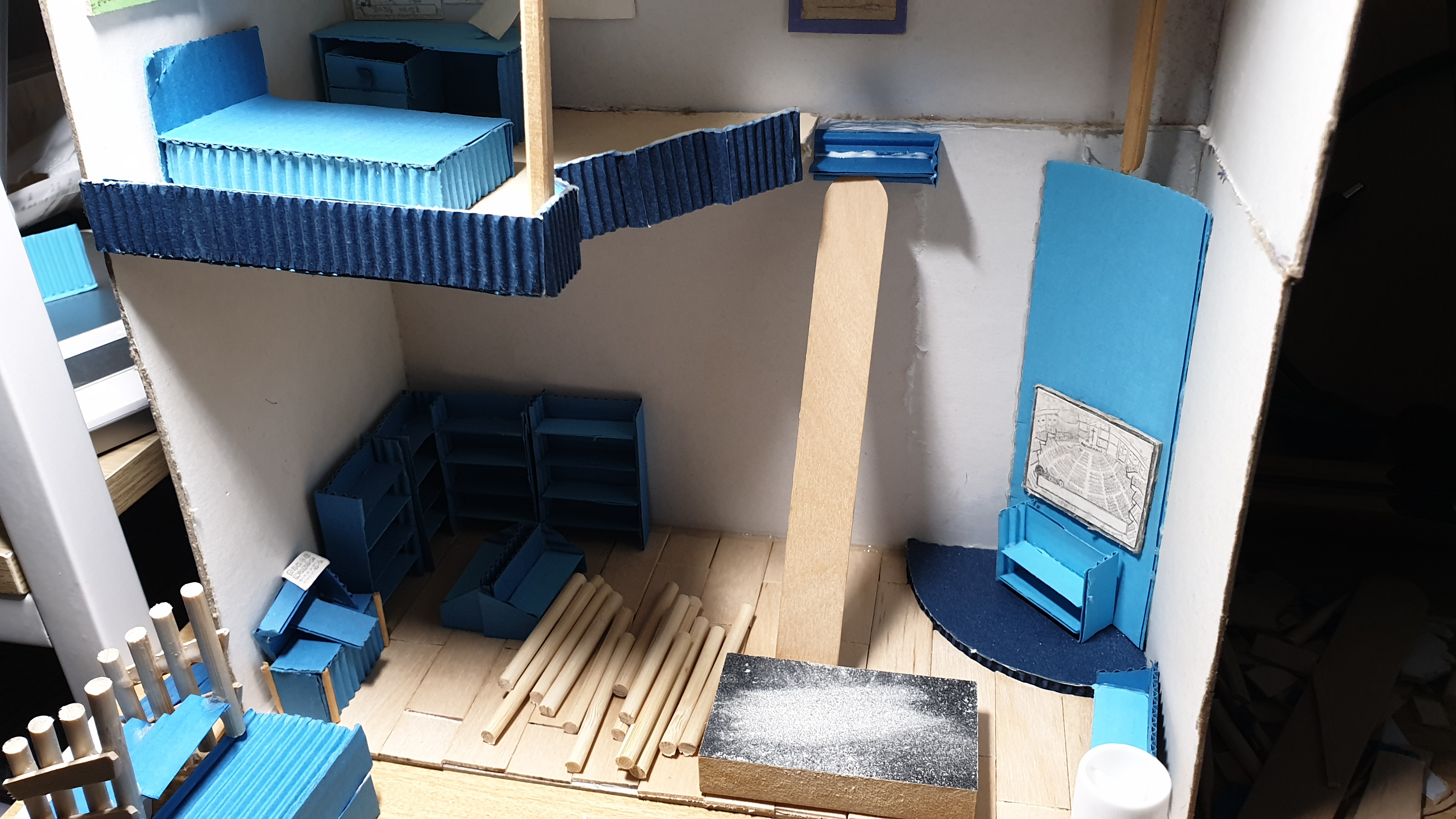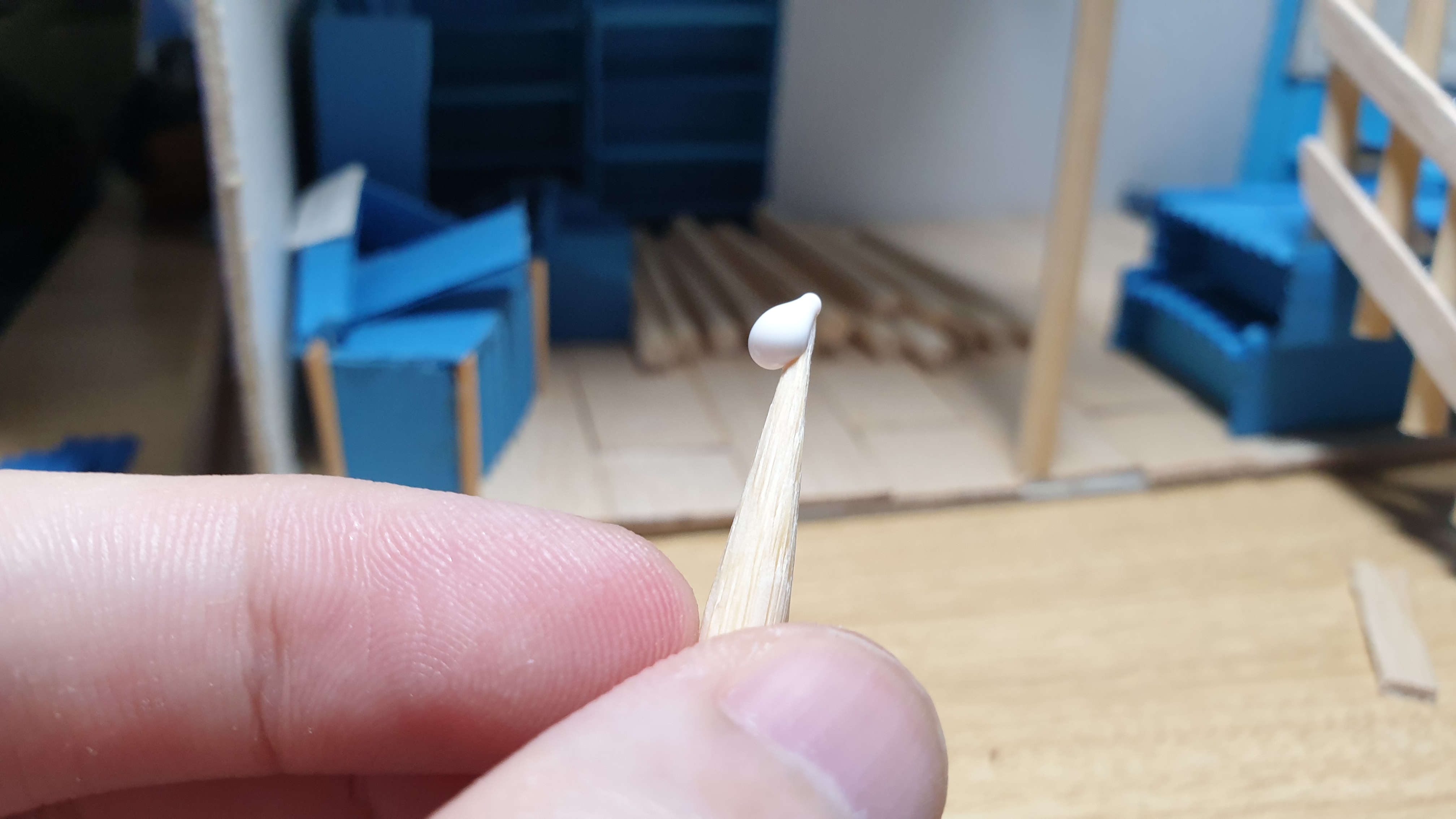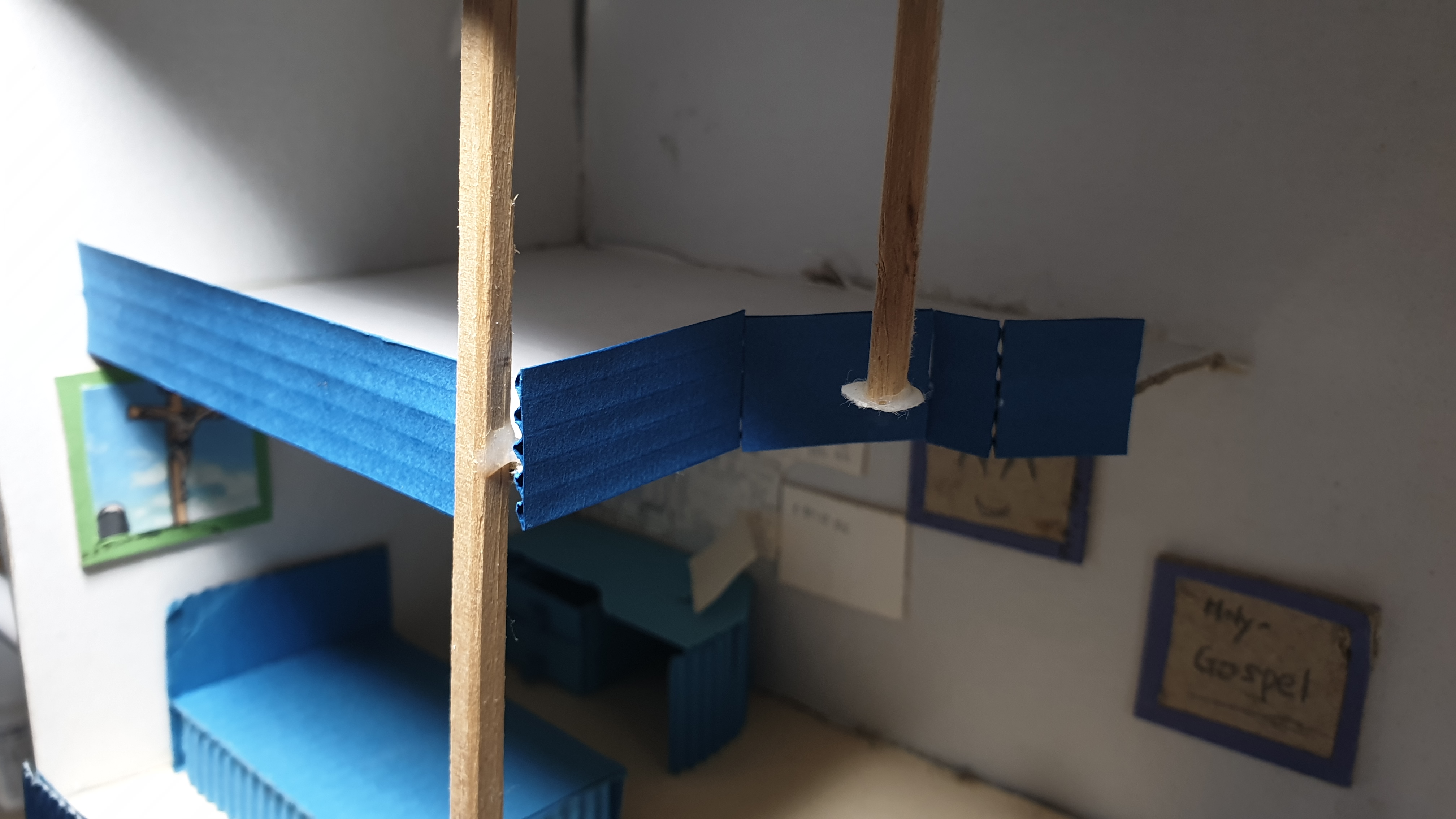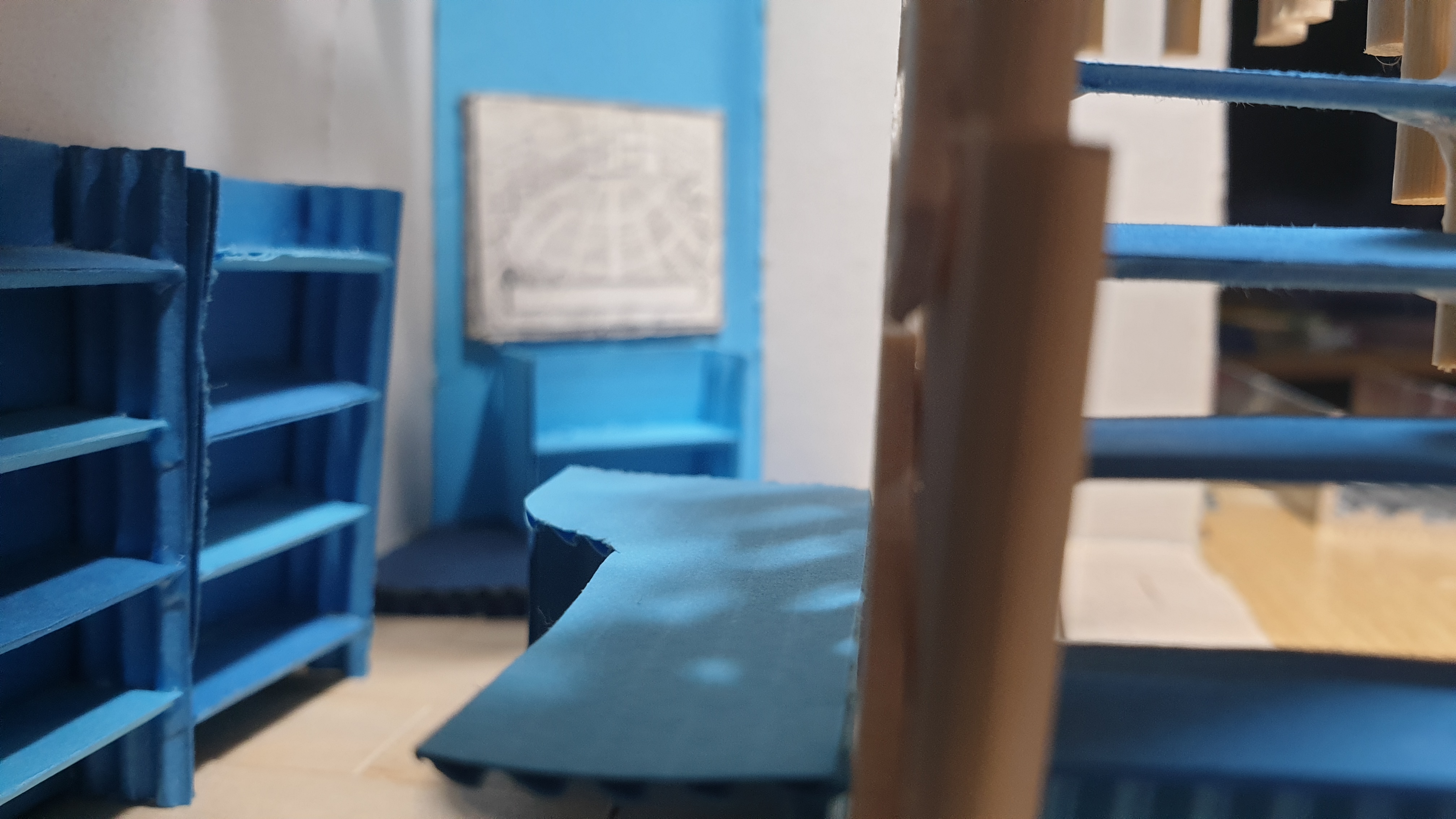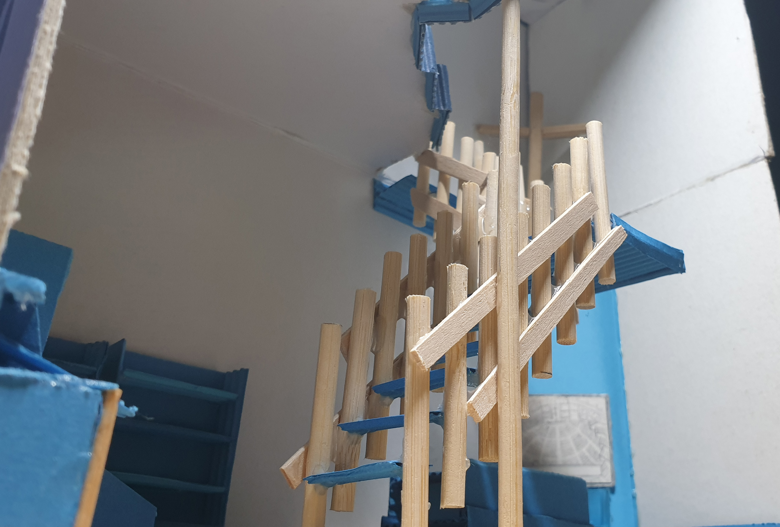 2층에서 1층으로 내려가는 계단도 순간접착제를 이용해 붙여주고 나서 기둥으로 고정해준다. 마를 때까지 주니엘 노래를 들으며 기다리자.