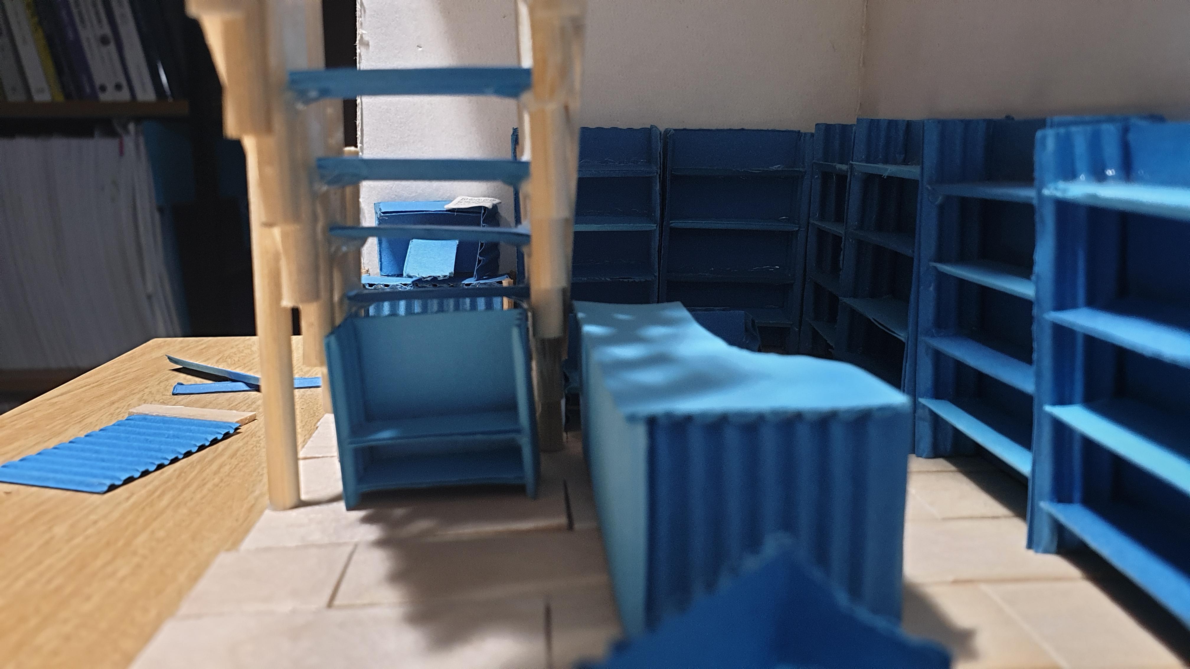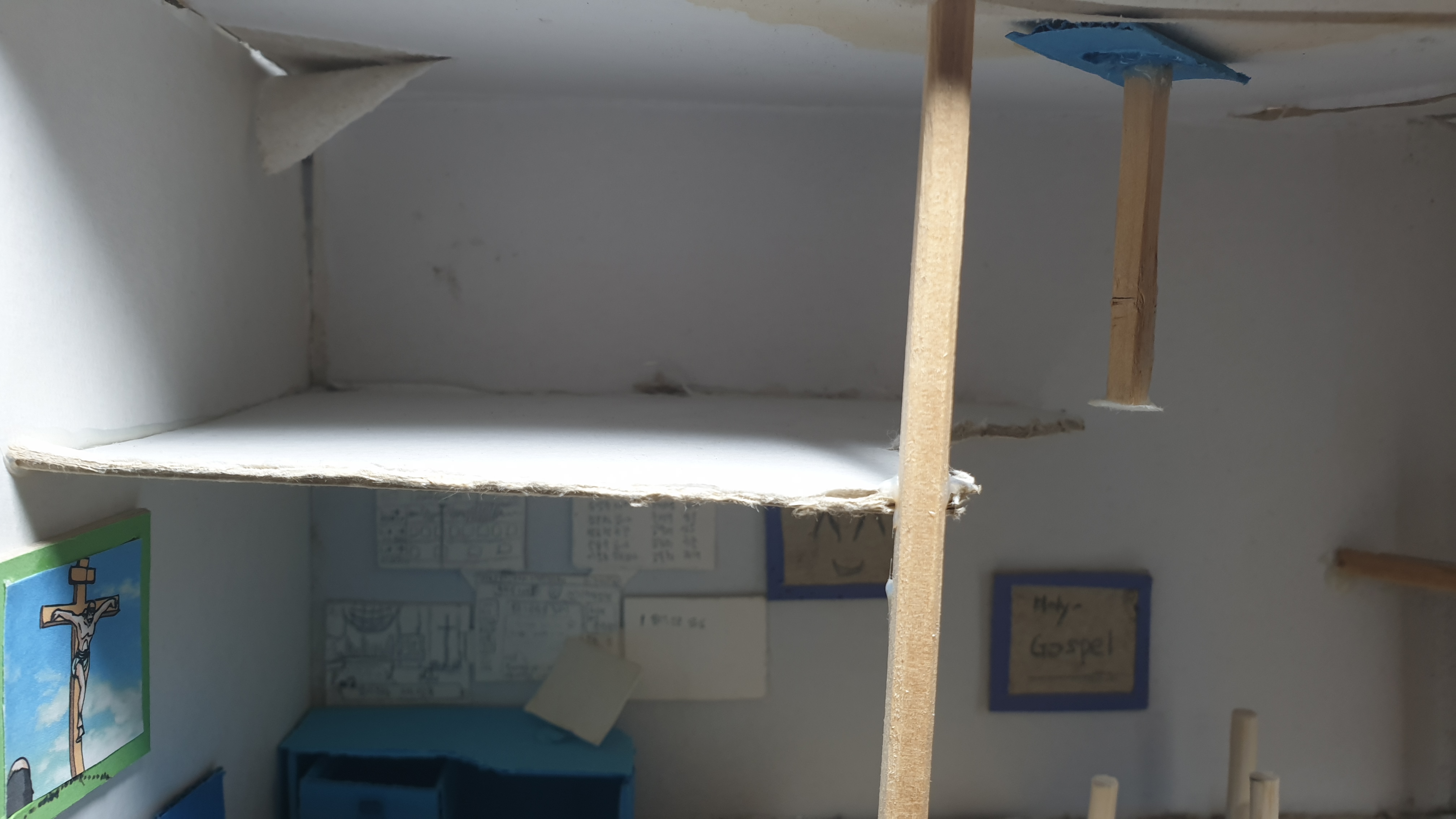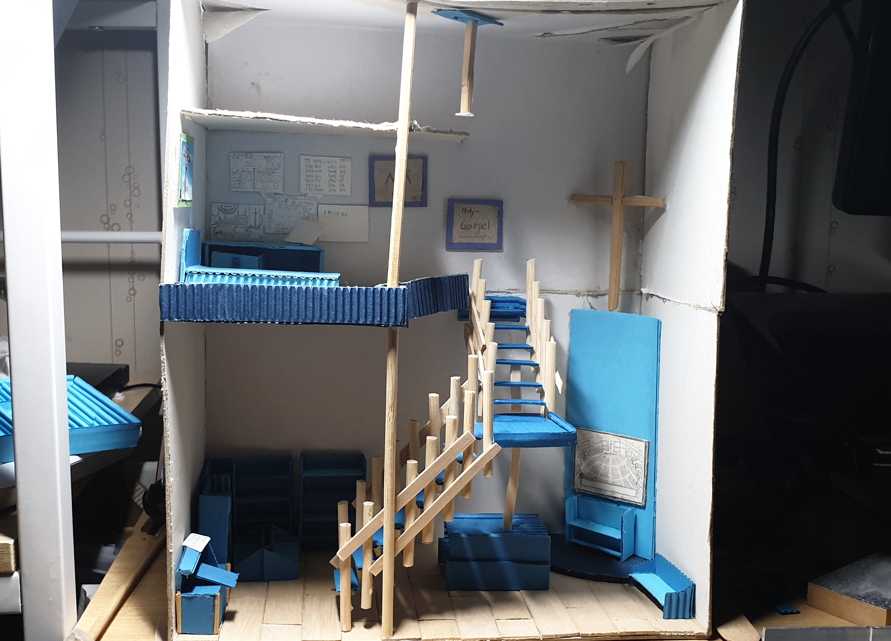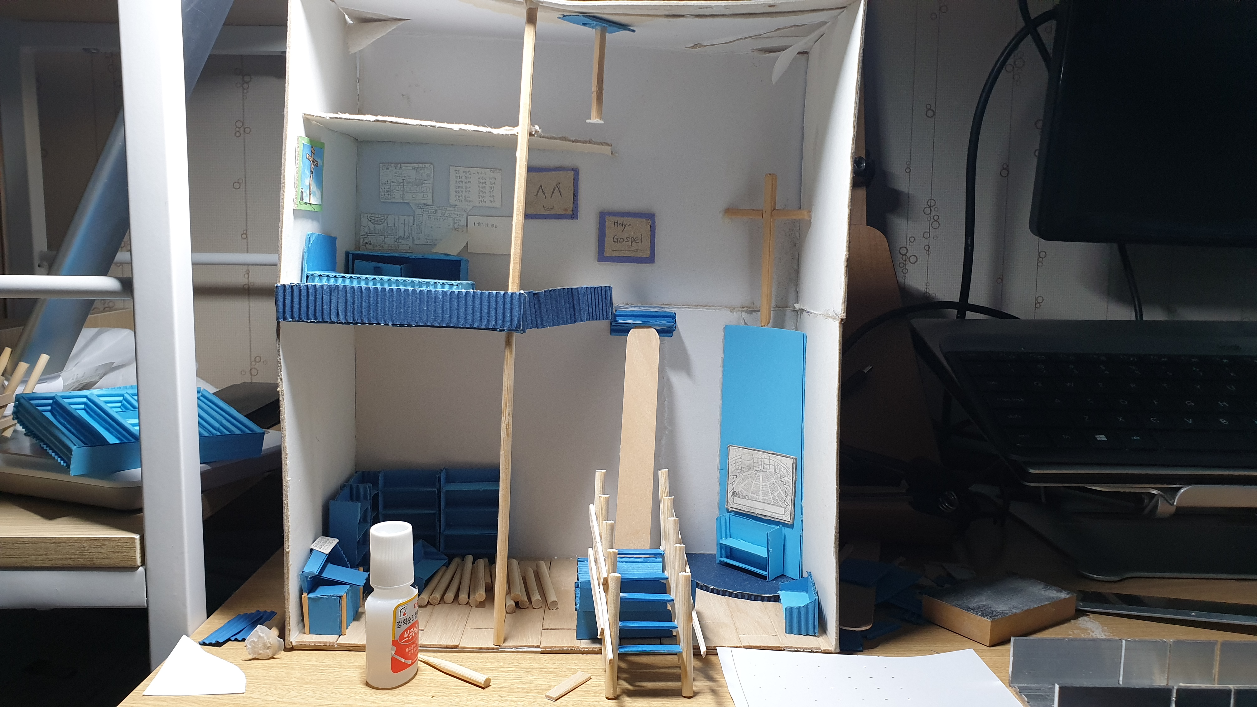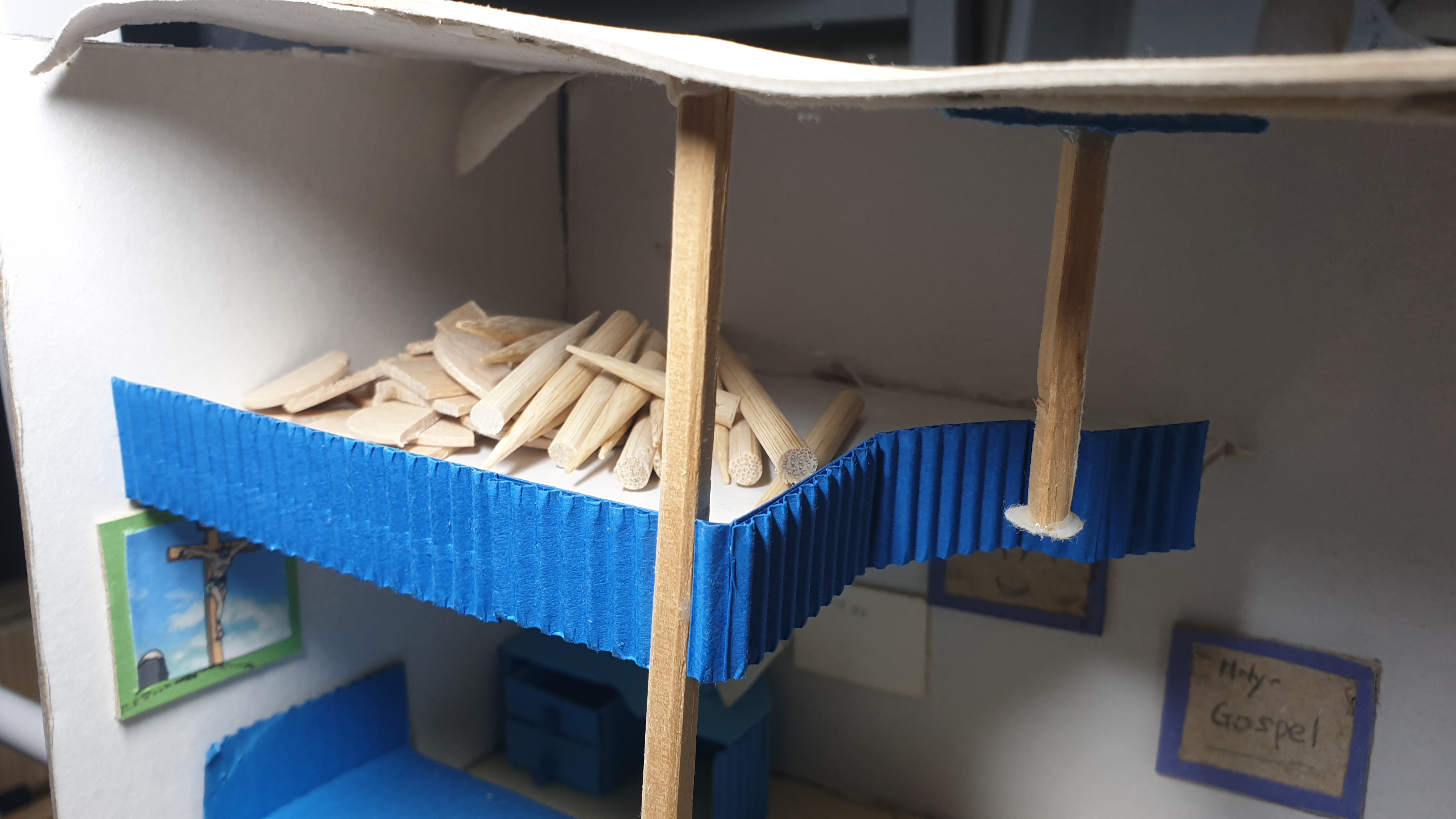 2층에서 1층으로 내려가는 계단도 순간접착제를 이용해 붙여주고 나서 기둥으로 고정해준다. 마를 때까지 주니엘 노래를 들으며 기다리자.