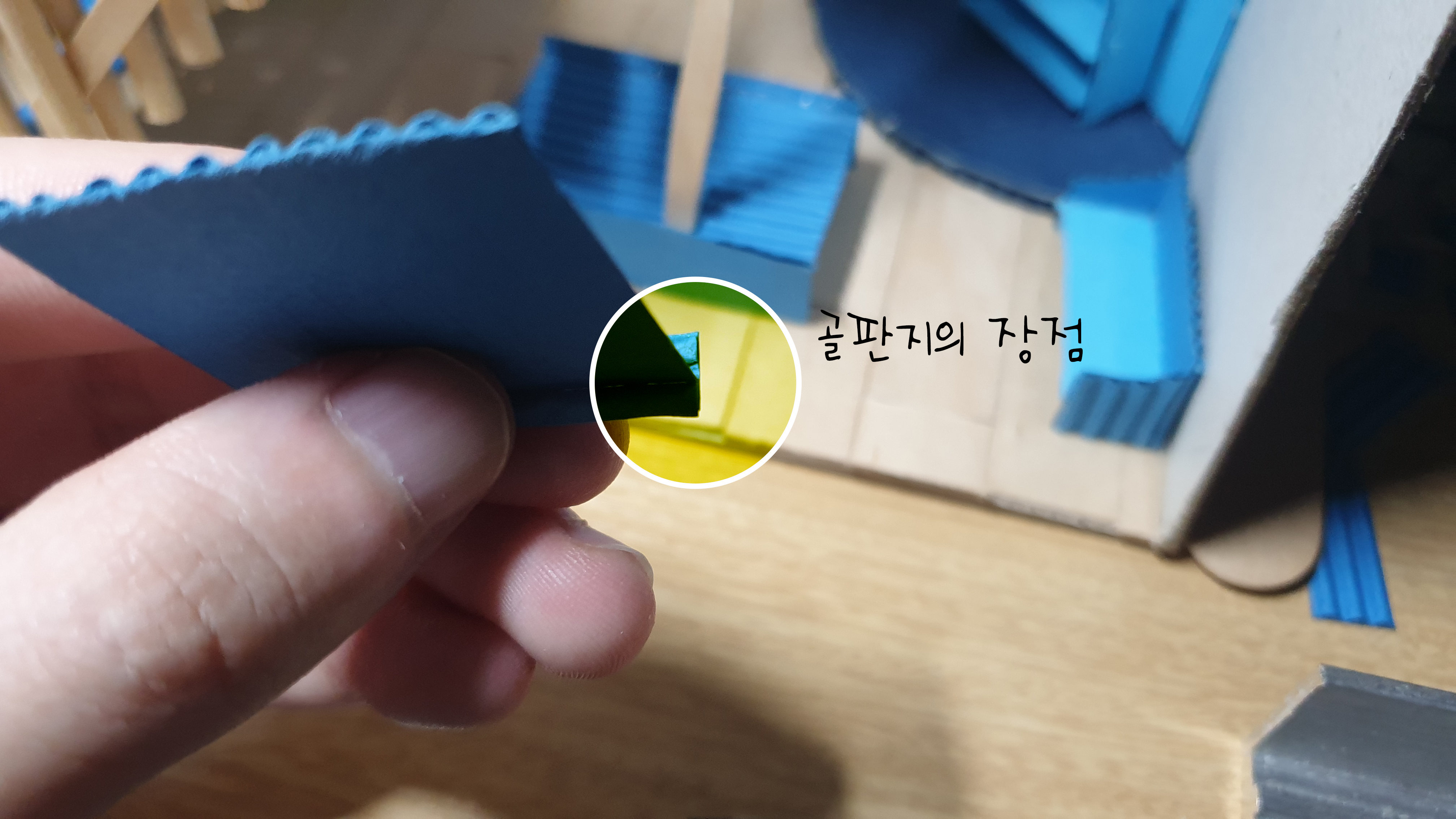 골판지는 골심지 덕분에 건축에 용이하다. 두꺼운 종이만으로는 벽에 홀로 붙이기 어렵기 때문에, 골판지의 골심지를 이용해 벽에 닿는 면적을 넓게 만들면 붙이기가 쉬워진다.