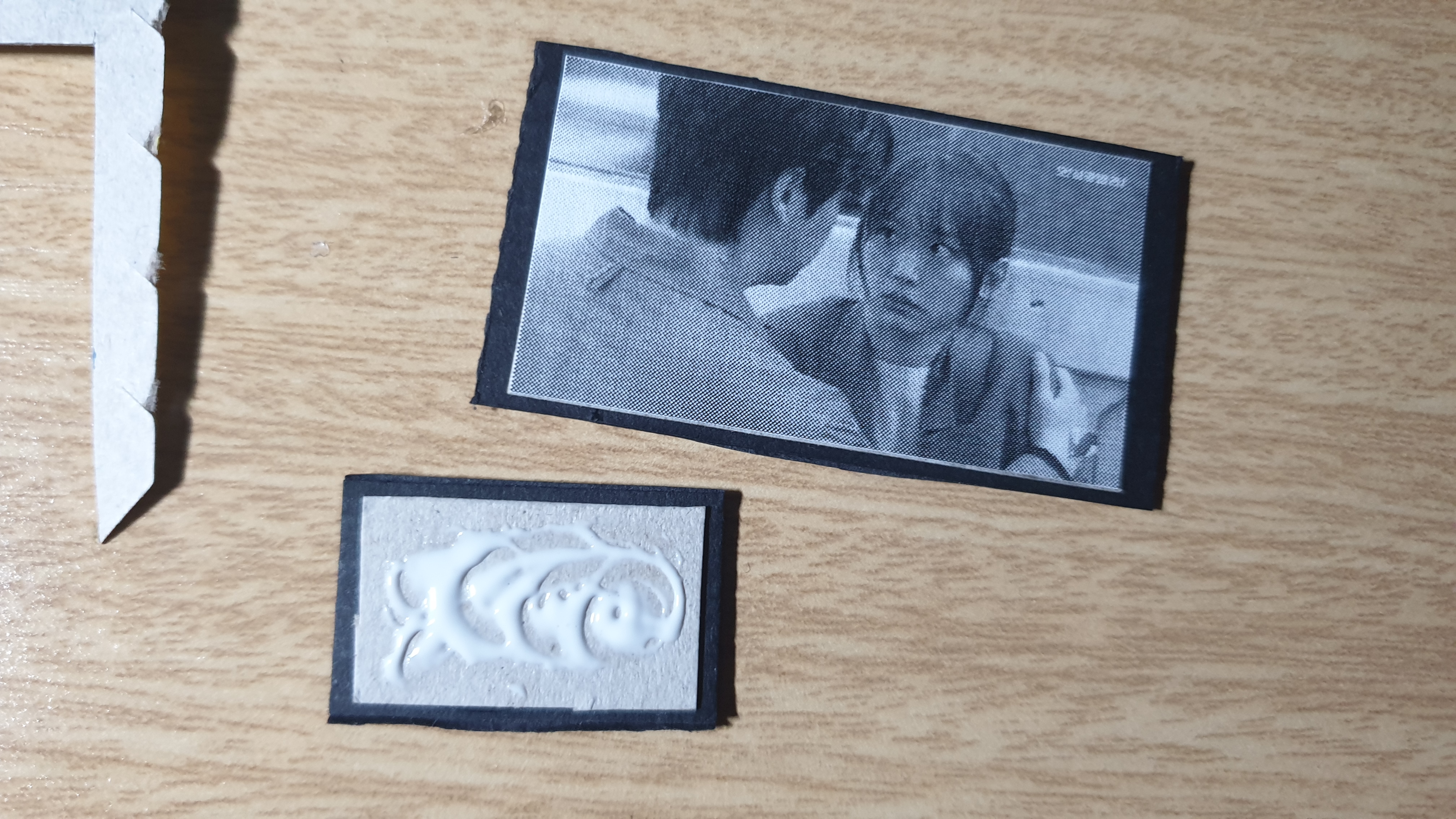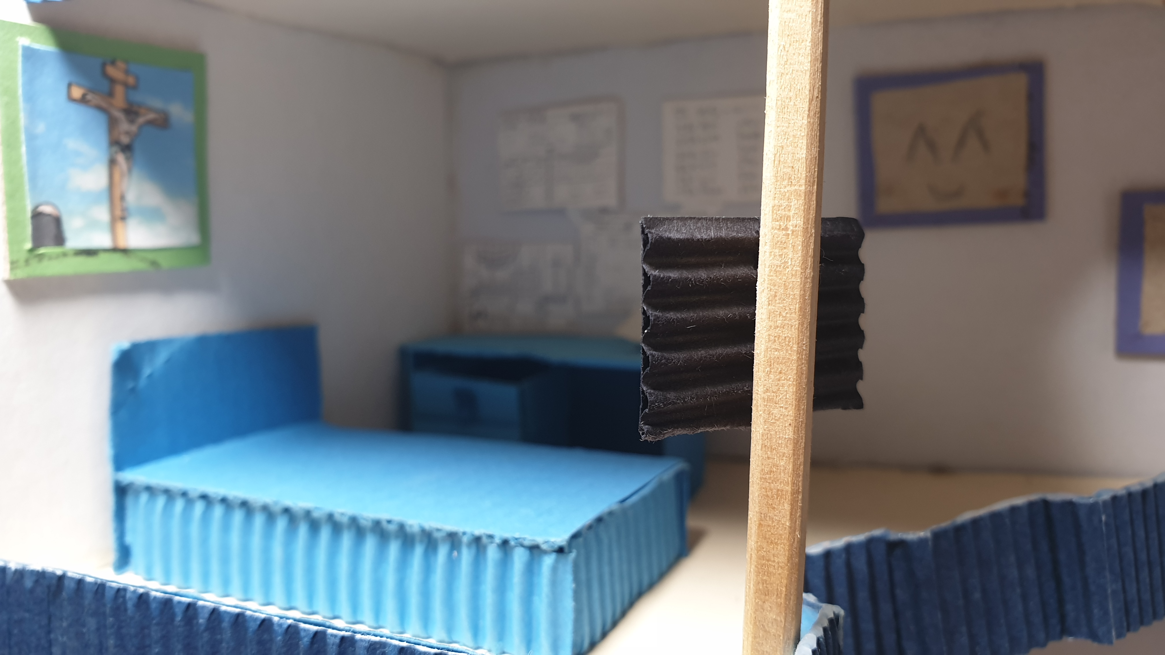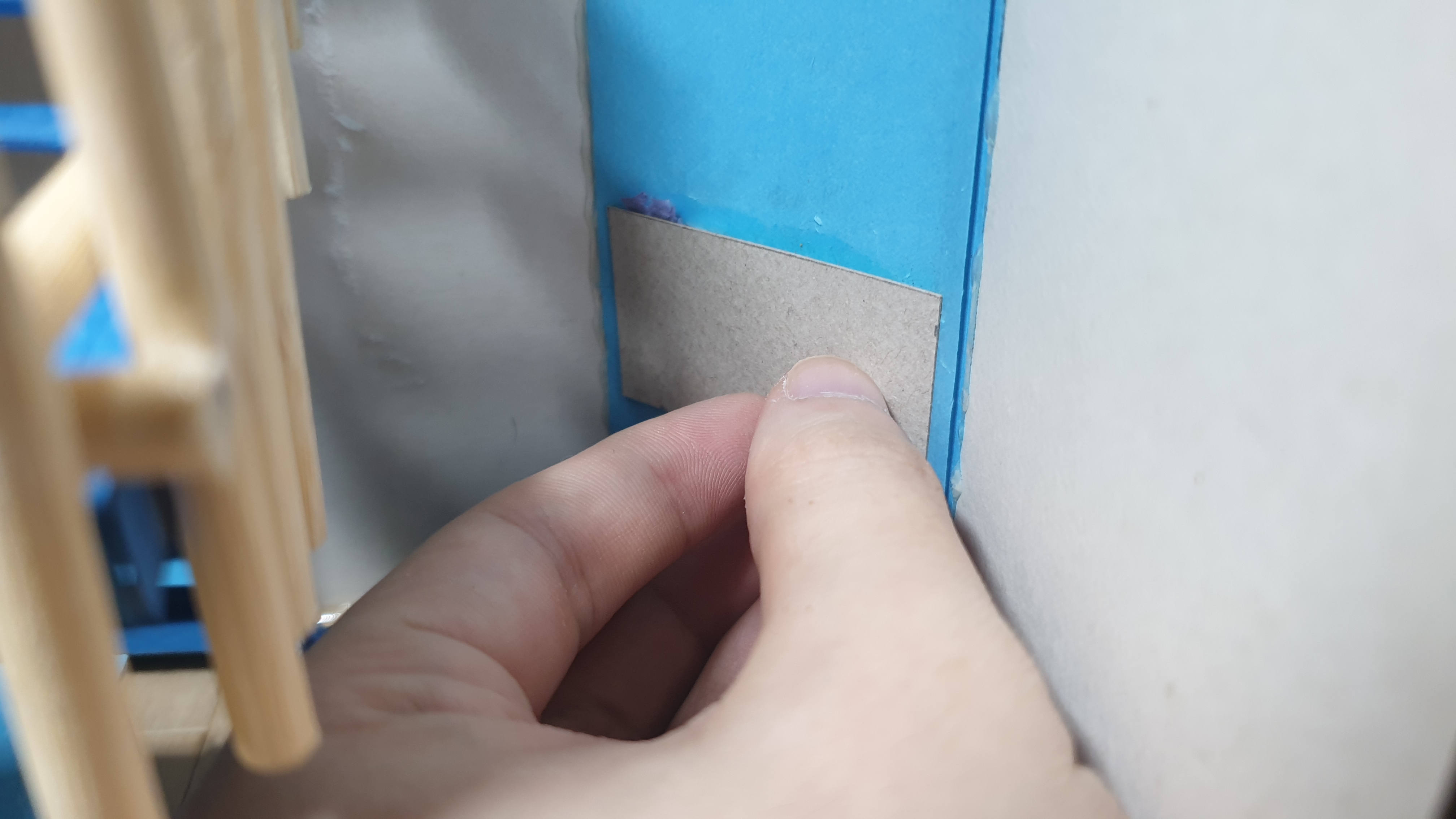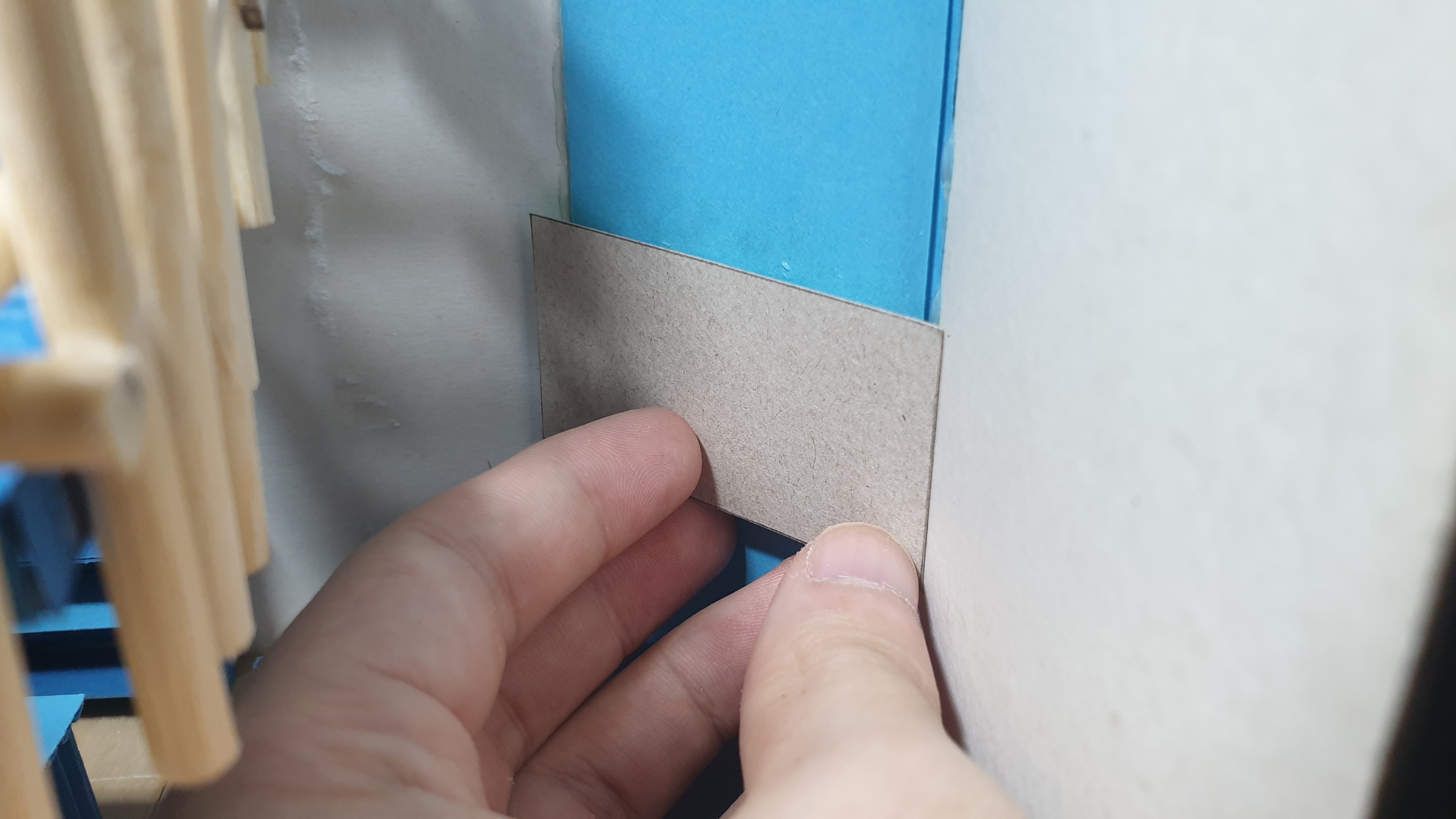 검정색 골판지로 테두리를 만들어준다. 1층 거실에 달 텔레비전 크기는 5.0×2.8cm.