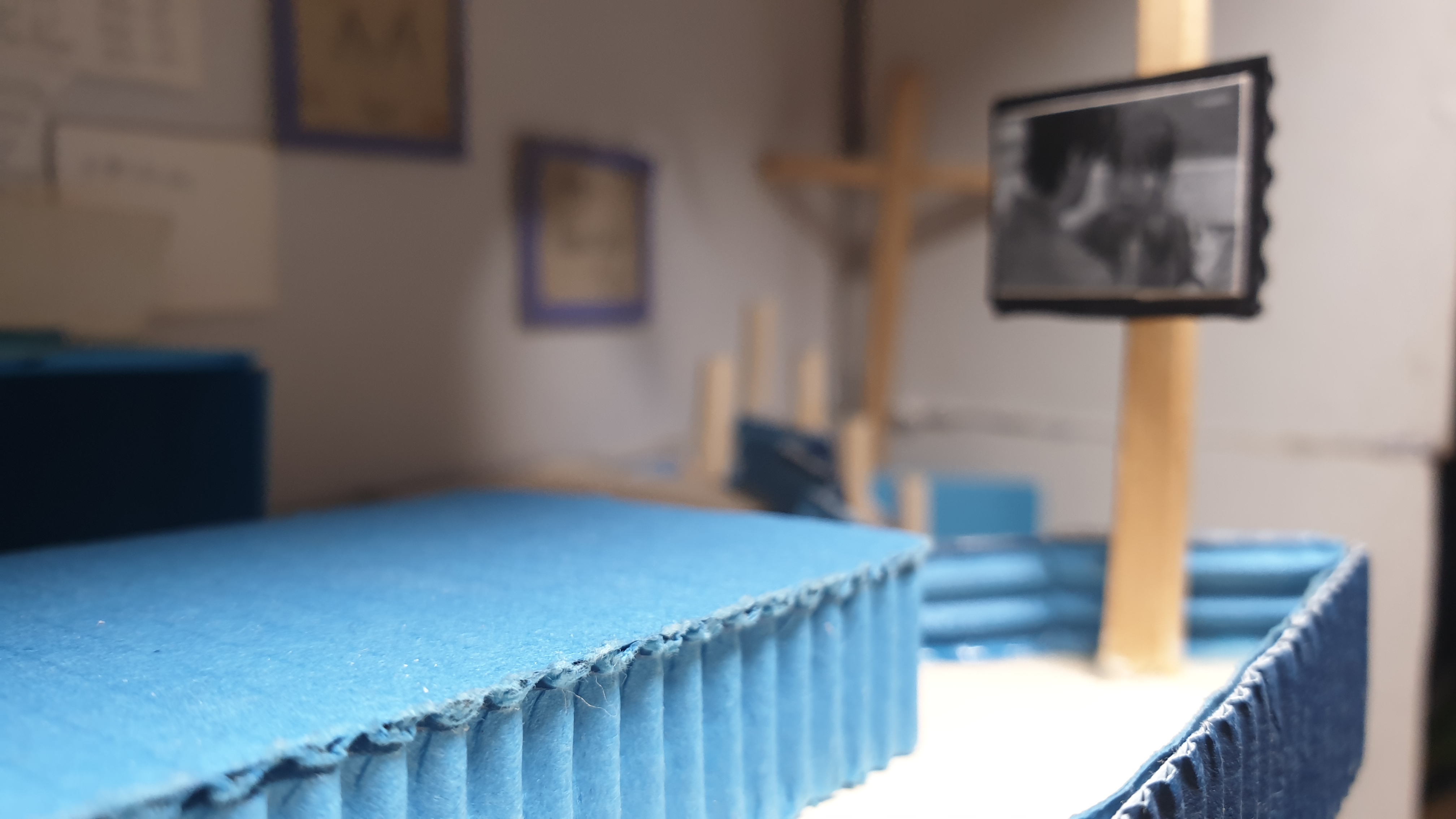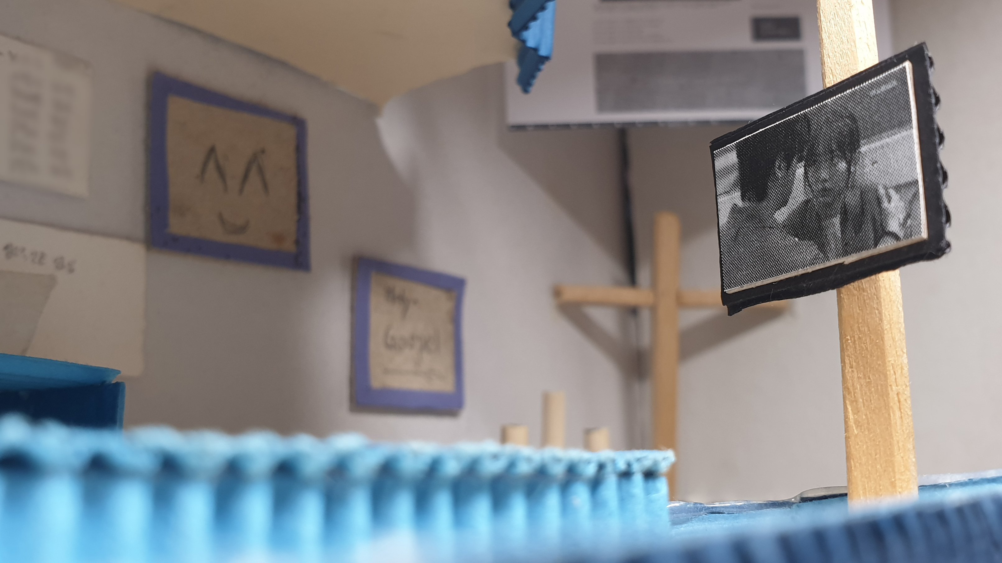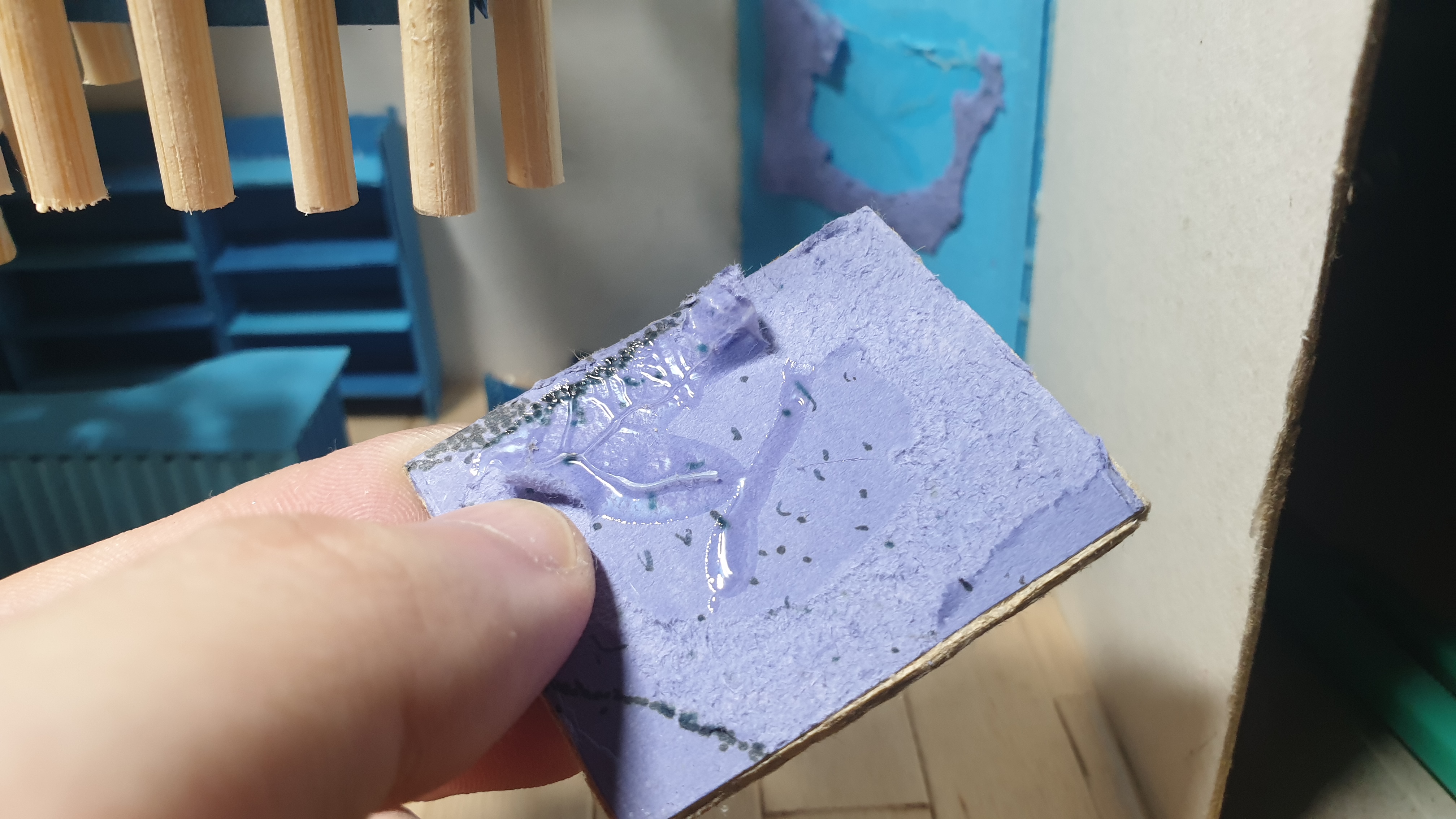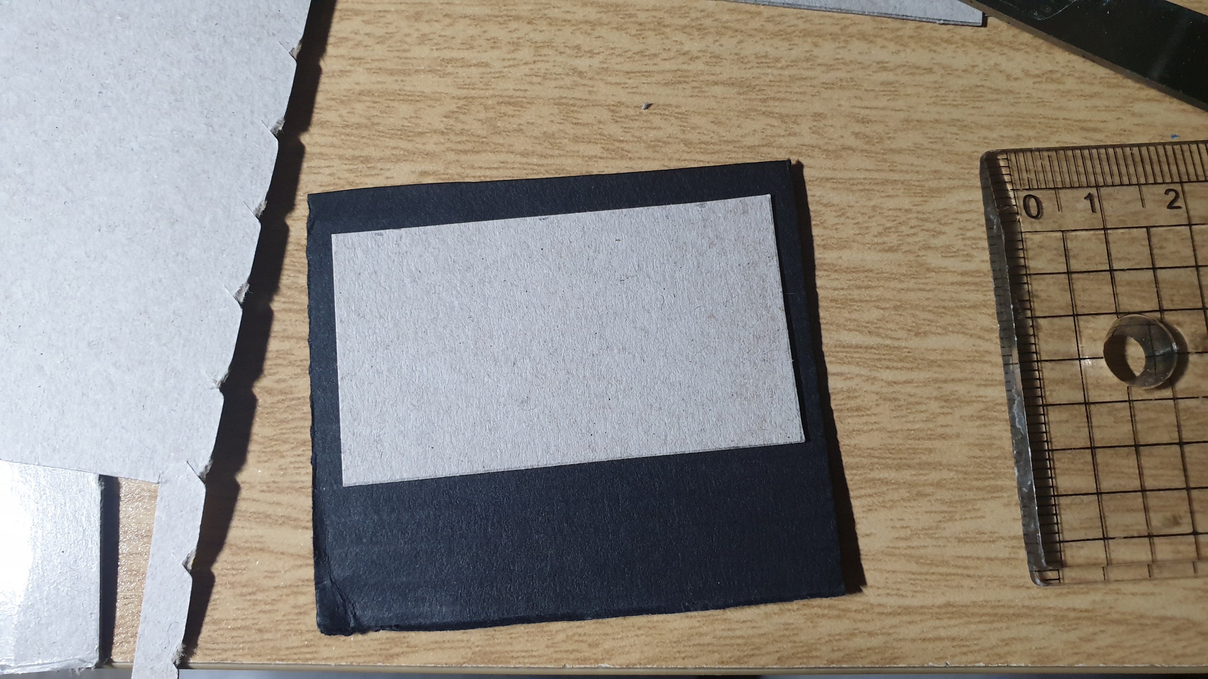 검정색 골판지로 테두리를 만들어준다. 1층 거실에 달 텔레비전 크기는 5.0×2.8cm.