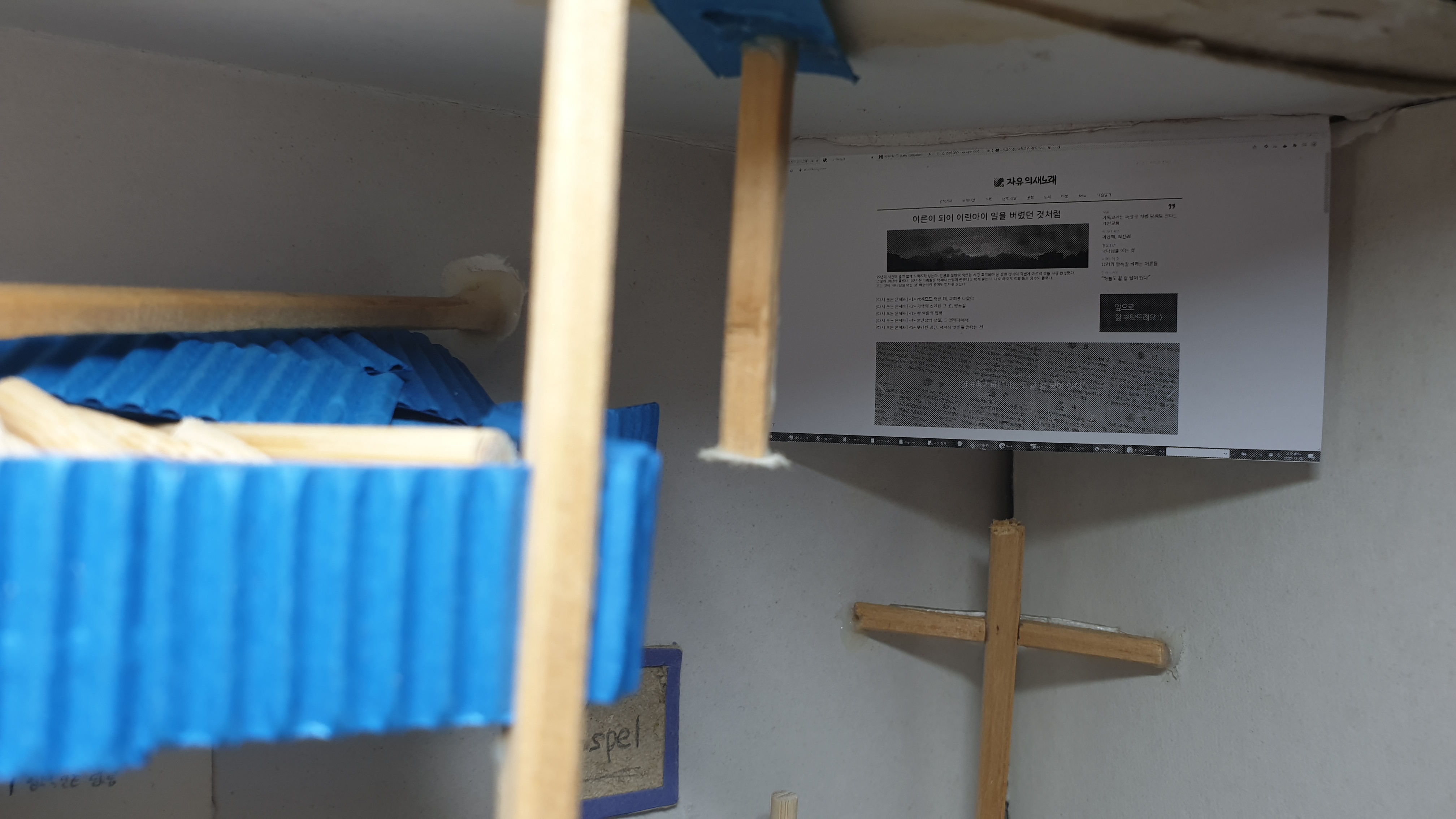 슬슬 텔레비전도 교체해야 할 순서다. 이 작품을 만들고 1년 후, 첫 인쇄술을 접했다. 중학생 3년 동안 빽빽하게 기록해 오던 행위 예술(?)의 끝도 프린트에서 시작했다. 화면 속 장면은 여의도 순복음교회 주일예배.