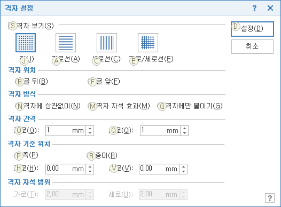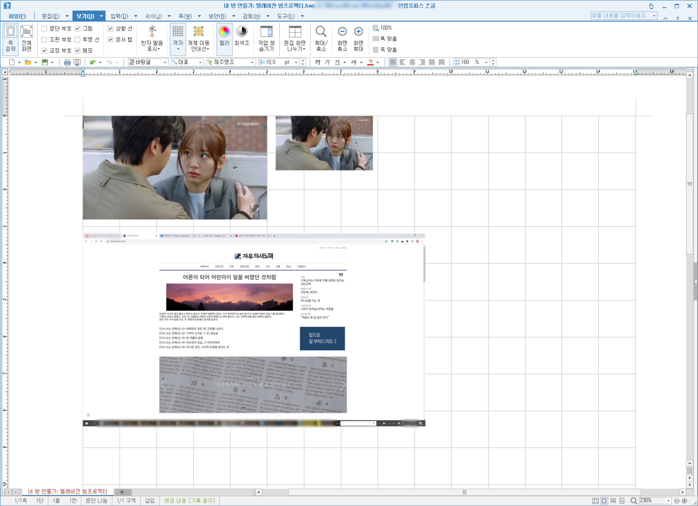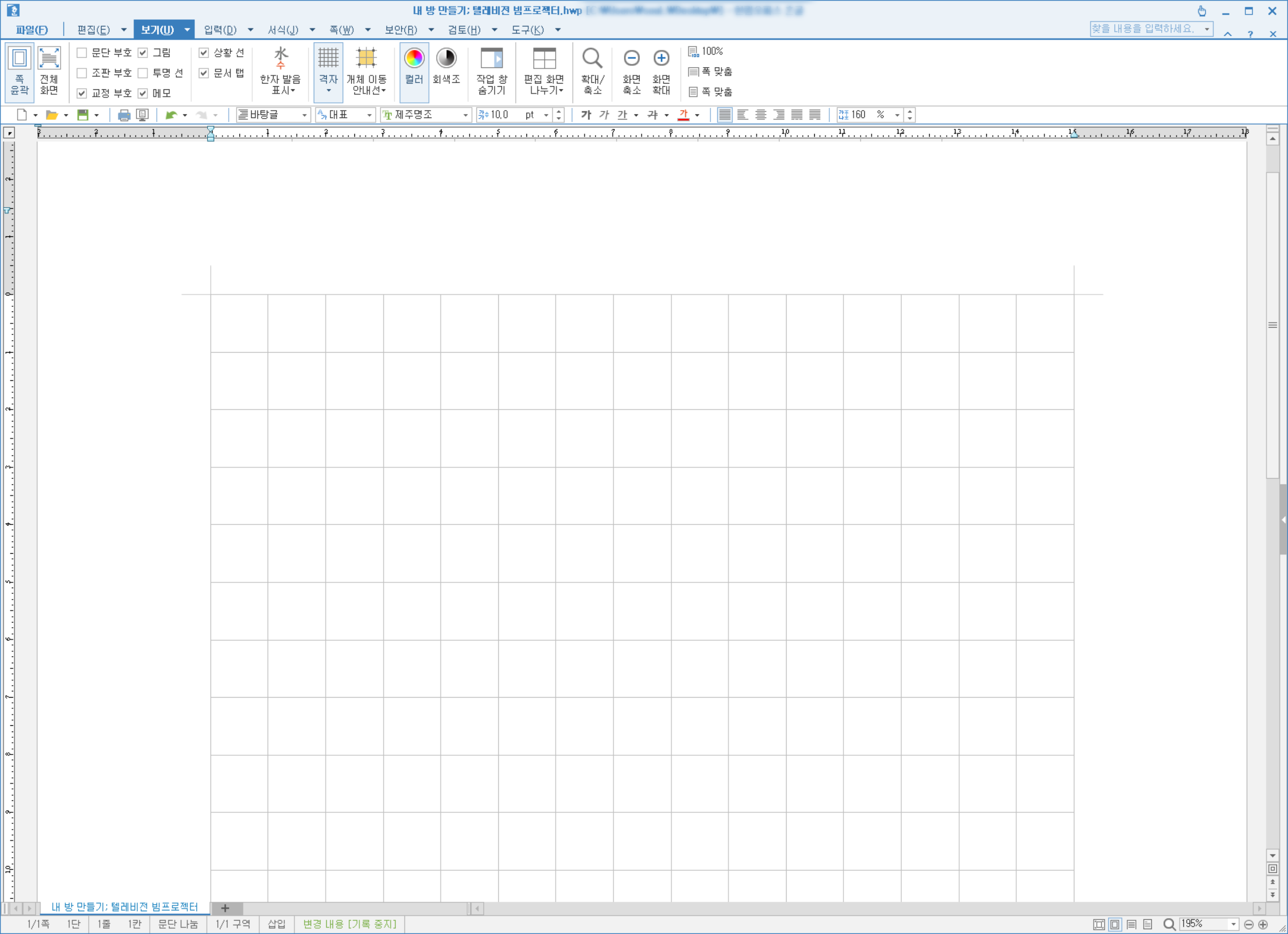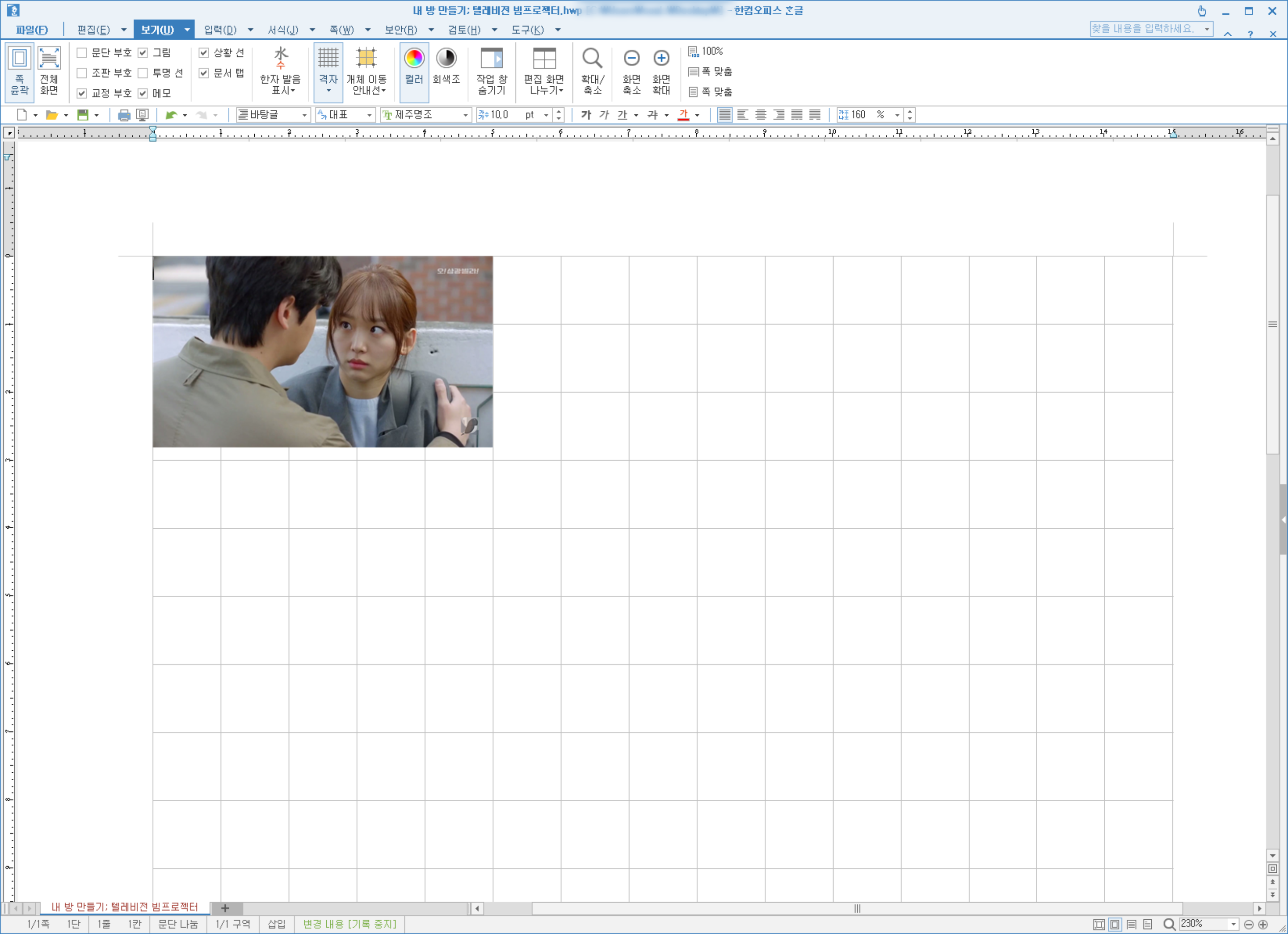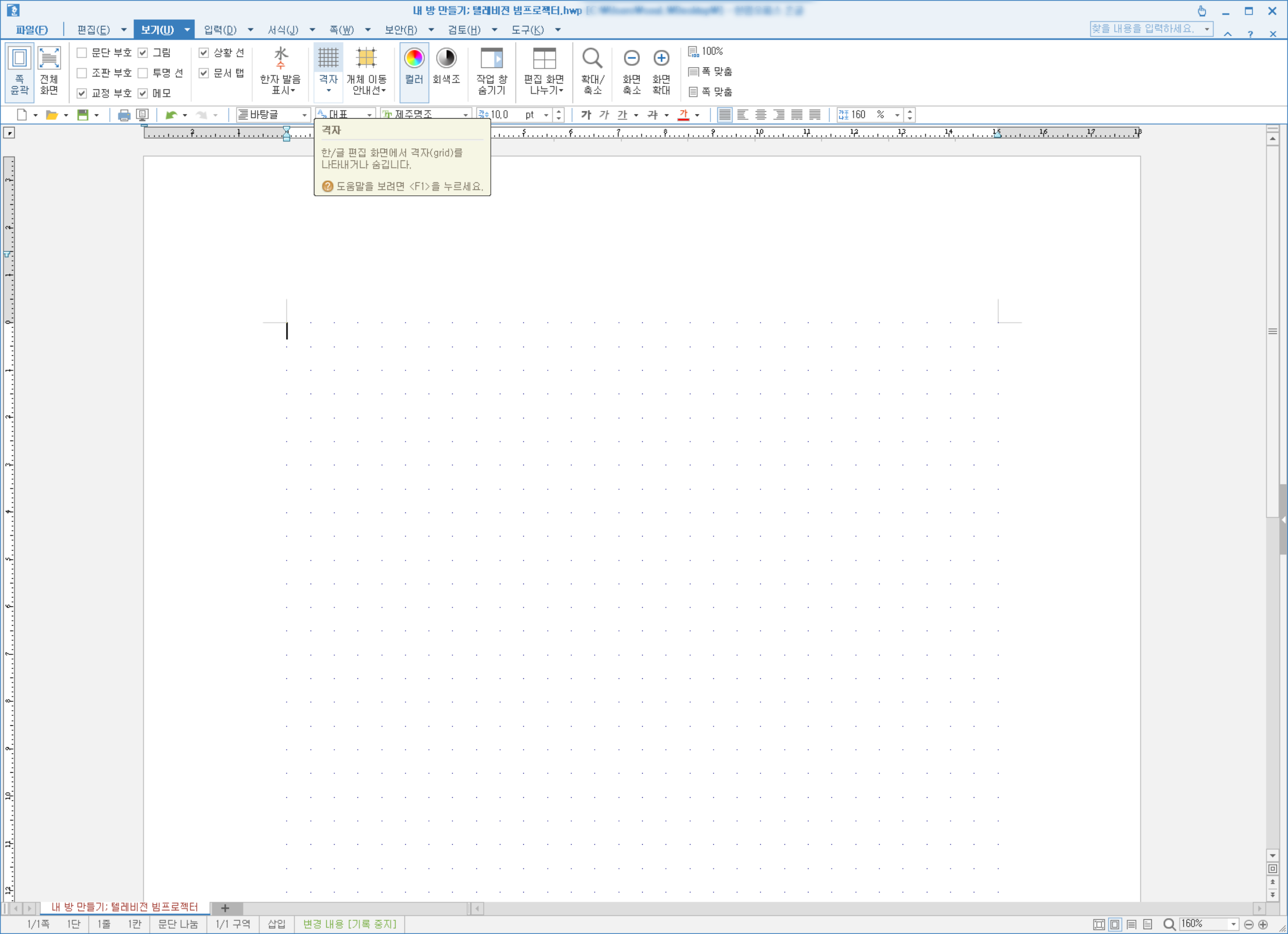 자, 여기서 아래아 한글이 필요하다. 아래아 한글에는 ‘격자’ 기능이 유용하다. 실제 프린트 후 길이를 미리 알려주는 기능이기 때문이다.