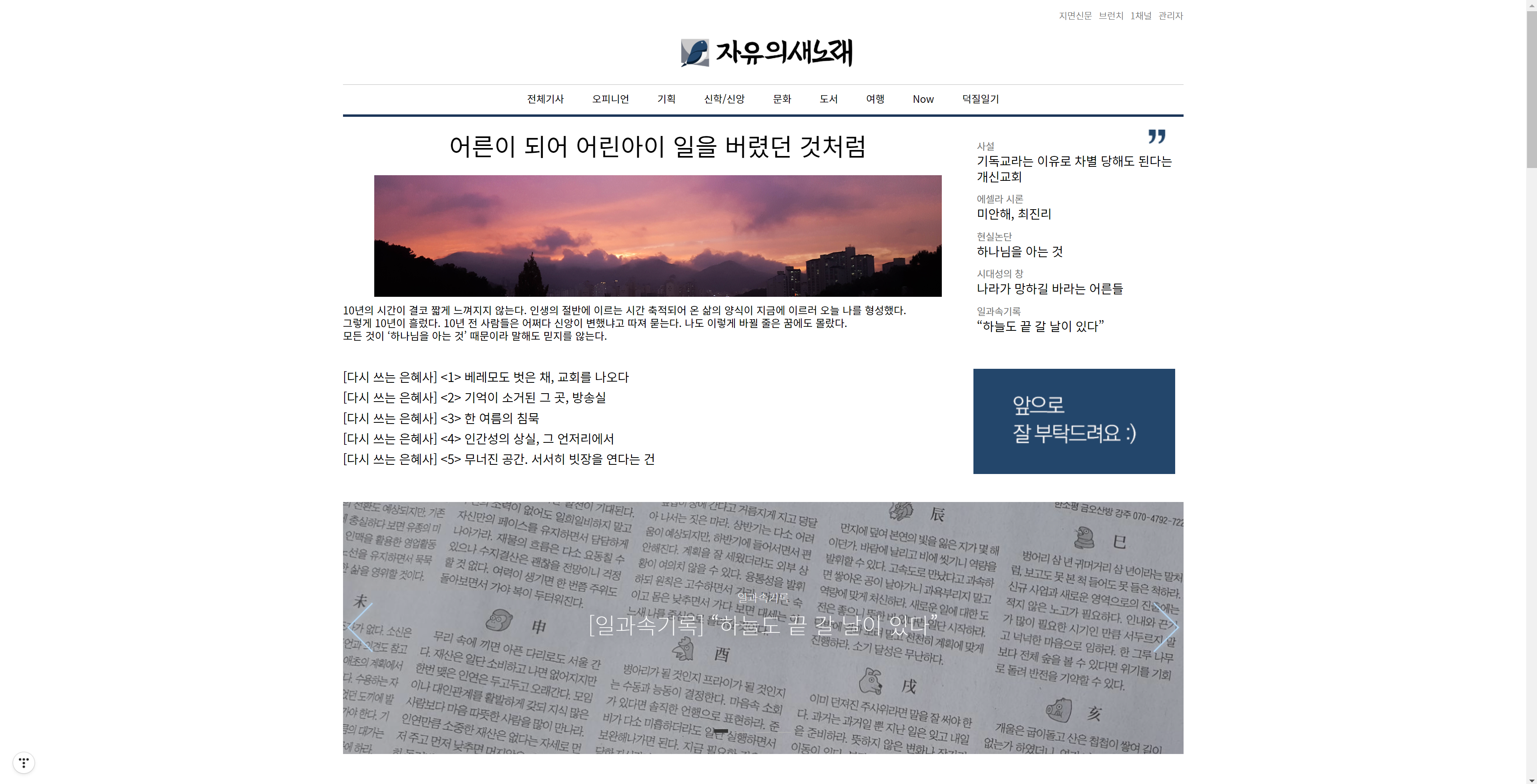 본지 디지털판인 뉴송어스닷컴 메인 페이지도 캡처.