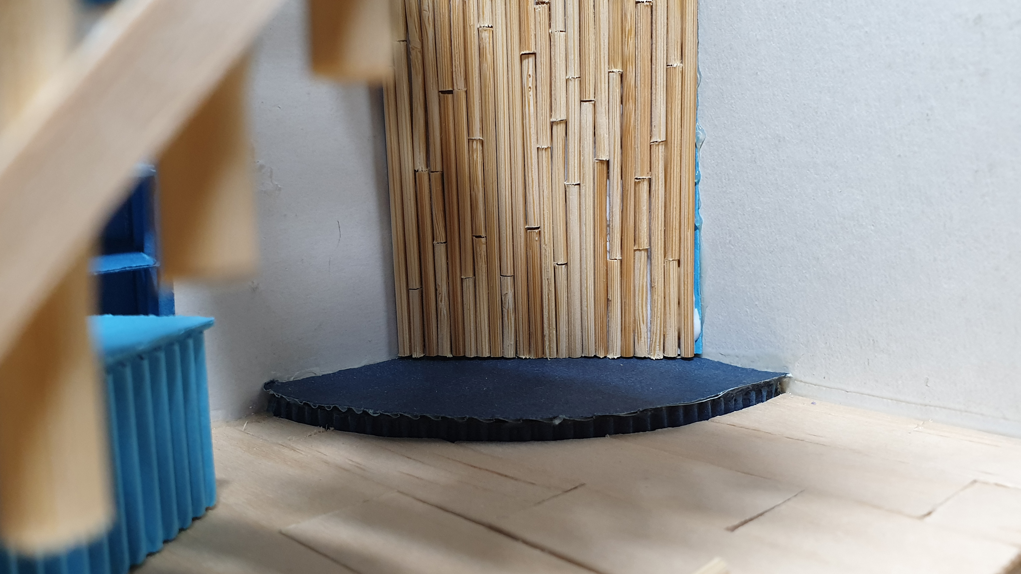 옆면 하늘색 골판지가 보이는 부분도 가려주기 위해 손 써야 한다.