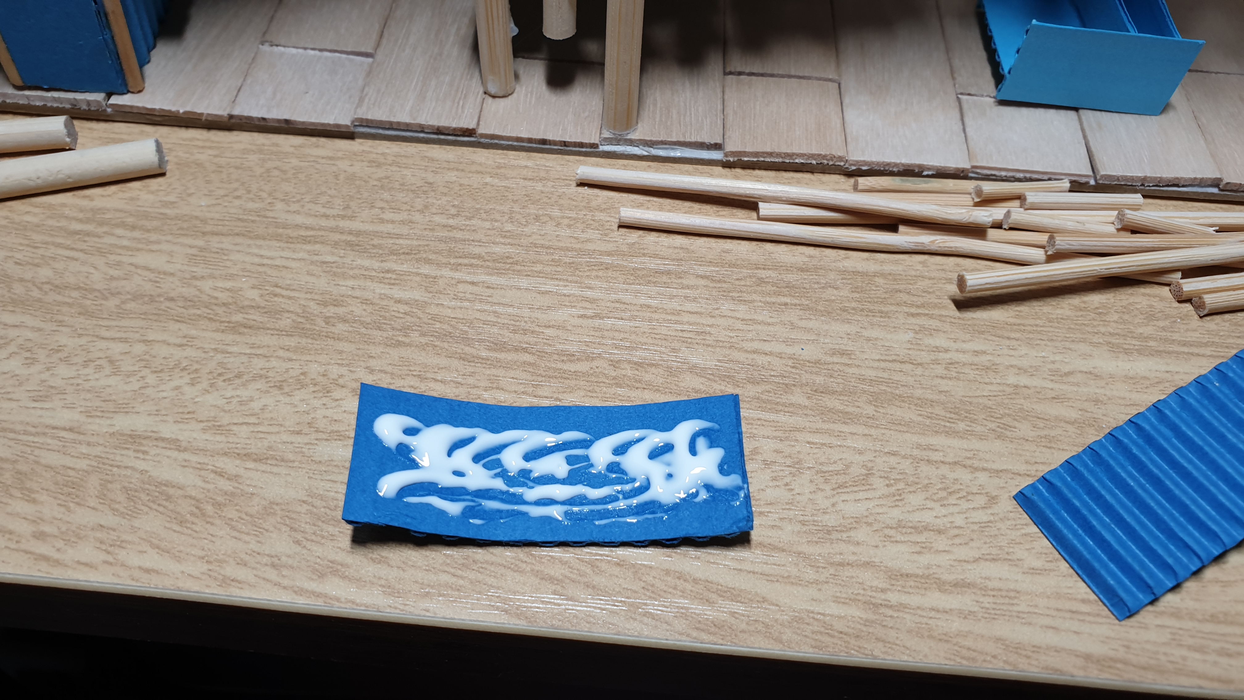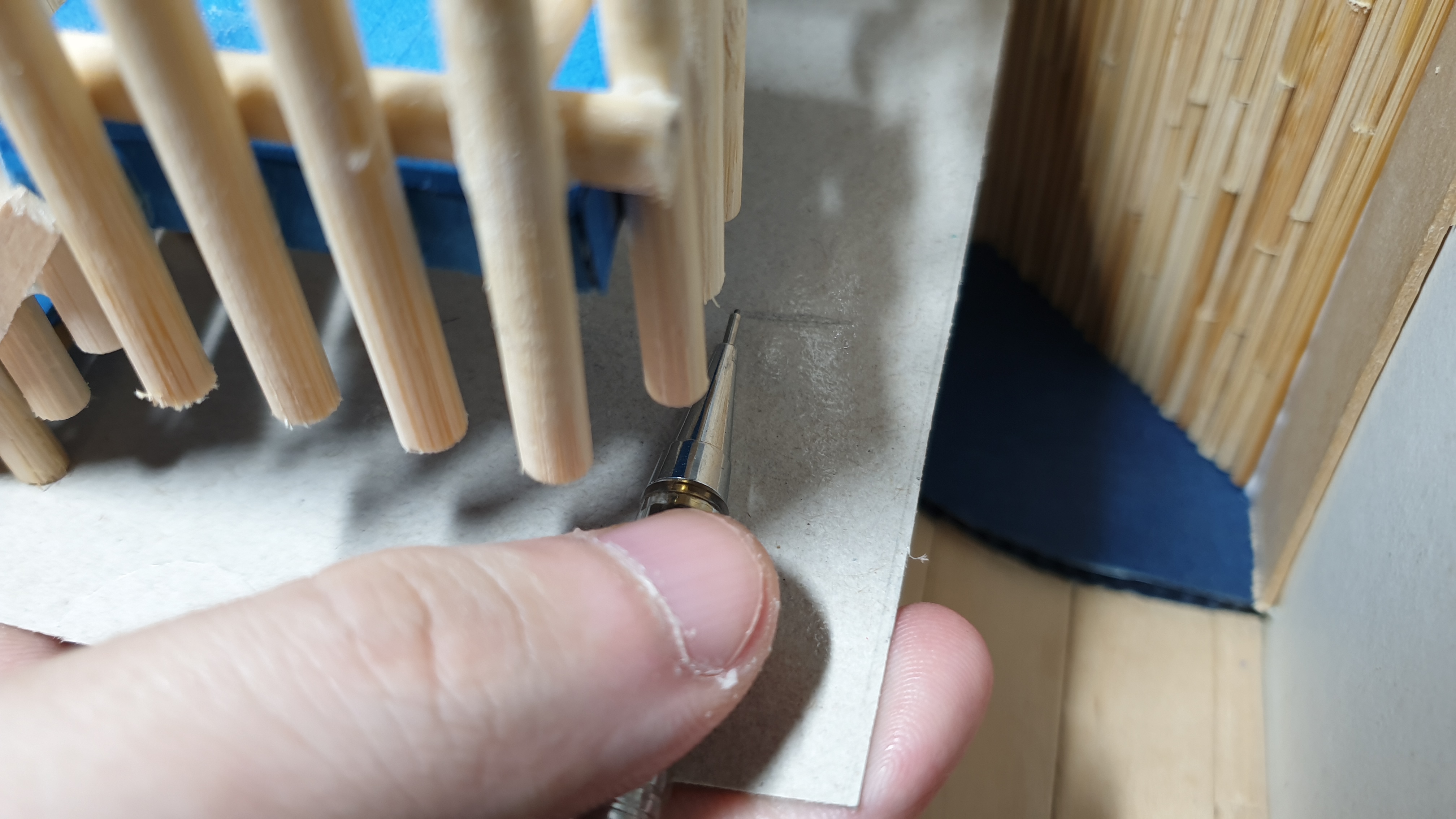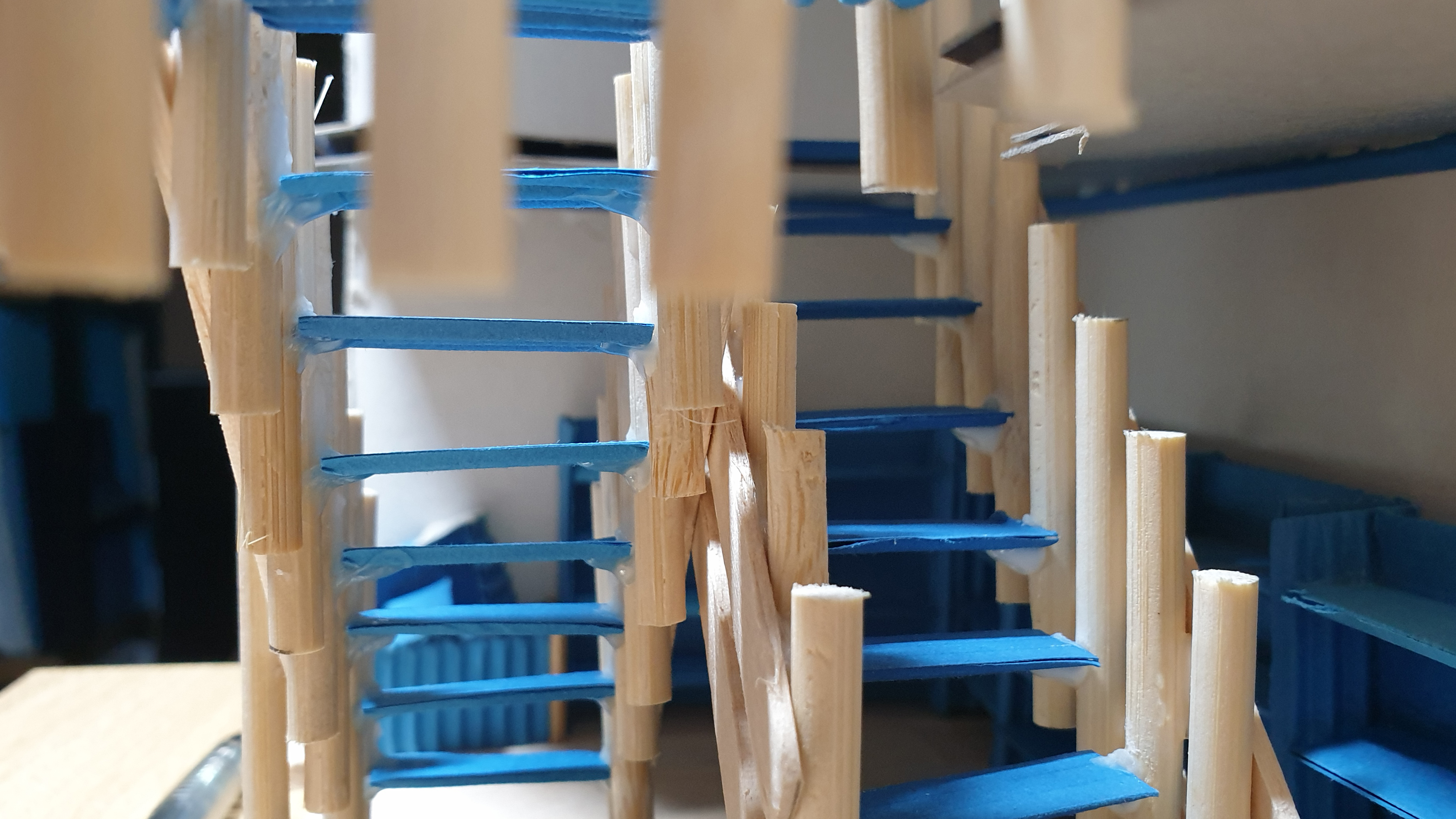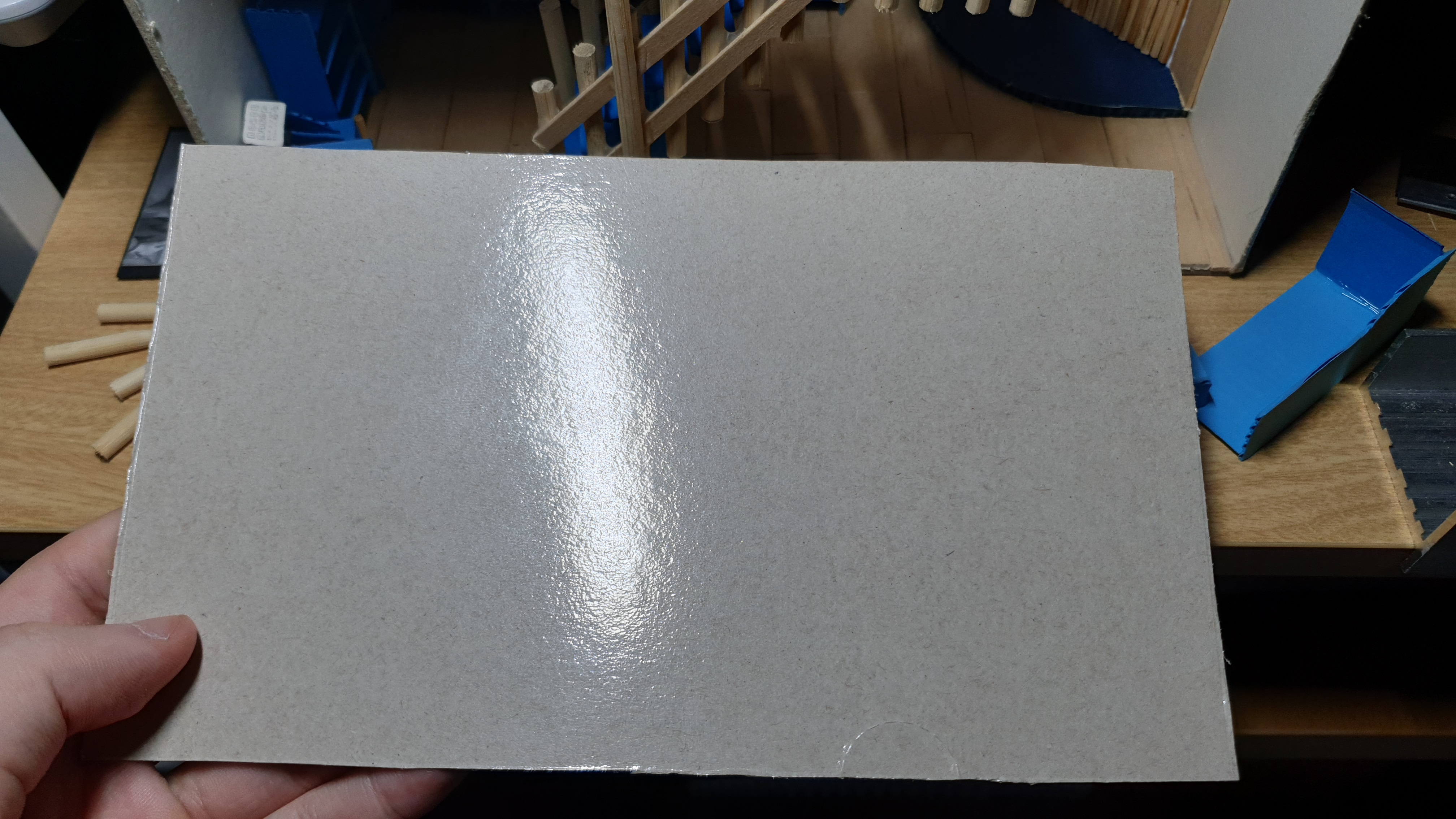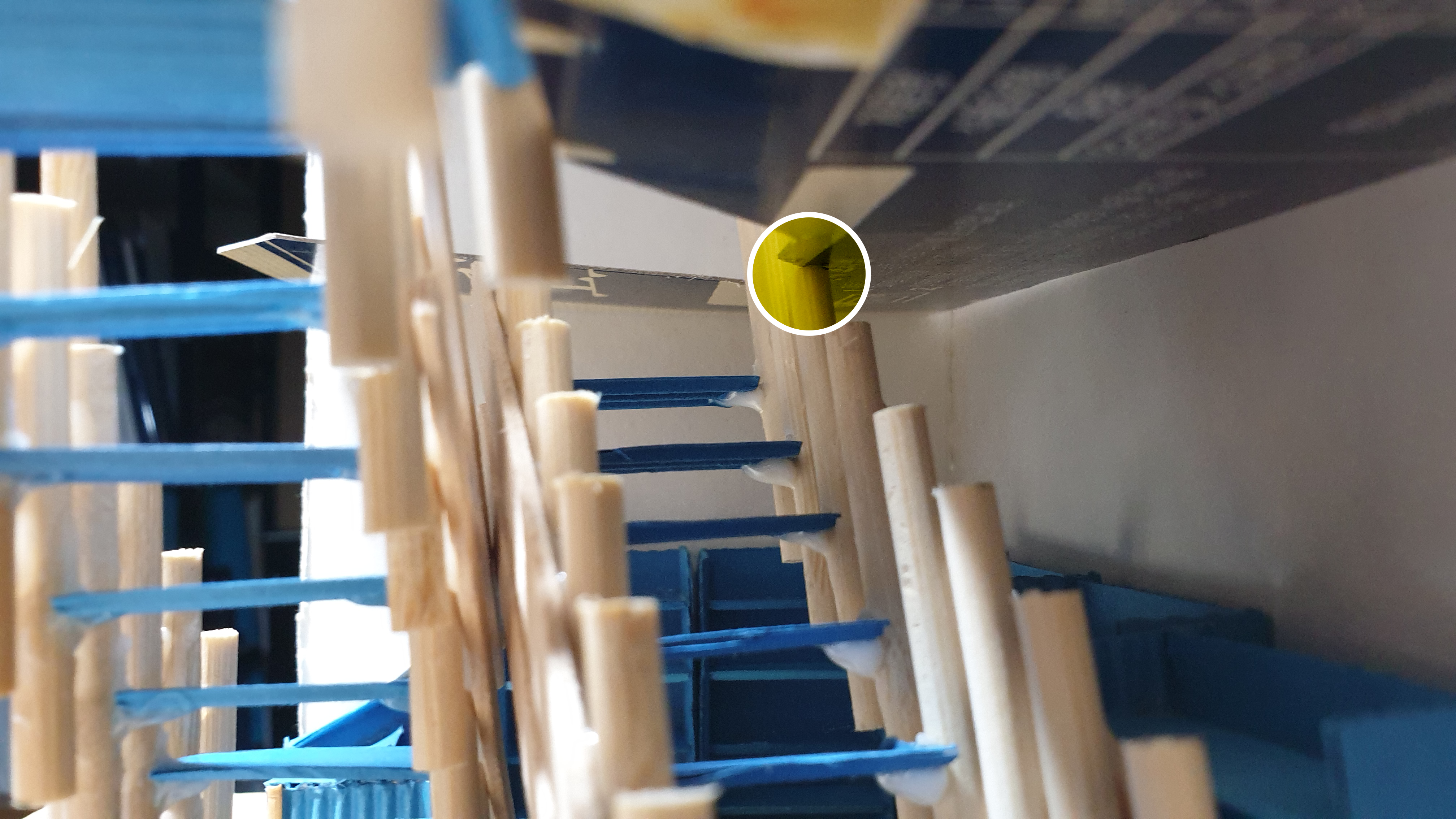 이렇듯 나무막대 난간과 집어넣은 냉동피자 상자가 닿는 방식으로 증축한 2층을 부착할 생각이다.
