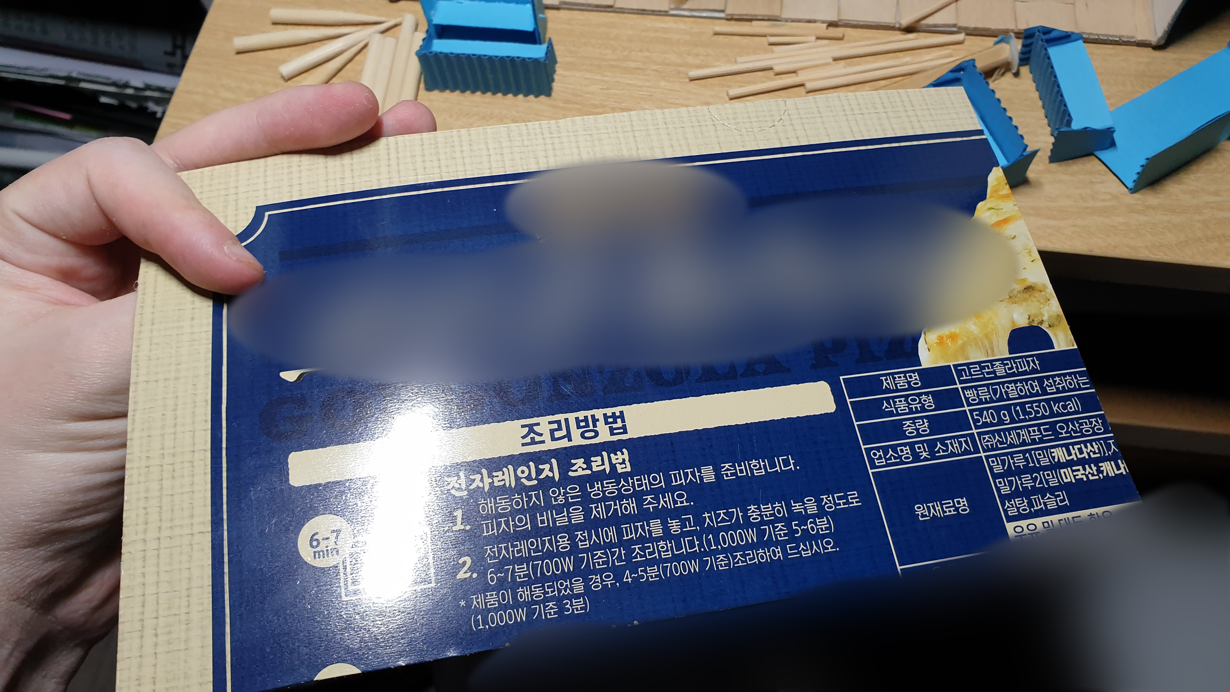 아래에서 위를 바라봤을 때, 냉동피자 상표가 보이면 안 되니까 똑같은 모양의 바닥을 잘라주어야 한다. 안정적 두께를 위해서도 같은 바닥을 만들어야 한다.