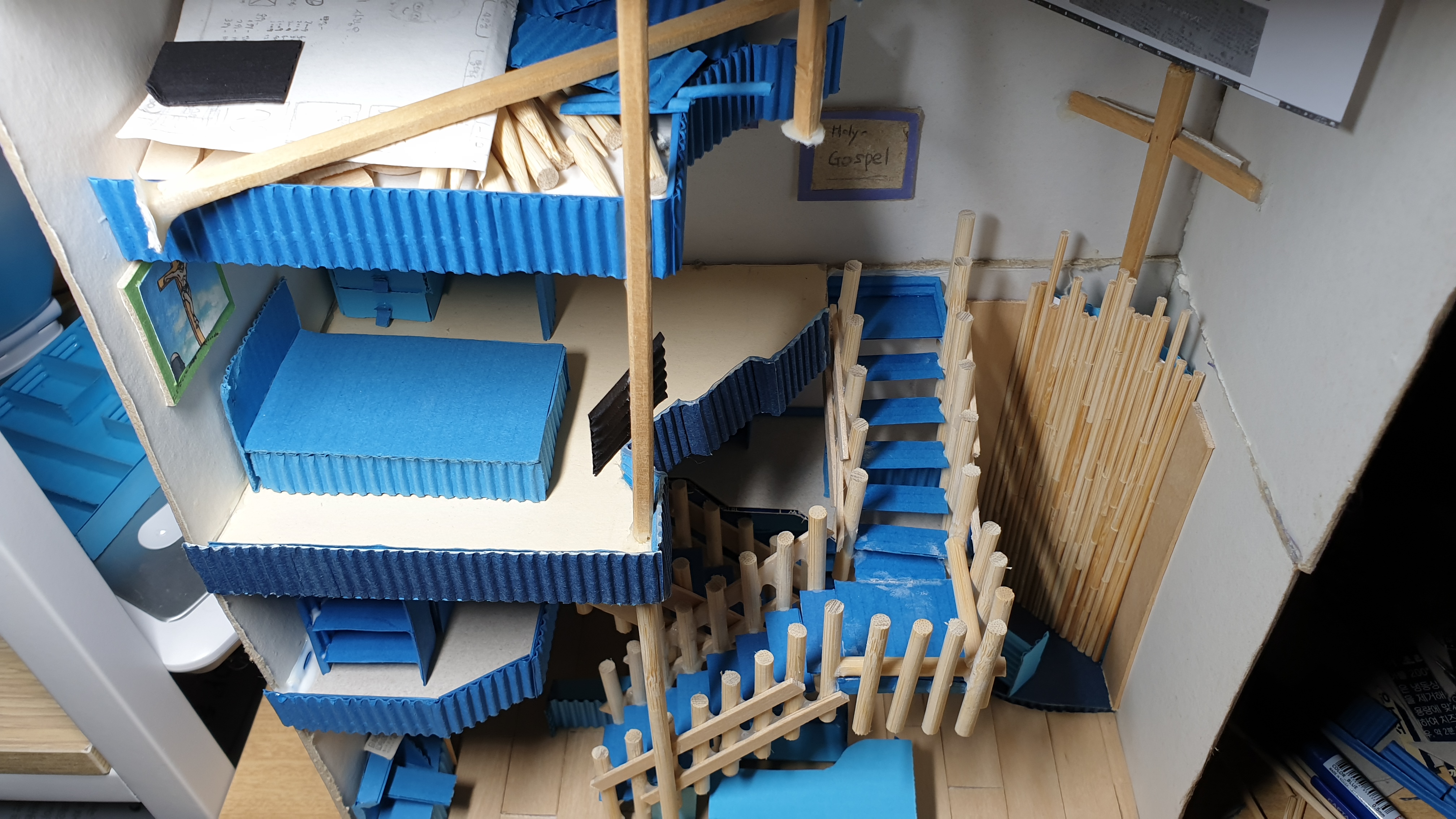 근데 생각보다 만들기가 쉽지 않았다. 적당한 위치에 책을 받쳐줄 발판 길이가 적절하지 않으면 금세 무게에 못 이겨 내려가기 때문이다.