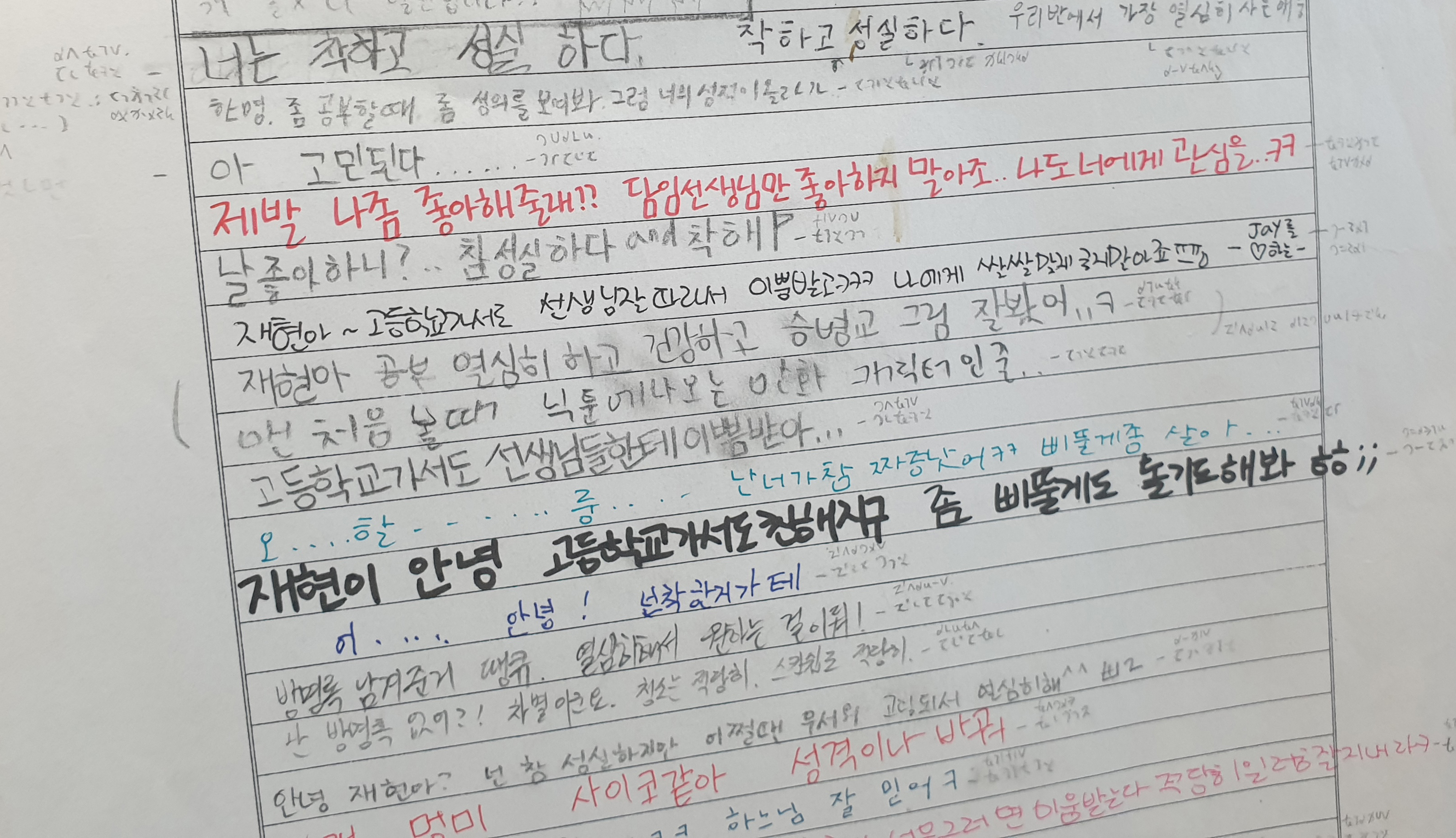 궁금했다. 어디서부터 계획에 균열이 났는지. 누가 비밀을 유출한 건지. 한 페이지 빼곡 적힌 내 이름과 행동거지들이 원인과 분석으로 나눠져 앞으론 담탱이가 어떻게 나서야 한다는 요지의 글이었다. 담탱이 시선은 교내가 아니라 우리 집, 아니 악마의 공간에 머물러야 했는데. 고작 한 페이지가 각론부터 뒤틀어버렸다. 밤새 전략을 고쳐야했다. 다소 적당하게 분란을 일으켜 적당하게 사춘기로 버무린 용어 ‘질풍노도 여중생’쯤으로 보여야 했는데. 영어와의 싸움에 밀려서 이쪽으로 눈 돌리게 만든 새끼가 누구일지 궁금했다. 폰에 담은 필체를 외우고 외웠다. 반에서도 자기 입말 표출하지 않았던 낯선 말투. 누구일까.