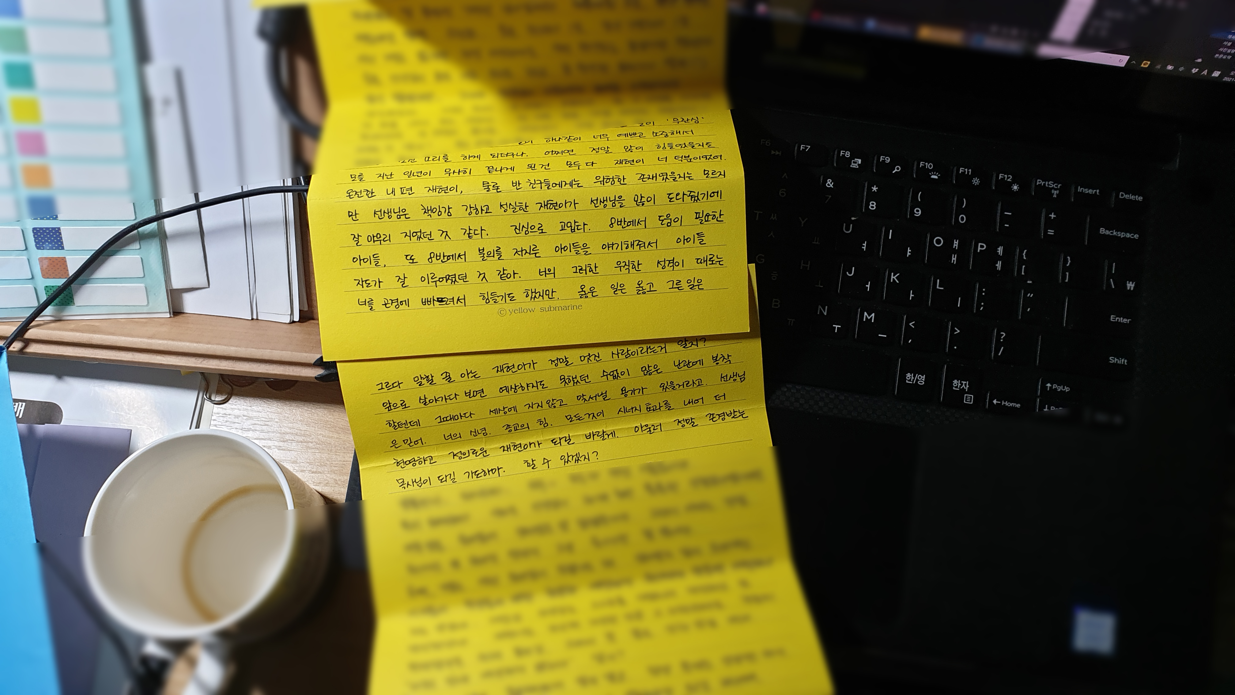 1학년으로서 마지막 등교가 다가왔다. 평소라면 성경책을 읽었어야 했다. 그날은 읽기 싫었다. 복도 끝 같은 자리를 뒷짐 지고서 맴돌았다. 브로콜리너마저 ‘졸업’을 불렀다. 가사가 완전히 와 닿지는 않았다. 담임께서 나를 불렀다. 자신의 마음을 담은 파란색 봉투를 건넸다. 두 장 빼곡 담긴 선생님의 문체에서 마음과 마음이 통한 그간의 관계가 생각났다. 나는 이 미친 세상을 믿지 않기 위해서는 세상에 맞설 힘을 갖춰야 한다고 다짐했다. 그 힘은 옳은 일에 옳다고 말하며, 그른 일에 그르다고 말하는 사람과의 연결된 관계에서 갖출 수 있다.