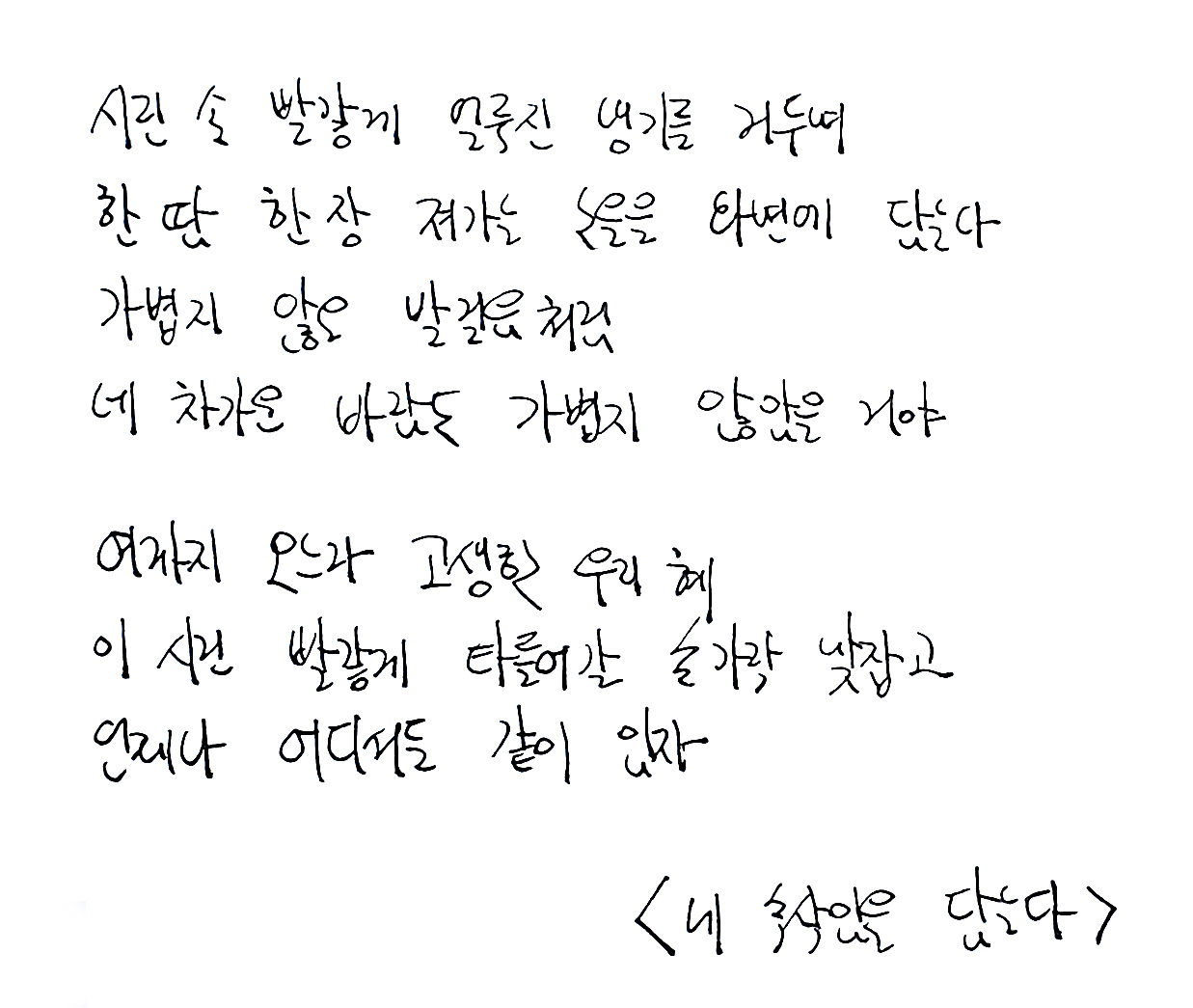 이 시린 빨갛게 타들어갈 손가락 맞잡고