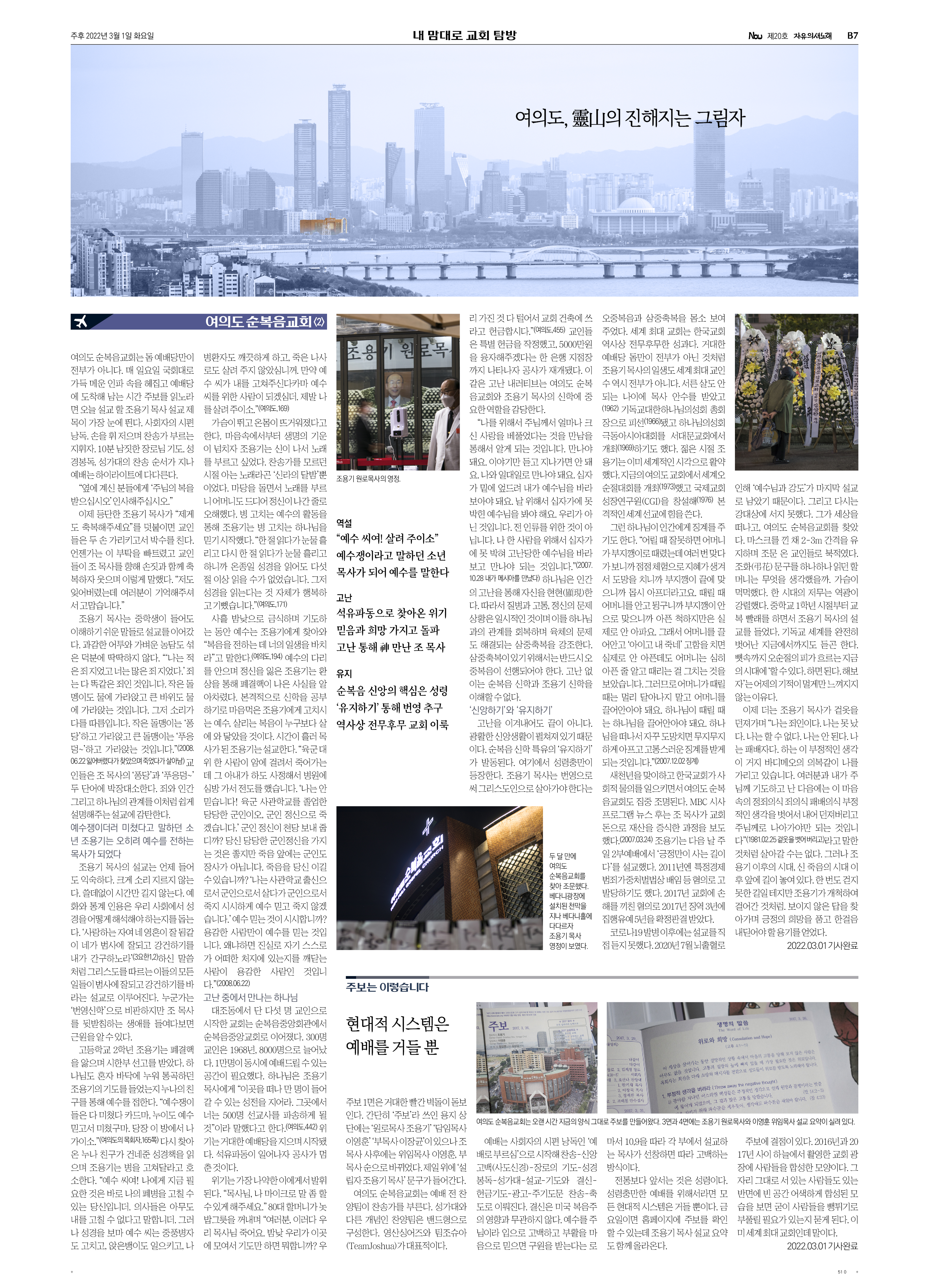 [내 맘대로 교회 탐방] 여의도, 靈山의 진해지는 그림자 [주보는 이렇습니다] 현대적 시스템은 예배를 거들 뿐 |