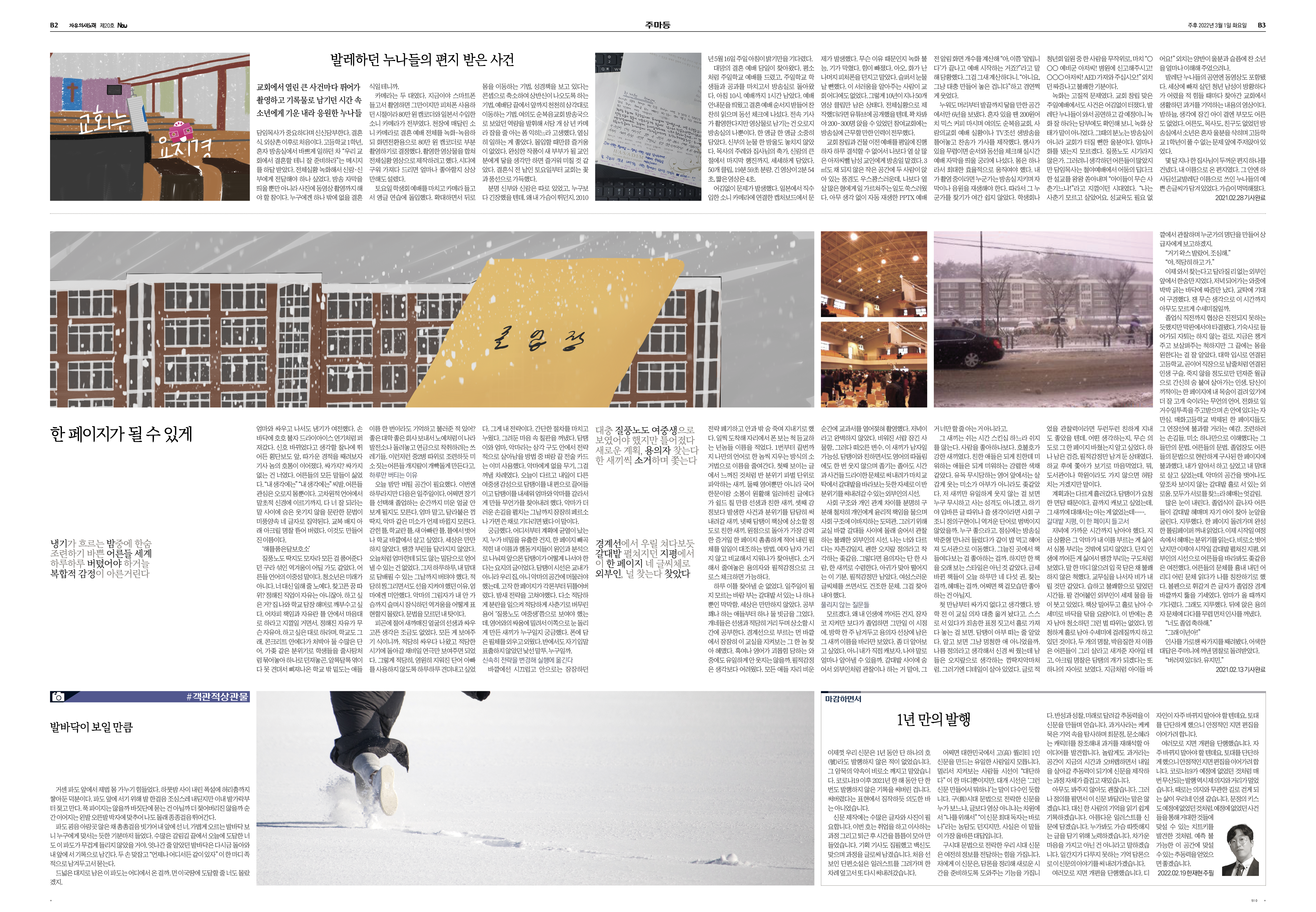 [교회는 요지경] 발레하던 누나들의 편지 받은 사건 [주마등] 한 페이지가 될 수 있게 [#객관적상관물] 발바닥이 보일 만큼 [마감하면서] 1년 만의 발행 |