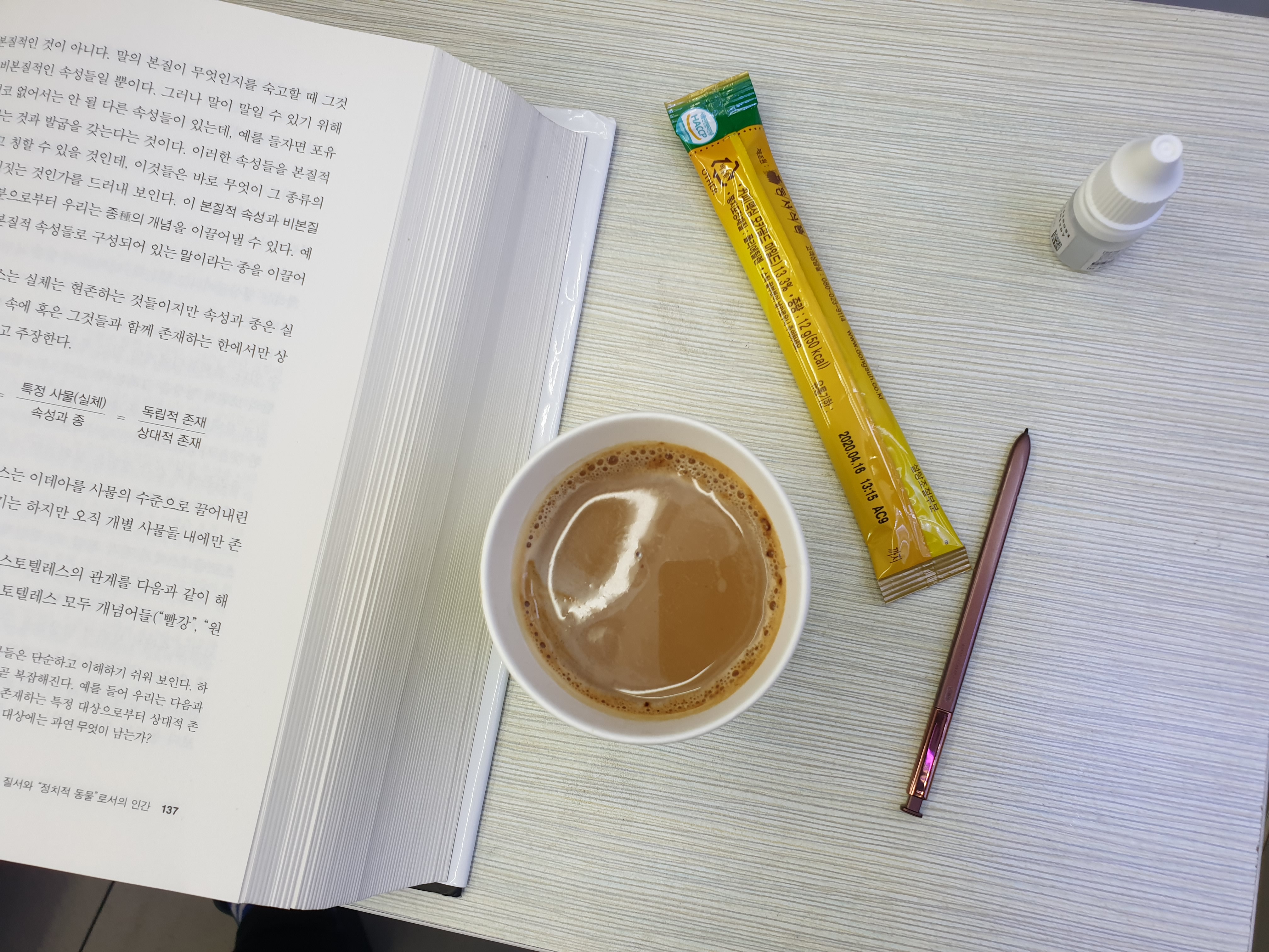 의자에 앉아 커피 한 잔을 마시자 여유를 느꼈다.