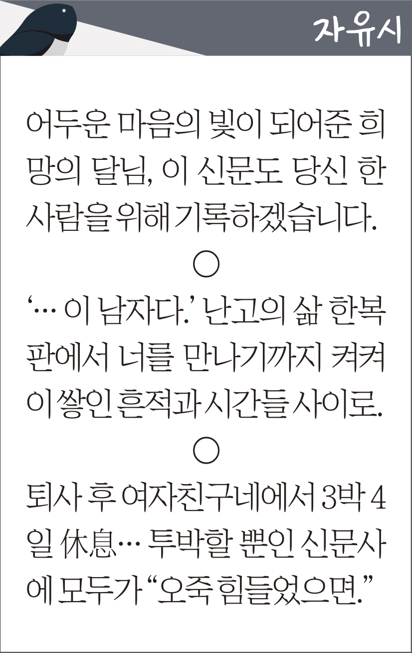 ○어두운 마음의 빛이 되어준 희망의 달님, 이 신문도 당신 한 사람을 위해 기록하겠습니다.