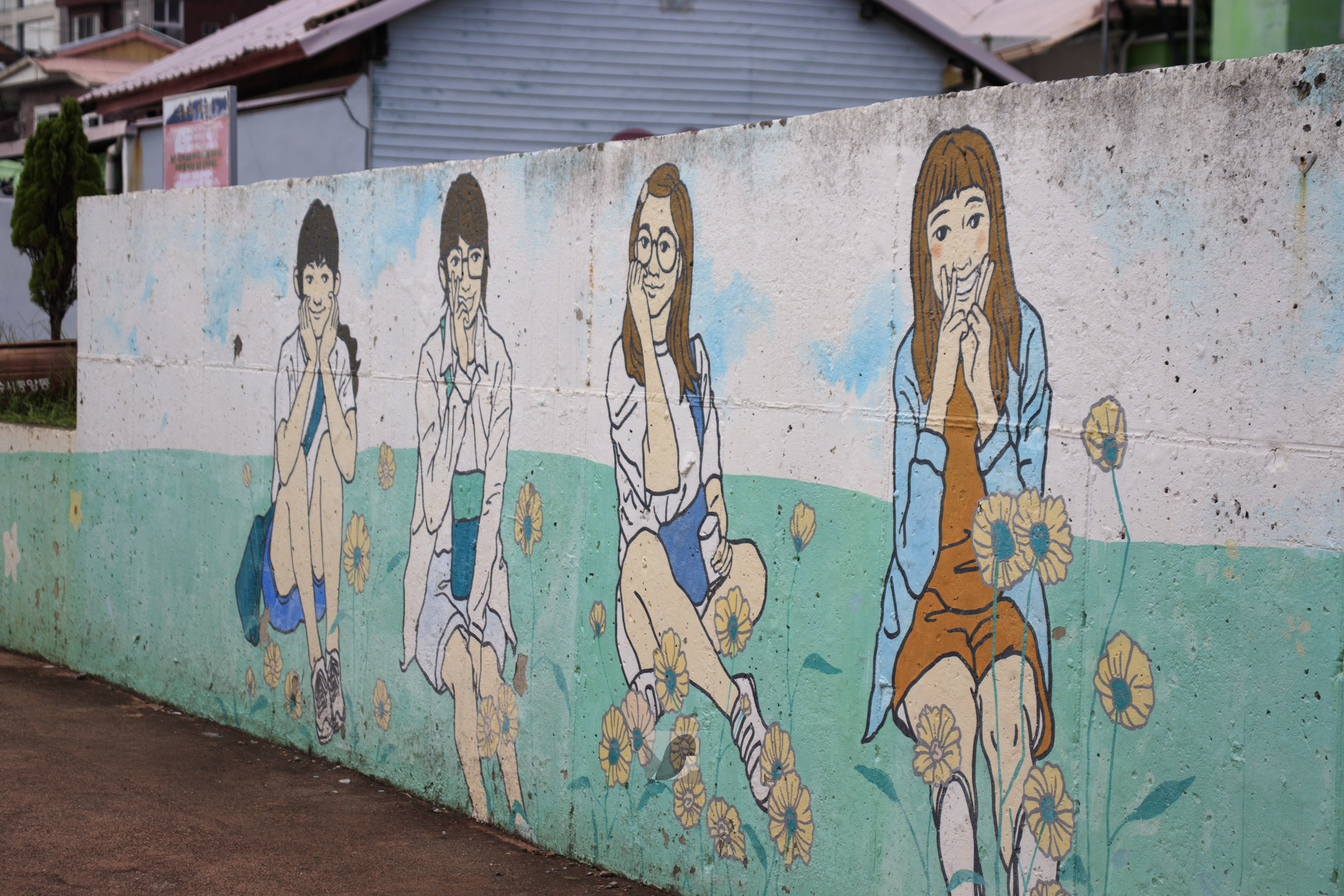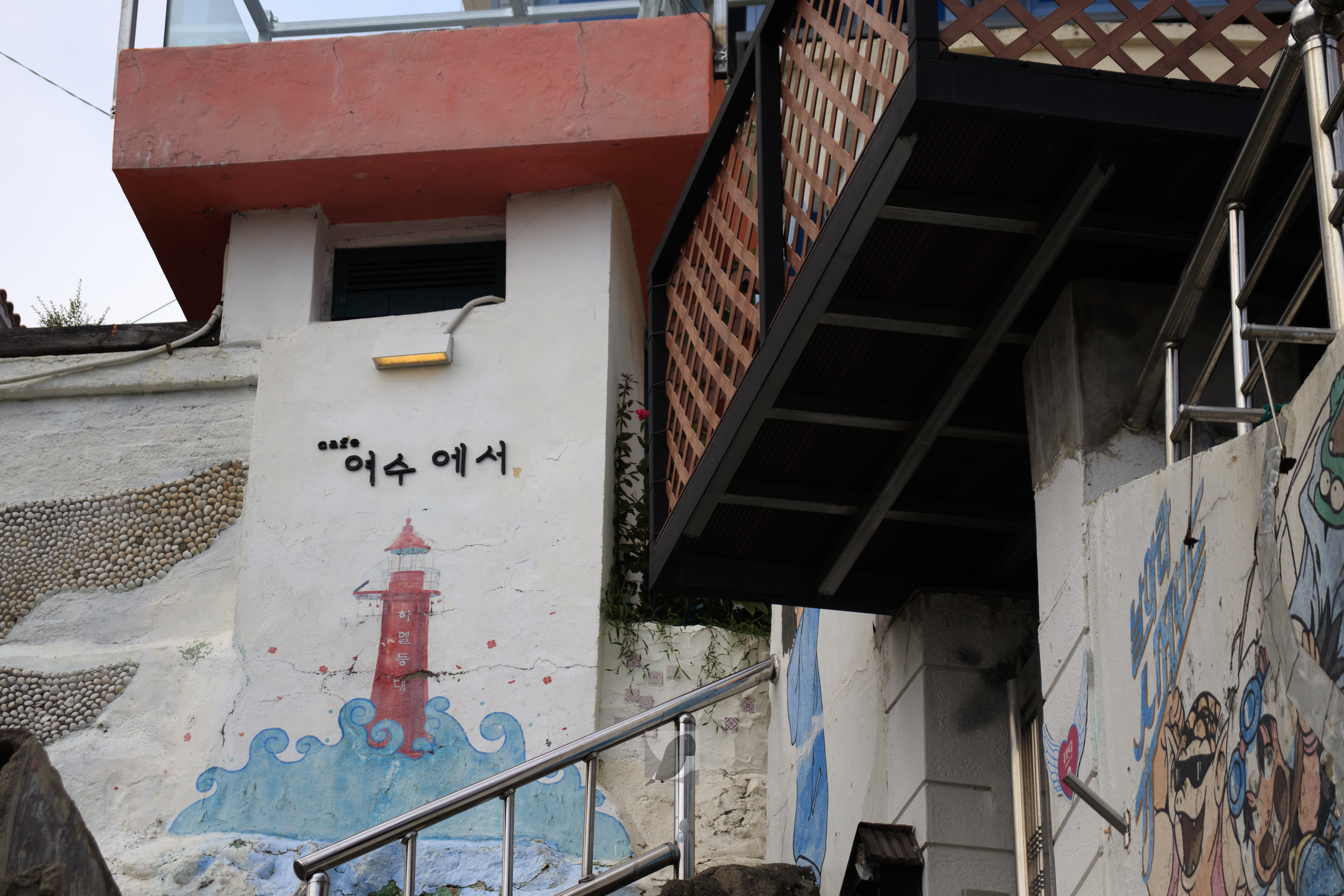 시내버스 106번을 타면 도착하는 고소동벽화마을에 다다랐다. 고소동1004벽화마을이라고도 부른다. 임진왜란과 정유재란에서 승리한 수군 중심기지인 진남관부터 고소동 언덕을 지나쳐 여수해양공원까지의 길이가 1004m라 지은 이름이다. 다양한 출입구 덕에 여러번 지나간 골목길이 있었다. 벽화는 무난했다.