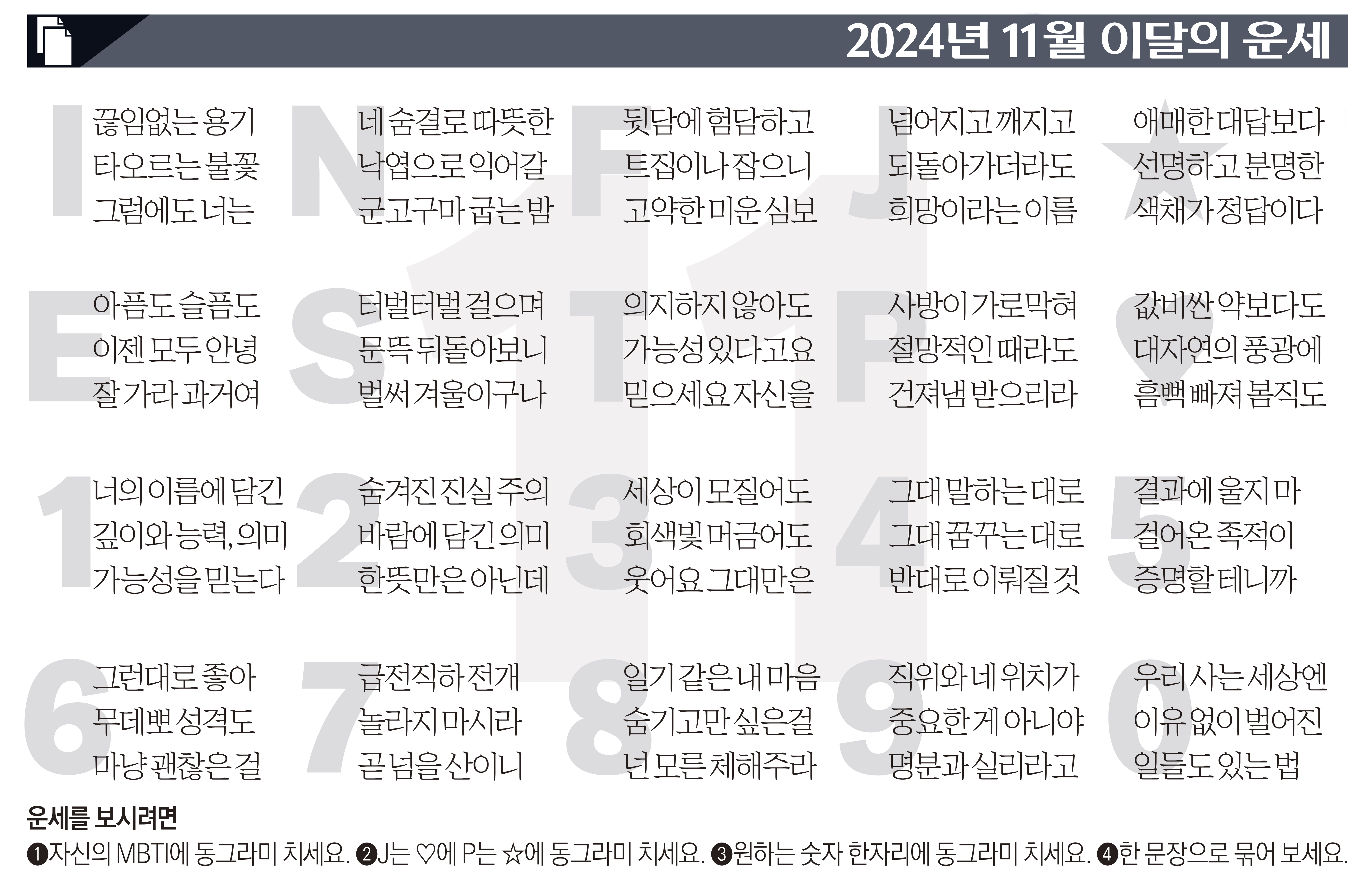➊자신의 MBTI에 동그라미 치세요.