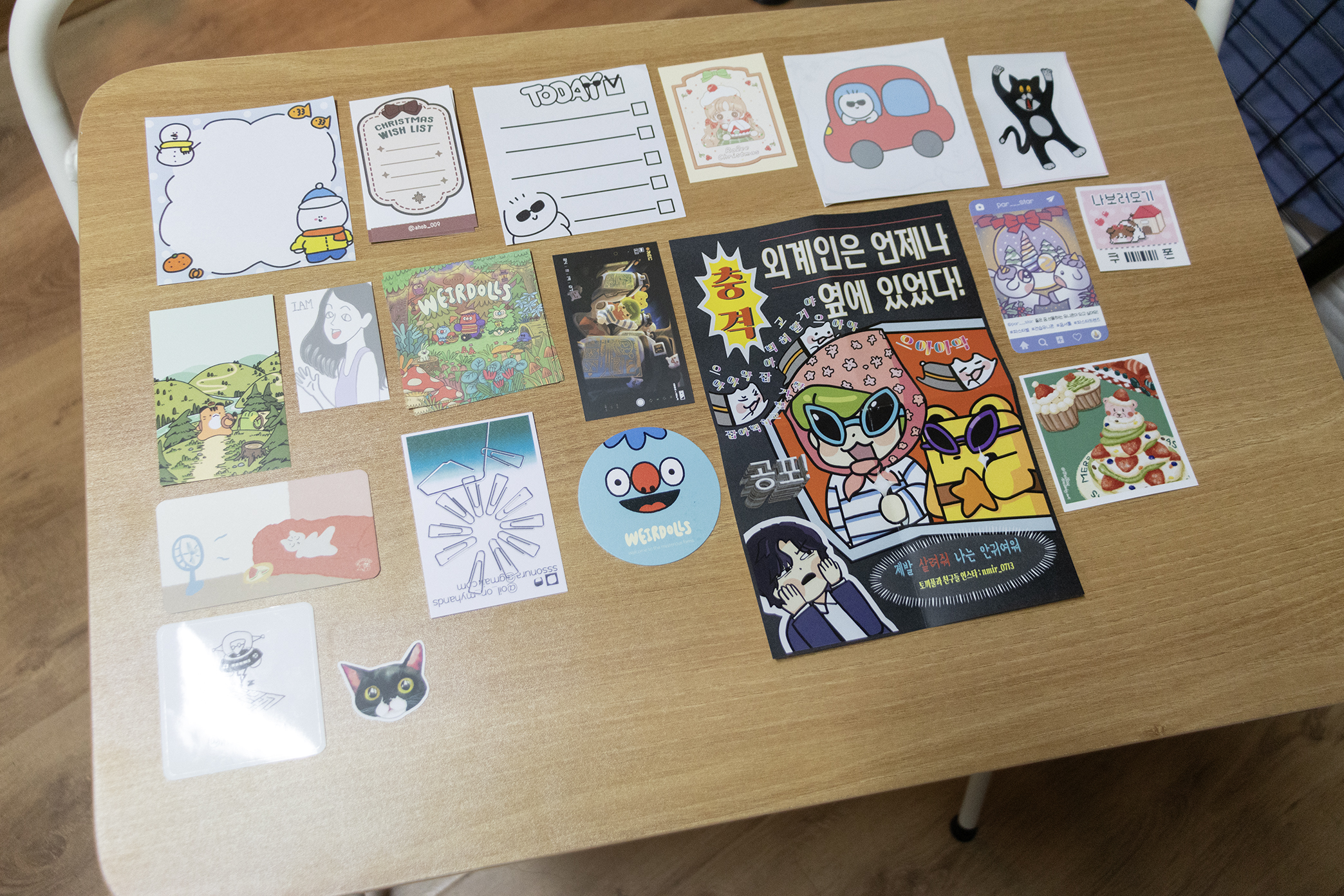 부스를 지나갈 때마다 명함을 주는 작가들이 많았다. 친절한 웃음과 함께 건네 받는 작품에 흐뭇하게 웃지 않을 수 없었다.