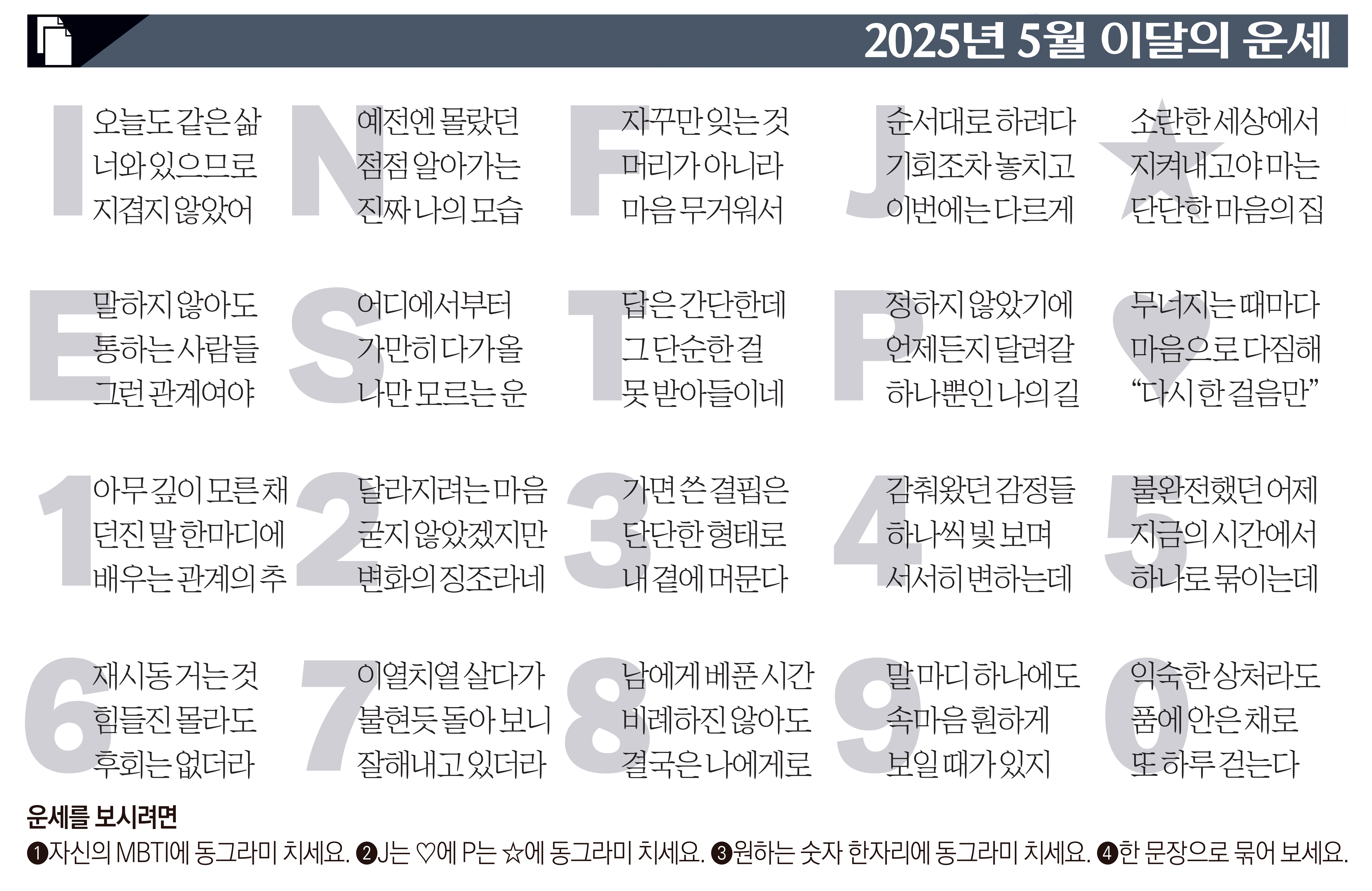 ➊자신의 MBTI에 동그라미 치세요.