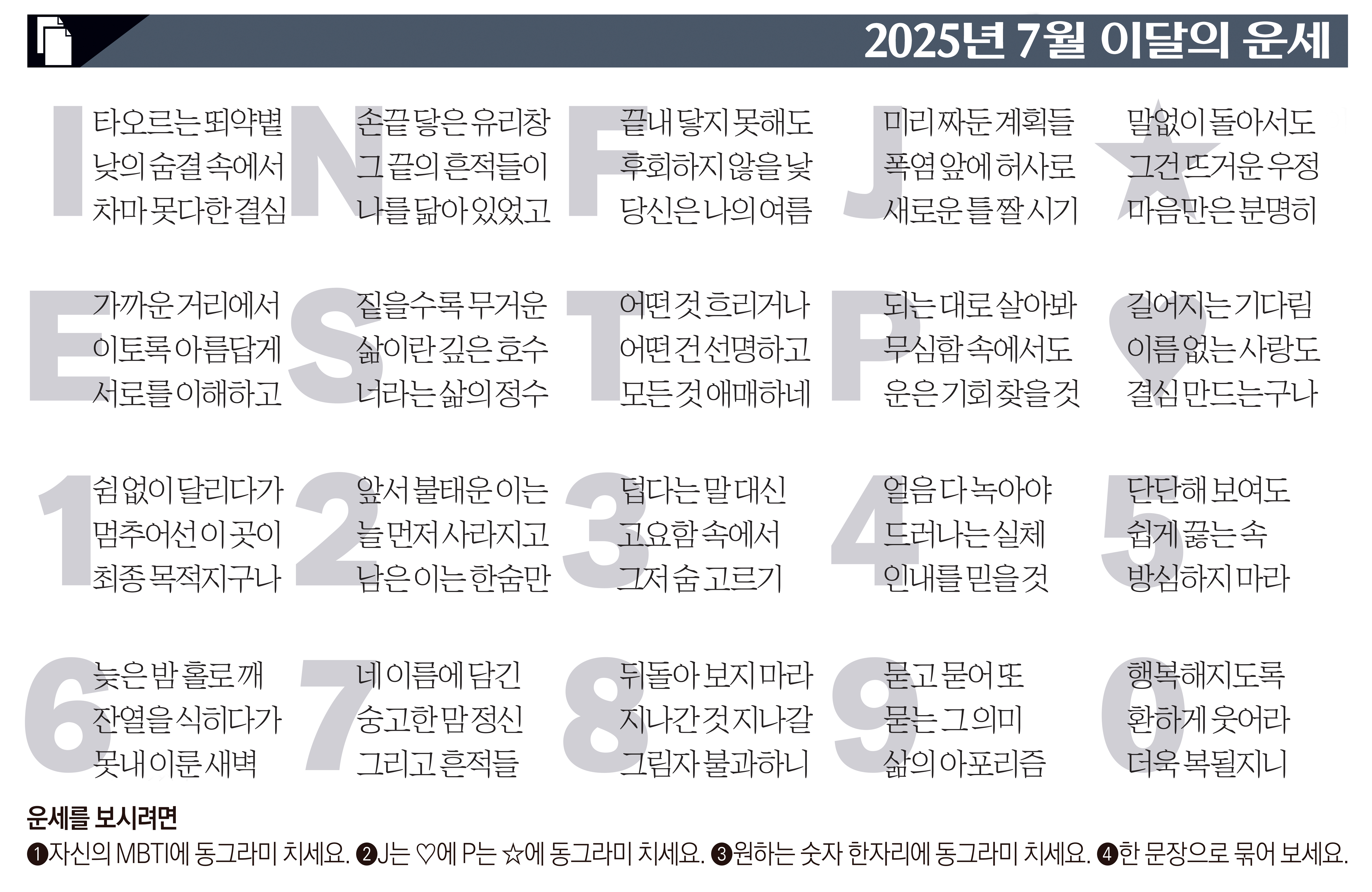 ➊자신의 MBTI에 동그라미 치세요.