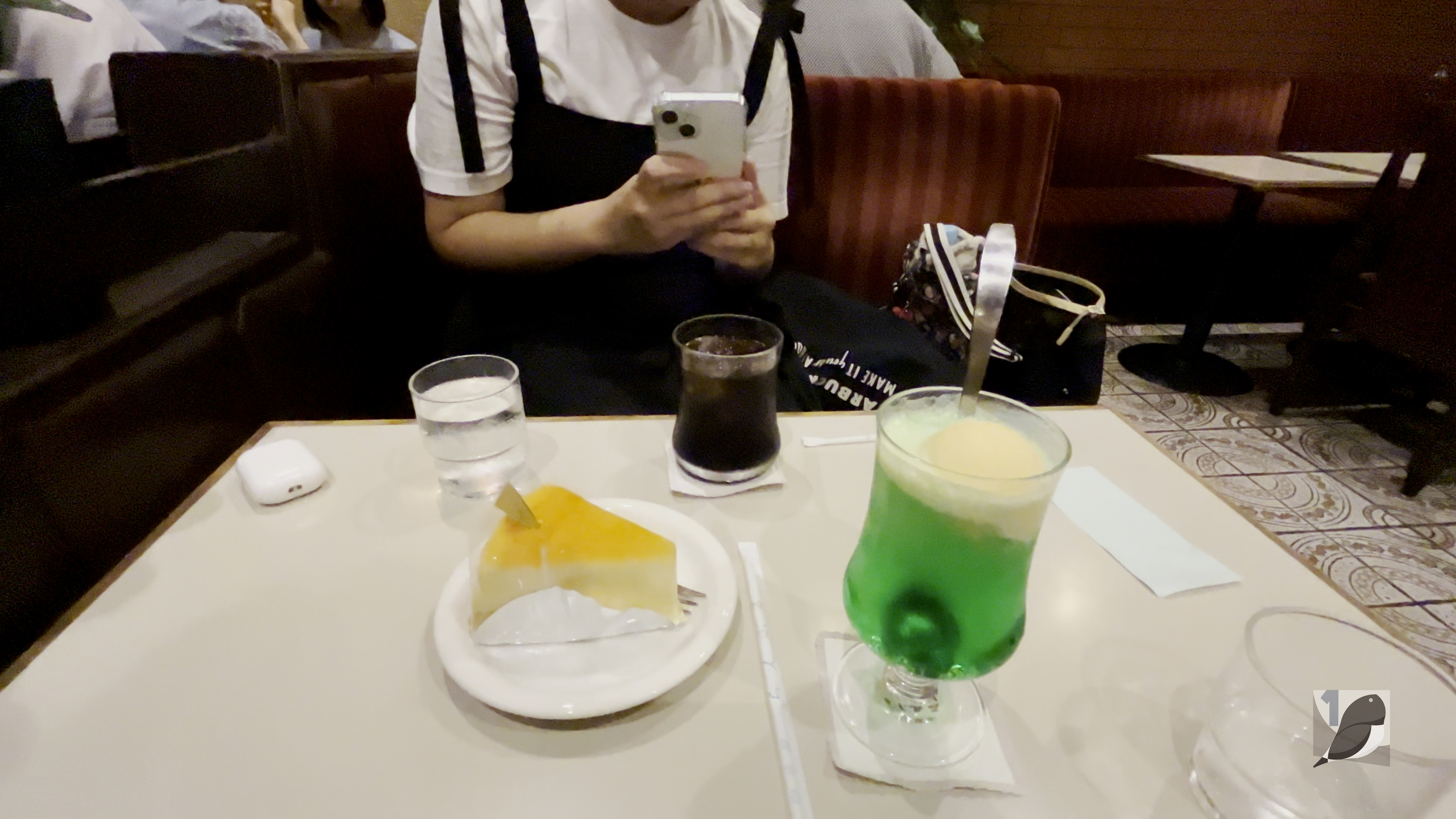 신주쿠에는 평소 내가 가고 싶었던 카페가 있었다. 커피 람브르(coffee Lam-bre). 지하 1층으로 내려가는 동안 시원한 공기가 온몸을 감싸기 시작했다. 마침내 도착한 카페. 한 걸음 한 걸음, 지하로 내려가자 클래식한 풍경이 펼쳐졌다. 푹신한 소파와 고즈넉한 분위기에 감탄하지 않을 수 없었다. 우리는 정중앙에 앉아, 여자친구는 아이스커피를 나는 소다 음료를 주문해 마셨다.