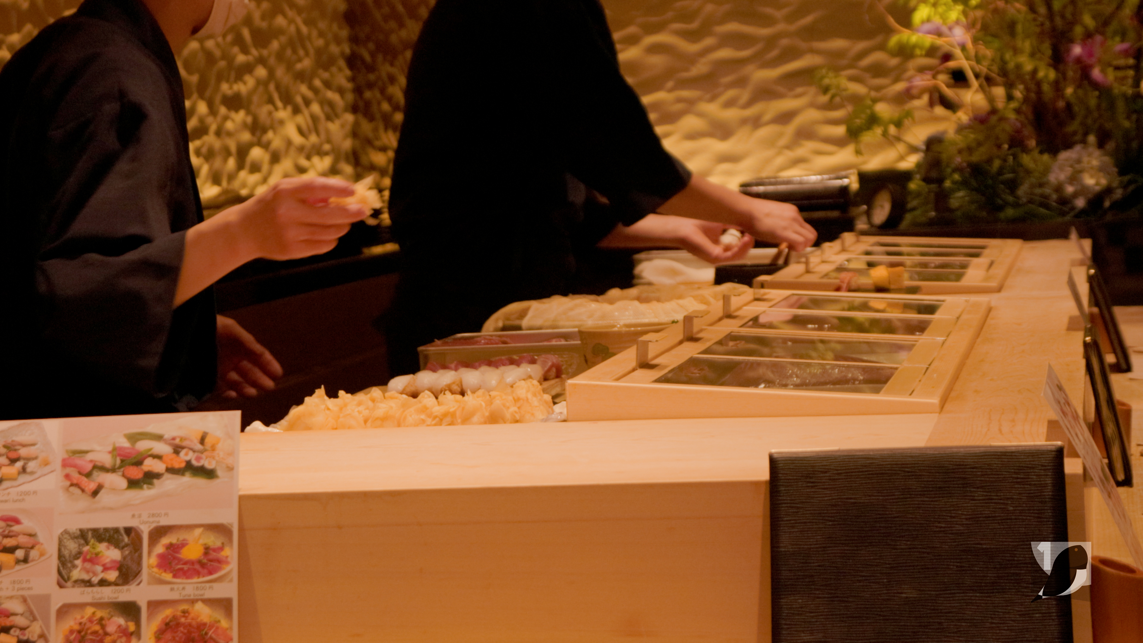 점원은 친절한 미소, 정중한 인사와 함께 우리를 자리로 안내했다. 두 사람이 앉기에 적당한 테이블이 무척 반가웠다. 점원은 따뜻한(뜨거운) 물을 내왔고, 우리는 잠시 열기를 식혔다가 한 모금 마셨다. 이곳 가게 스시 도코로 아베 아오야마점(意気な寿し処 阿部 青山店)의 풍경은 분주했다.
