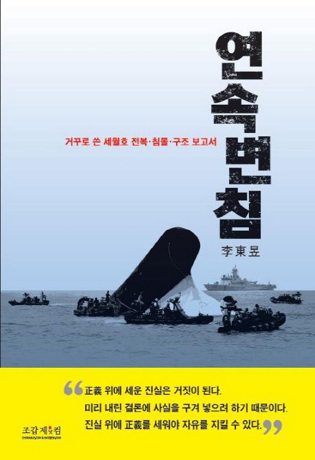 이동욱 기자가 쓴 ‘연속변침’에는 ▲세월호의 개·변조 ▲출항하기 전과 출항의 과정 ▲변침과 전복 과정 ▲침몰 후의 상황 ▲탑승자 476명 ▲다이빙 취재 ▲항적도로 본 침몰 ▲김경일 정장에 관한 변론 ▲해양경찰 구조대원의 증언을 수록하고 있다.