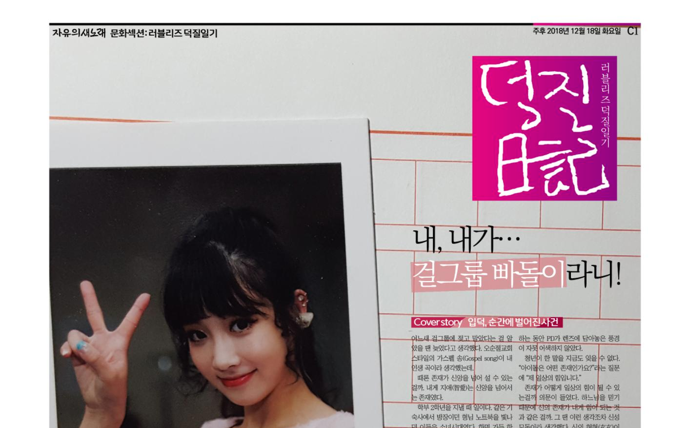[알립니다] 러블리즈덕질일기 폐간 안내 2021. 1. 12. 지난 2018년 12월 처음 선보인 ‘러블리즈덕질일기’가 오늘 자로 폐간합니다. 그동안 본지 문화섹션 러블리즈덕질일기를 사랑해주신 독자 여러분께 감사드립니다. 더 나은 지면으로 찾아뵙겠습니다. 감사합니다. 공유하기 게시글 관리 자유의새노래